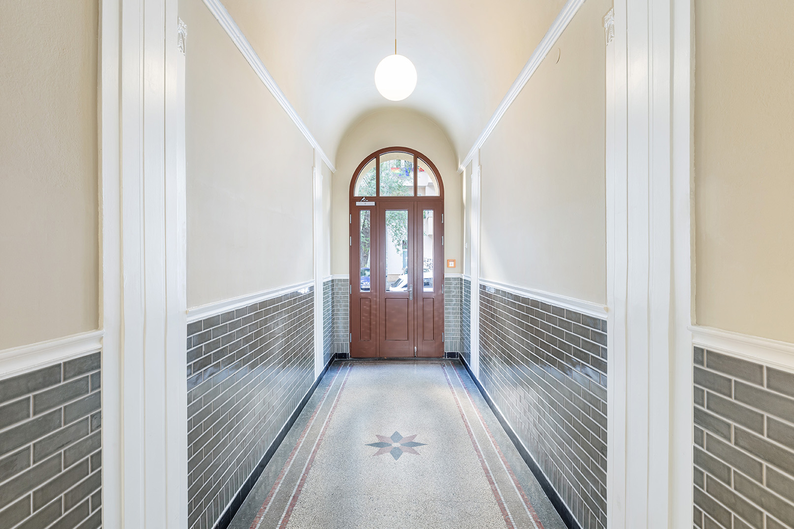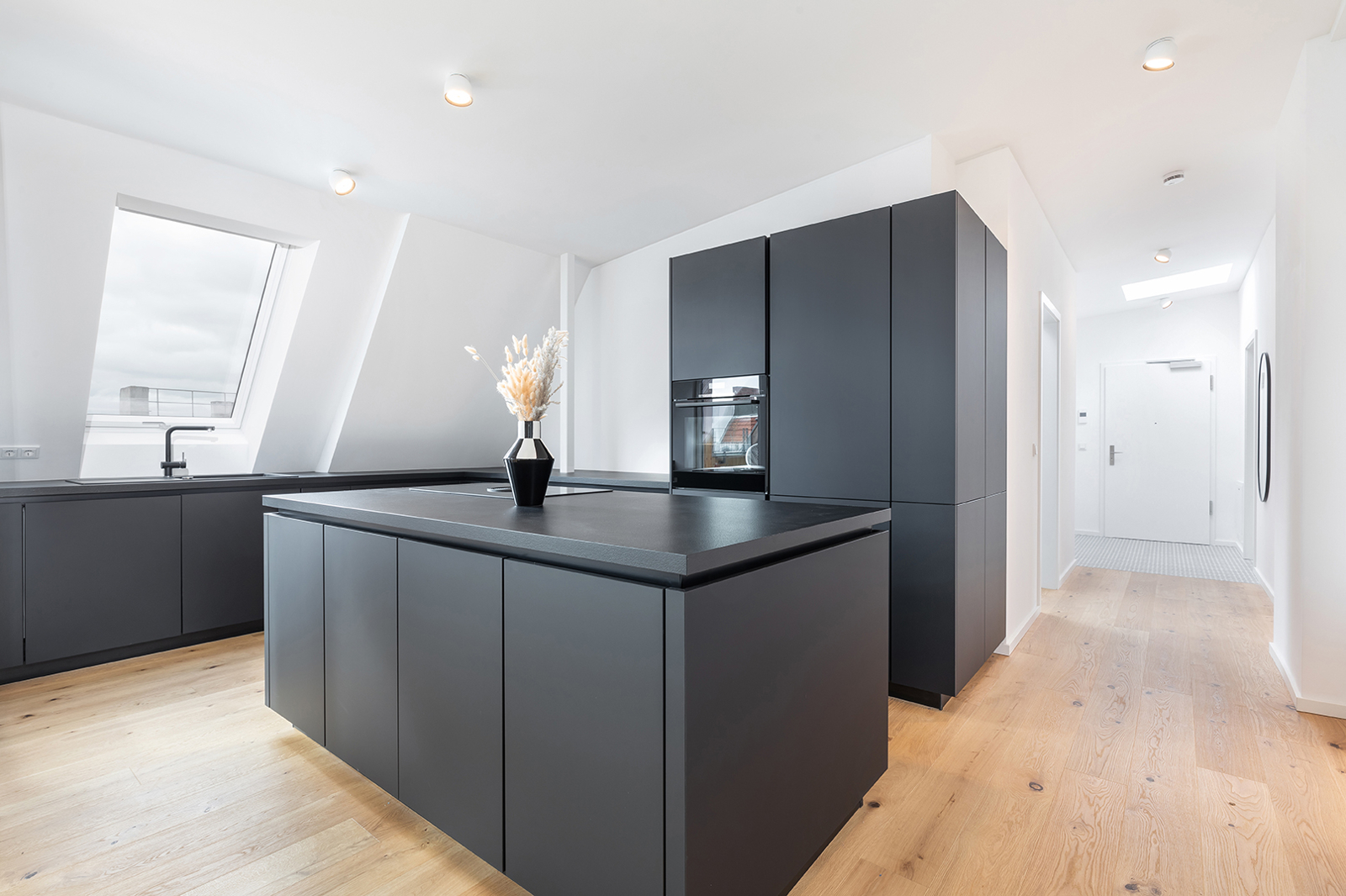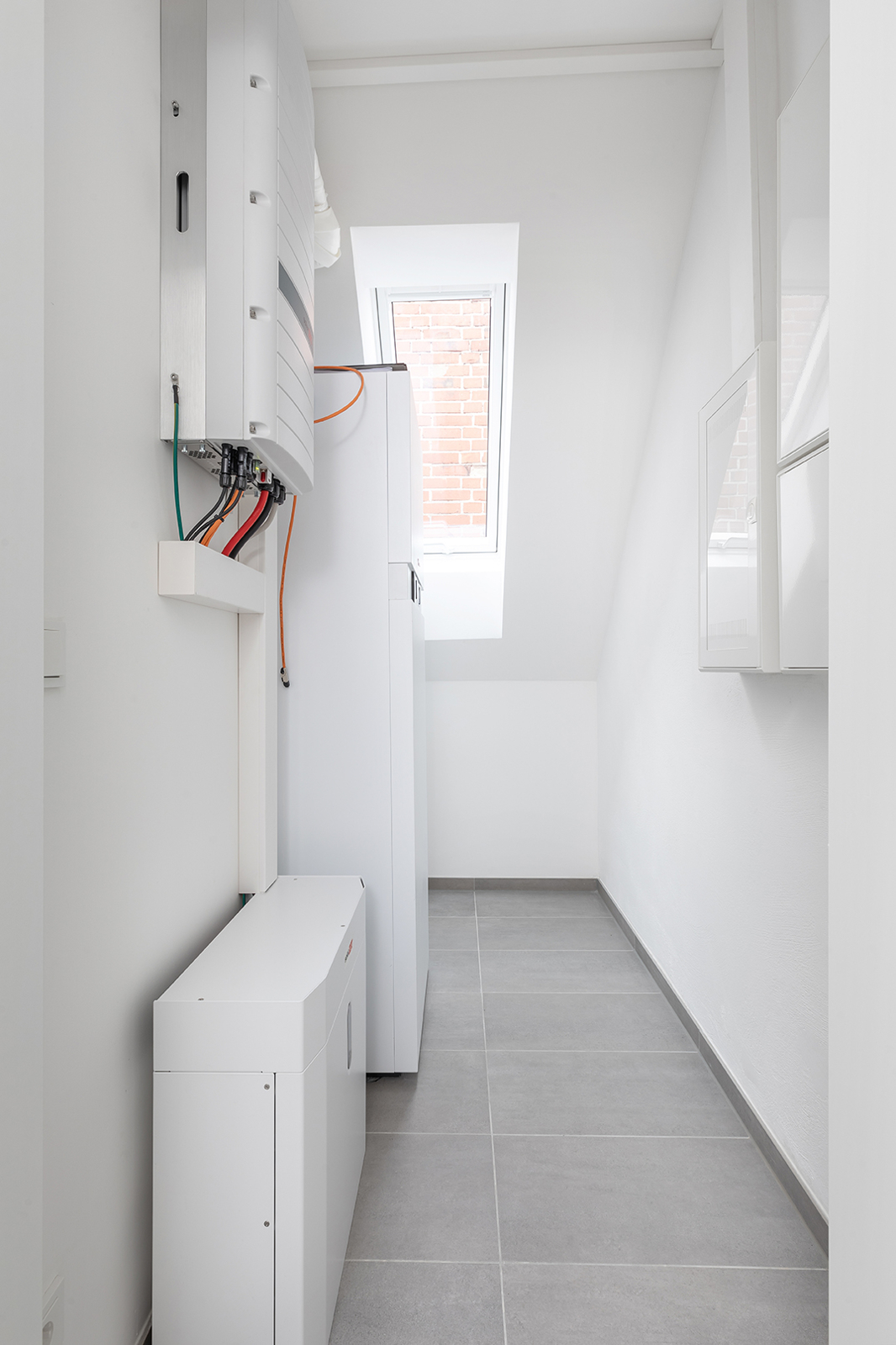 Erstbezug nach DG-Ausbau: 4 Zimmer, Lift, S-W-Terrasse, Wärmepumpe, Effizienz A - Belgisches Viertel In einem klassischen Berliner Gründerzeithaus entstanden im Zuge eines umfassenden Dachgeschossausbaus fünf Dachgeschoss-Wohnungen, die modernsten Wohnkomfort und historische Architektur auf harmonische Weise vereinen. Der Dachstuhl wurde vollständig zurückgebaut, neu geplant und errichtet. Sämtliche Deckenbalken wurden überprüft und bei Bedarf ausgetauscht. Im Zuge des Ausbaus wurde das Gemeinschaftseigentum umfassend mitsaniert, während der historische Altbaucharme bewusst erhalten blieb. Aufwendige Details wie die prachtvollen Treppenhäuser mit massiven Echtholztüren, ein Terrazzofußboden im Eingangsbereich und kunstvolle Stuckelemente tragen zur beeindruckenden Atmosphäre des Hauses bei. Der Innenhof wird neu angelegt und trägt so zu einem ansprechenden Gesamteindruck bei. Zwei neu installierte Aufzüge ermöglichen einen bequemen Zugang zu vier der fünf Dachgeschosswohnungen. Die entstandenen Dachgeschosswohnungen sind zwischen 88 und 163 qm groß und bieten 3 bis 5 Zimmer, was sie ideal für Familien, Paare oder auch Singles macht. Jede Wohnung verfügt über eine durchdachte Raumaufteilung und eine großzügige, halb-überdachte Terrasse, die mit robusten Terrassendielen aus Nordischer Lärche sowie einer Markise für sommerlichen Licht- und Wärmeschutz ausgestattet ist. Große Fensterflächen und Oberlichter sorgen für viel Tageslicht und eine einladende Atmosphäre. Hohe Decken von 2,60 bis 3,20 Metern, ein langlebiges sowie edles Eichenparkett und eine per App steuerbare Fußbodenheizung mitsamt Trittschalldämmung sorgen für zusätzlichen Wohnkomfort. Maßstäbe setzen die Wohnungen in Bezug auf die Energieeffizienz: Jede Einheit verfügt über eine eigene Luft-Wärmepumpe von VIESSMANN sowie eine private Photovoltaik-Anlage mit Stromspeicher. Dreifach verglaste Fenster aus Fichtenholz bieten exzellenten Schallschutz und zusätzliche Wärmeisolierung. Mit einer Energieeffizienzklasse von A für die Dachgeschosseinheiten und C für das übrige Gebäude werden hier höchste Ansprüche in Puncto Energieeffizienz erfüllt. Die Badezimmer präsentieren sich dank stilvollen Fliesen, Regendusche, separaten Wanne in einem modernen Look. Hochwertigen Marken-Sanitärgegenständen von Villeroy & Boch bzw. Duravit zeugen von einer stilvollen Ausstattungslinie. Mit Ausnahme der kleinsten Wohnung steht auch ein separates Gäste-WC zu Verfügung. Jede Wohnung ist mit einer praktischen Abstellkammer mit Waschmaschinenanschluss ausgestattet. Zusätzlich ist jeder Wohnung ein Kellerraum für zusätzlichen Stauraum zugeordnet. Bei der hier angebotenen Wohnung WE 54 handelt es um eine ca. 140 qm große 4-Zimmerwohnung (3 Schlafzimmer sowie einem ca. 55 qm großen Wohn-Essbereich), S-W-Terrasse, Vollbad sowie Gäste-WC und ist bequem per Aufzug erreichbar. Als einzige Wohnung ist hier eine hochwertige Einbauküche vorinstalliert.
