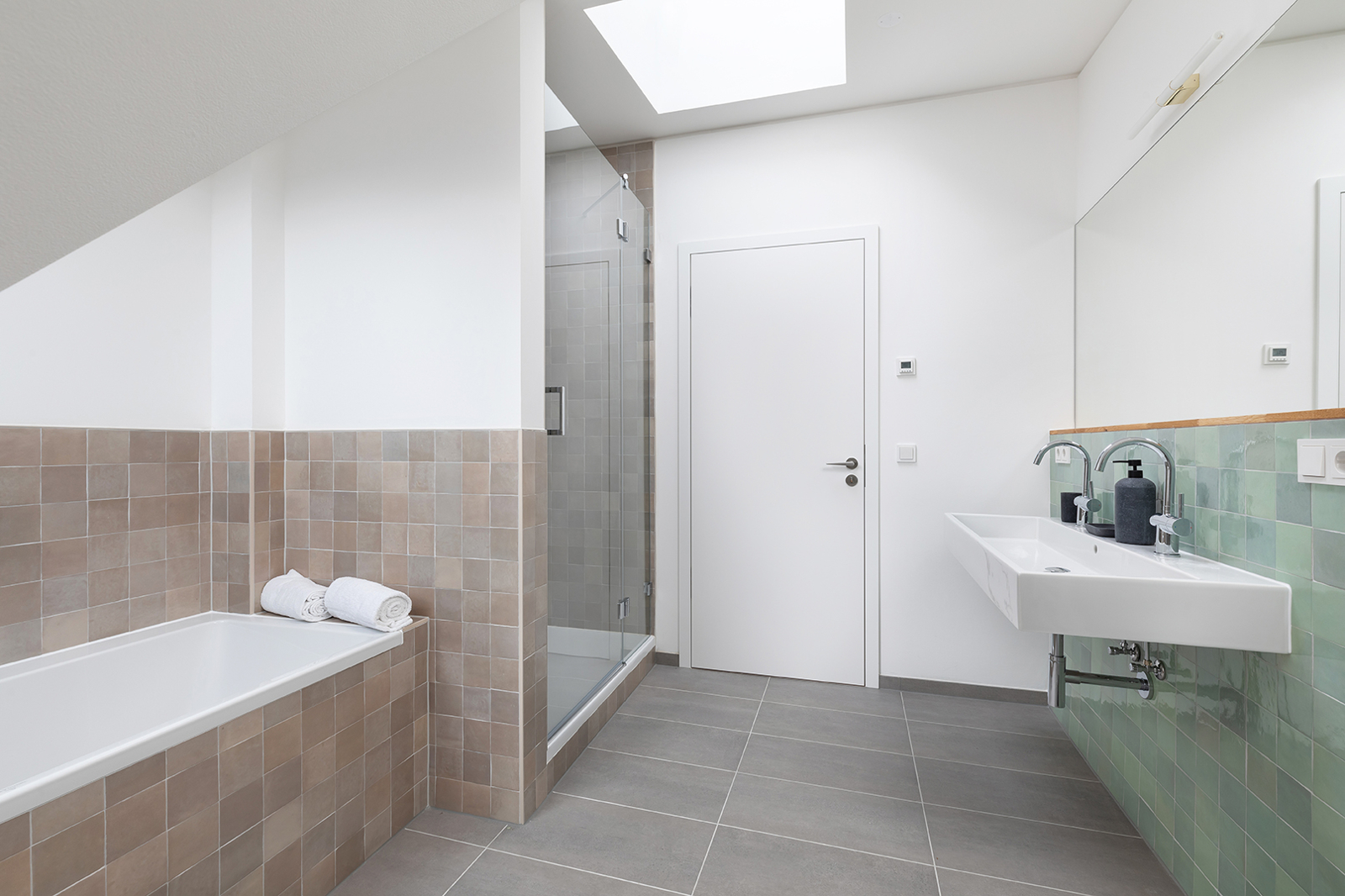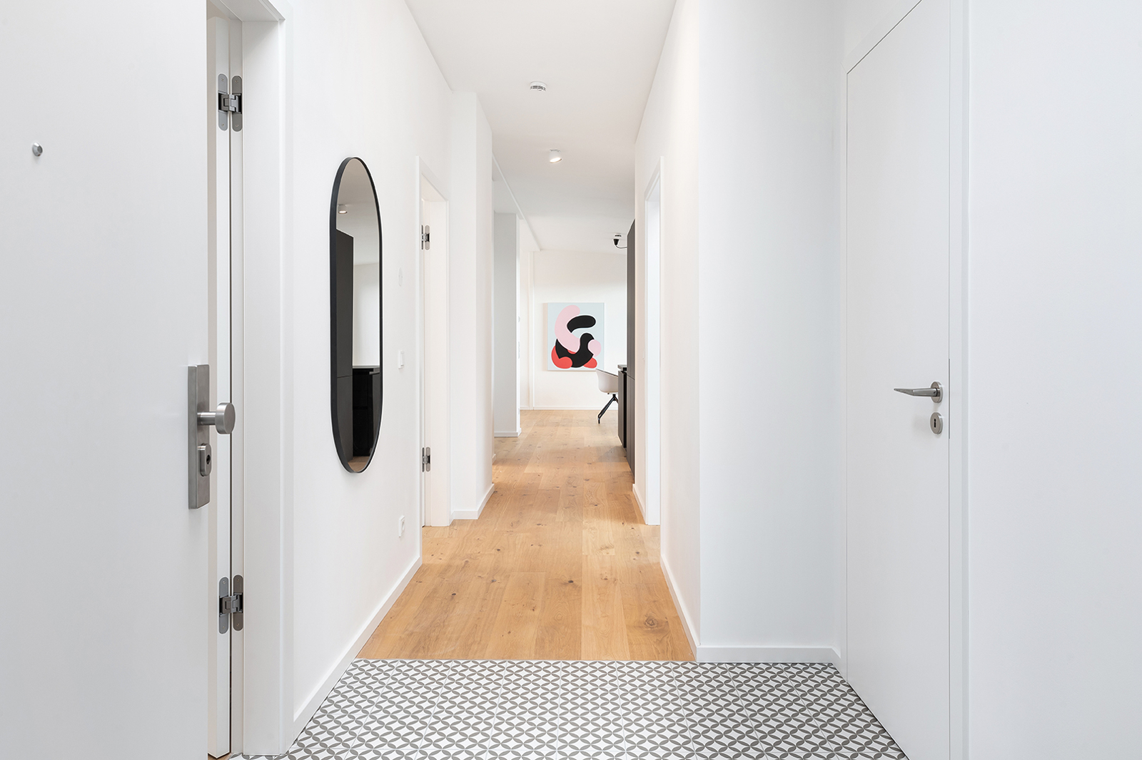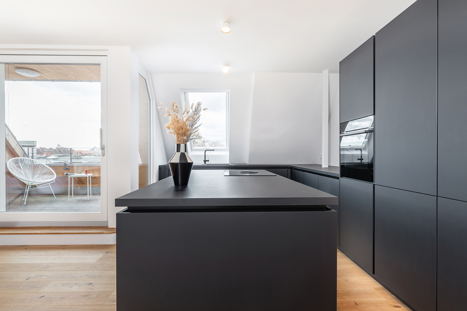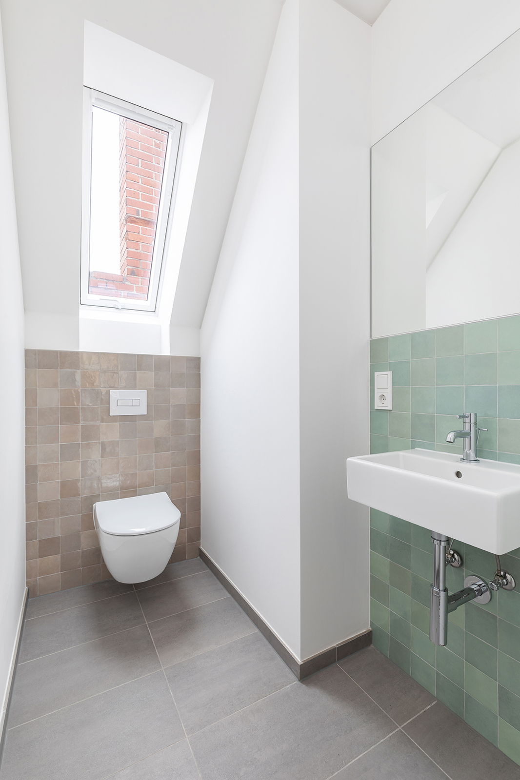 Erstbezug nach DG-Ausbau: 4 Zimmer, Lift, S-W-Terrasse, Wärmepumpe, Effizienz A - Belgisches Viertel In einem klassischen Berliner Gründerzeithaus entstanden im Zuge eines umfassenden Dachgeschossausbaus fünf Dachgeschoss-Wohnungen, die modernsten Wohnkomfort und historische Architektur auf harmonische Weise vereinen. Der Dachstuhl wurde vollständig zurückgebaut, neu geplant und errichtet. Sämtliche Deckenbalken wurden überprüft und bei Bedarf ausgetauscht. Im Zuge des Ausbaus wurde das Gemeinschaftseigentum umfassend mitsaniert, während der historische Altbaucharme bewusst erhalten blieb. Aufwendige Details wie die prachtvollen Treppenhäuser mit massiven Echtholztüren, ein Terrazzofußboden im Eingangsbereich und kunstvolle Stuckelemente tragen zur beeindruckenden Atmosphäre des Hauses bei. Der Innenhof wird neu angelegt und trägt so zu einem ansprechenden Gesamteindruck bei. Zwei neu installierte Aufzüge ermöglichen einen bequemen Zugang zu vier der fünf Dachgeschosswohnungen. Die entstandenen Dachgeschosswohnungen sind zwischen 88 und 163 qm groß und bieten 3 bis 5 Zimmer, was sie ideal für Familien, Paare oder auch Singles macht. Jede Wohnung verfügt über eine durchdachte Raumaufteilung und eine großzügige, halb-überdachte Terrasse, die mit robusten Terrassendielen aus Nordischer Lärche sowie einer Markise für sommerlichen Licht- und Wärmeschutz ausgestattet ist. Große Fensterflächen und Oberlichter sorgen für viel Tageslicht und eine einladende Atmosphäre. Hohe Decken von 2,60 bis 3,20 Metern, ein langlebiges sowie edles Eichenparkett und eine per App steuerbare Fußbodenheizung mitsamt Trittschalldämmung sorgen für zusätzlichen Wohnkomfort. Maßstäbe setzen die Wohnungen in Bezug auf die Energieeffizienz: Jede Einheit verfügt über eine eigene Luft-Wärmepumpe von VIESSMANN sowie eine private Photovoltaik-Anlage mit Stromspeicher. Dreifach verglaste Fenster aus Fichtenholz bieten exzellenten Schallschutz und zusätzliche Wärmeisolierung. Mit einer Energieeffizienzklasse von A für die Dachgeschosseinheiten und C für das übrige Gebäude werden hier höchste Ansprüche in Puncto Energieeffizienz erfüllt. Die Badezimmer präsentieren sich dank stilvollen Fliesen, Regendusche, separaten Wanne in einem modernen Look. Hochwertigen Marken-Sanitärgegenständen von Villeroy & Boch bzw. Duravit zeugen von einer stilvollen Ausstattungslinie. Mit Ausnahme der kleinsten Wohnung steht auch ein separates Gäste-WC zu Verfügung. Jede Wohnung ist mit einer praktischen Abstellkammer mit Waschmaschinenanschluss ausgestattet. Zusätzlich ist jeder Wohnung ein Kellerraum für zusätzlichen Stauraum zugeordnet. Bei der hier angebotenen Wohnung WE 54 handelt es um eine ca. 140 qm große 4-Zimmerwohnung (3 Schlafzimmer sowie einem ca. 55 qm großen Wohn-Essbereich), S-W-Terrasse, Vollbad sowie Gäste-WC und ist bequem per Aufzug erreichbar. Als einzige Wohnung ist hier eine hochwertige Einbauküche vorinstalliert.