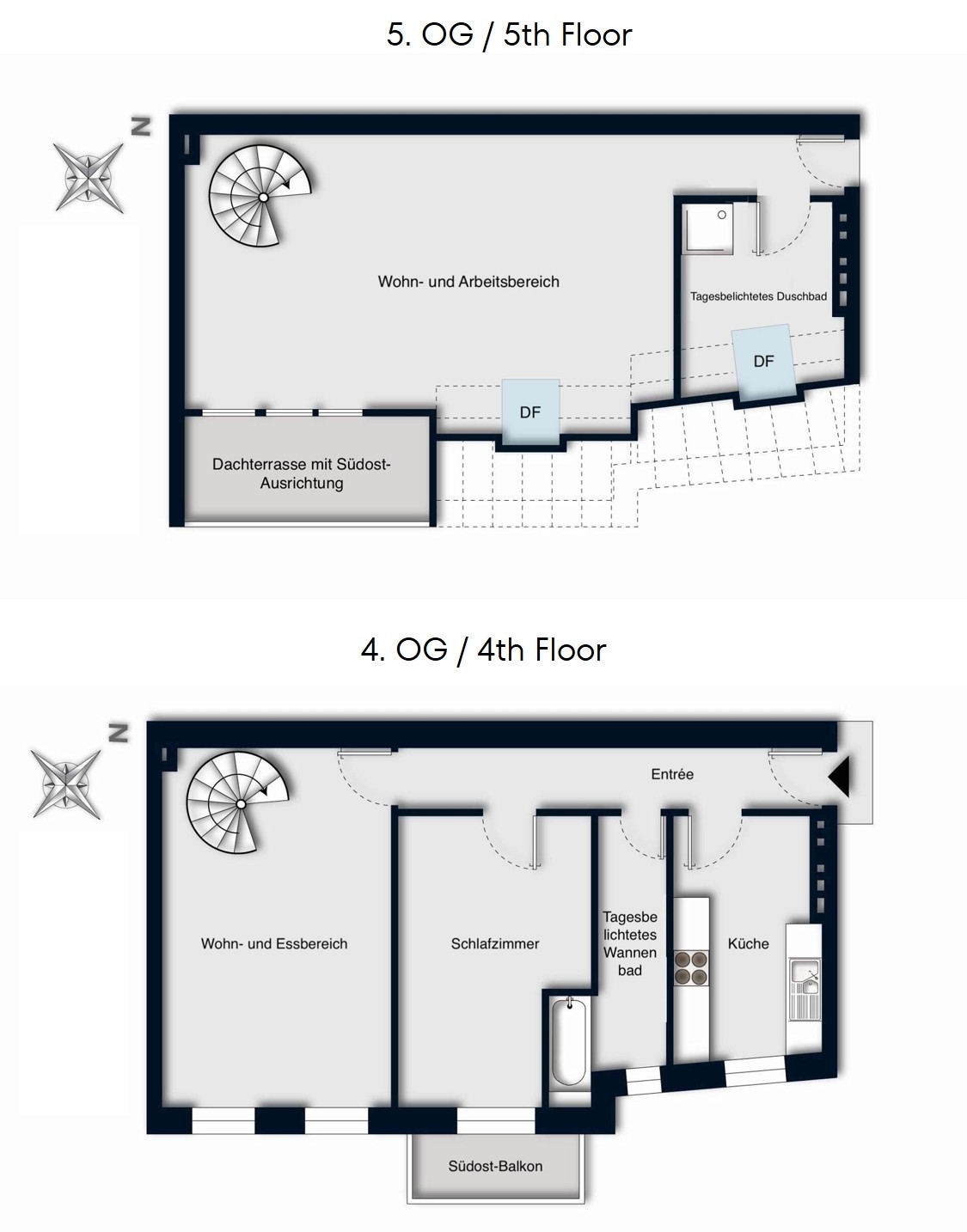 Richardkiez, Neukölln Rixdorf: DG-Maisonette mit spektakulärer Süd-Ost-Terrasse, 3 Zimmer, 2 Bäder 12055 Berlin