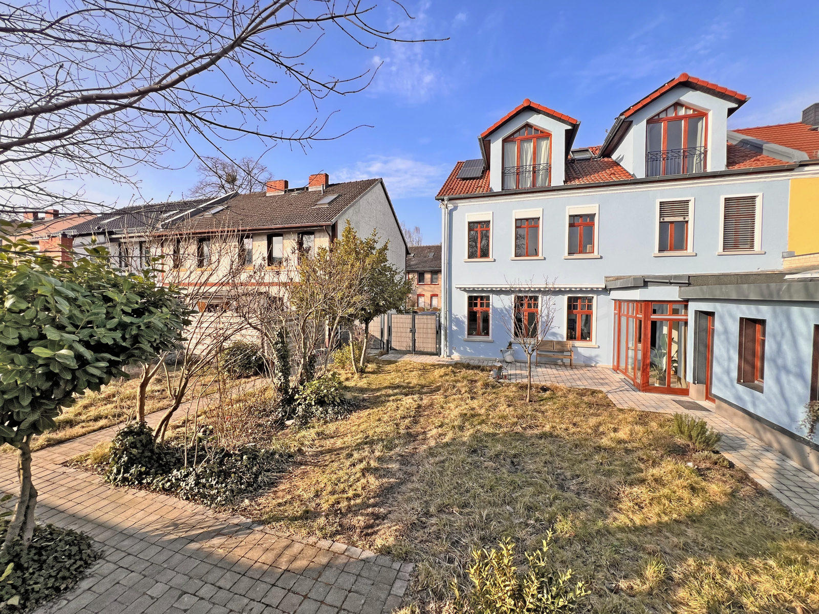 Berlin-Spandau: Zwei Stadthäuser mit Remise, Hof und Garten, saniert / ausbaufähig Zwei Stadthäuser aus der Jahrhundertwende, eine Remise und mehrere Nebengebäude gruppieren sich um einen gemeinsamen Hof mit Garten – ein gewachsenes Ensemble mitten in Berlin-Spandau. Auf rund 850 m² Grundstück verbinden sich sanierter Wohnraum, Ausbaupotenzial und viel Gestaltungsfreiheit. Neue Straße 7 – bezugsfertig, hochwertig saniert Das Haupthaus bietet rund 319 m² Wohnfläche auf drei Etagen. Im Erdgeschoss empfängt ein großzügiger Wohn-Essbereich mit Zugang zum Garten und zur Terrasse. Dazu kommen ein separates Wohnzimmer, zwei weitere Zimmer, die Einbauküche und ein Gäste-WC. Im ersten Obergeschoss liegen drei Zimmer und ein großzügiges Masterbad, das zweite Obergeschoss bietet zwei weitere Zimmer und ein Bad. Vom Erdgeschoss führt ein Übergang in die Remise, die sich über zwei Etagen erstreckt und mit separatem Eingang auch als eigenständige Einheit genutzt werden kann – ob für Angehörige, Gäste, ein Au-pair oder als Büro mit eigener Adresse. Hochwertige Holzfenster, elektrische Jalousien, Klimaanlage und durchdachte Grundrisse prägen das Haus. Energiekonzept – weitgehend autark Ein Hybridsystem aus Wärmepumpe und Gasheizung versorgt das Haus über einen zentralen Wärmespeicher mit Frischwassersystem. Auf dem Dach erzeugt eine Photovoltaikanlage Strom, der in Batterie- und Wasserstoffspeichern zwischengespeichert wird. Zwei Wallboxen ermöglichen das Laden von Elektrofahrzeugen – im Sommer überwiegend mit eigenem Solarstrom. Für die Neue Straße 6 besteht die Möglichkeit, das System zu erweitern. Neue Straße 6 – Rohbau mit Potenzial Das zweite Haus bietet rund 306 m² Wohn-/Nutzfläche als entkernter Altbau, der nach eigenen Vorstellungen ausgebaut werden kann. Eine Abgeschlossenheitsbescheinigung für zwei Wohneinheiten und eine Teileigentumseinheit liegt bereits vor. Darüber hinaus ist ein Dachgeschossausbau baurechtlich möglich. Ob großzügiges Einfamilienhaus, Aufteilung in separate Wohnungen oder eine Mischung aus Eigennutzung und Vermietung – die Gestaltungsfreiheit ist groß. Mehrere Nebengebäude ergänzen das Angebot und bieten Raum für Werkstatt, Atelier, Lager oder weiteren Ausbau. Die in der Tabelle genannte Zimmeranzahl bezieht sich auf die Neue Straße 7. Die Neue Straße 6 befindet sich derzeit noch im Rohbau – die Raumaufteilung kann beim Ausbau frei bestimmt werden. Ein Angebot, das Raum für verschiedene Lebensentwürfe öffnet – vom großzügigen Mehrgenerationenwohnen, dem gemeinsamen Wohnprojekt, die Kombination von Arbeiten und Leben bis hin zur klugen Mischung aus Eigennutzung und Vermietung.