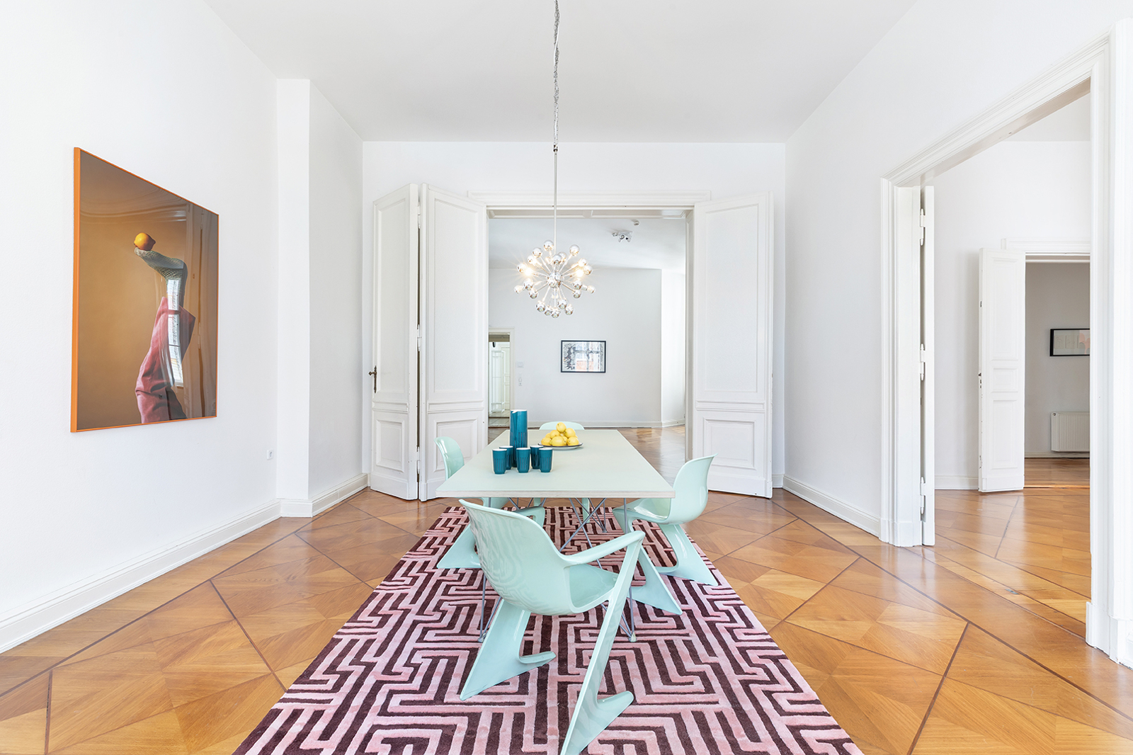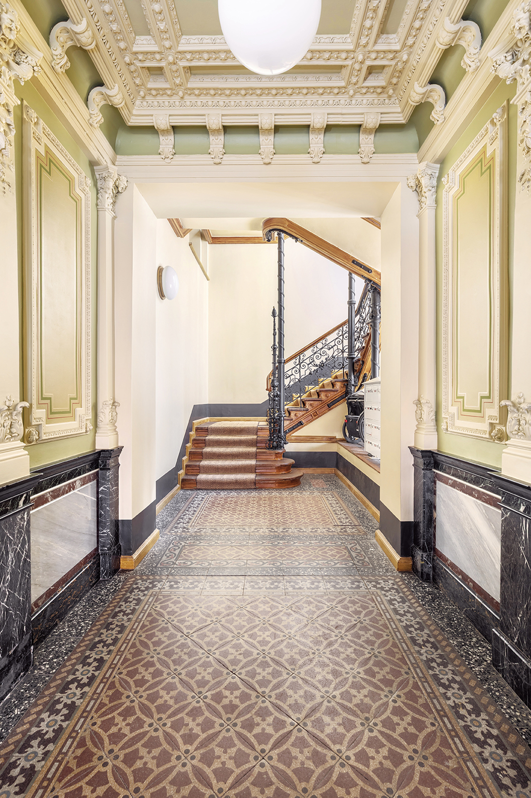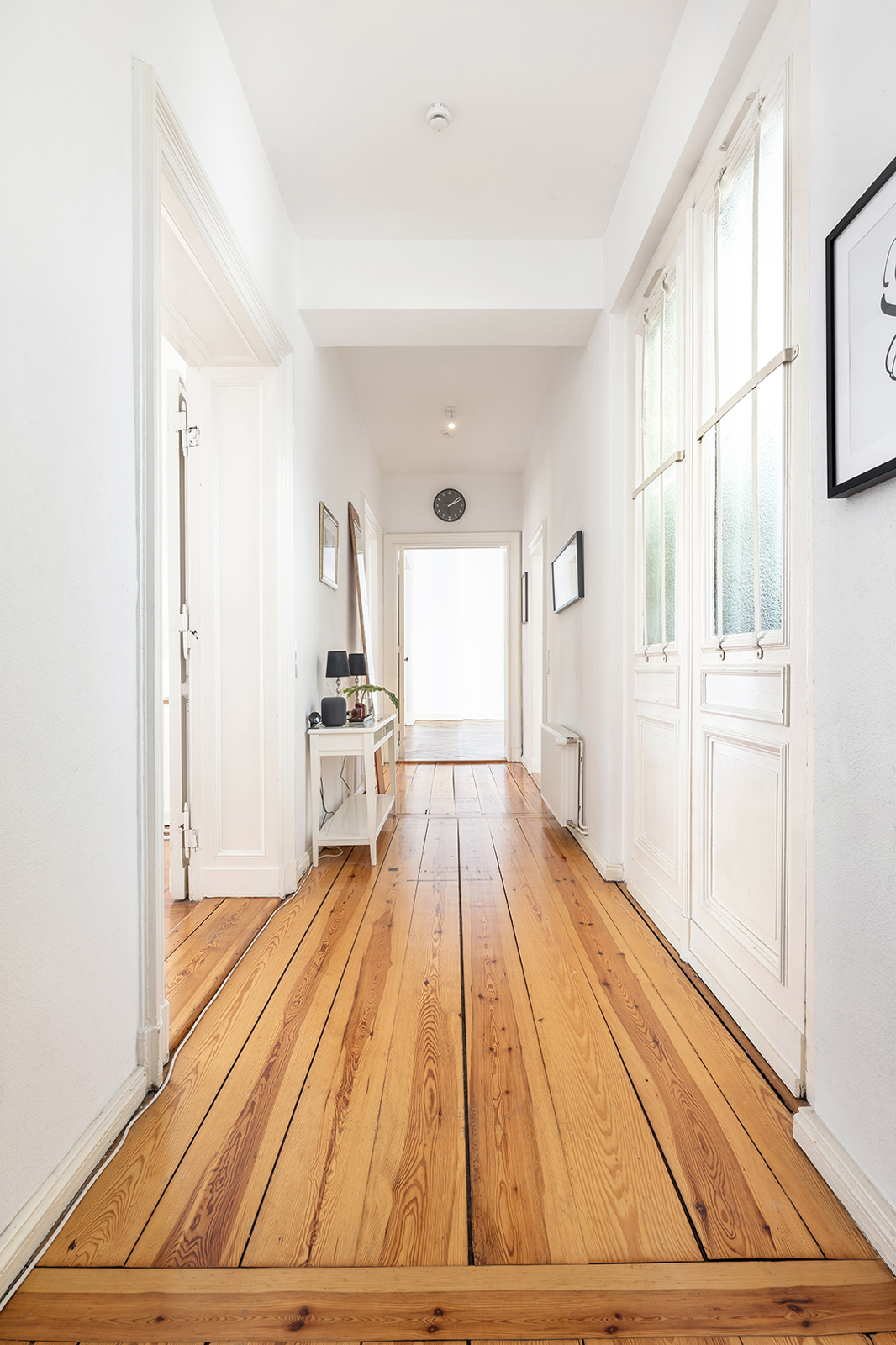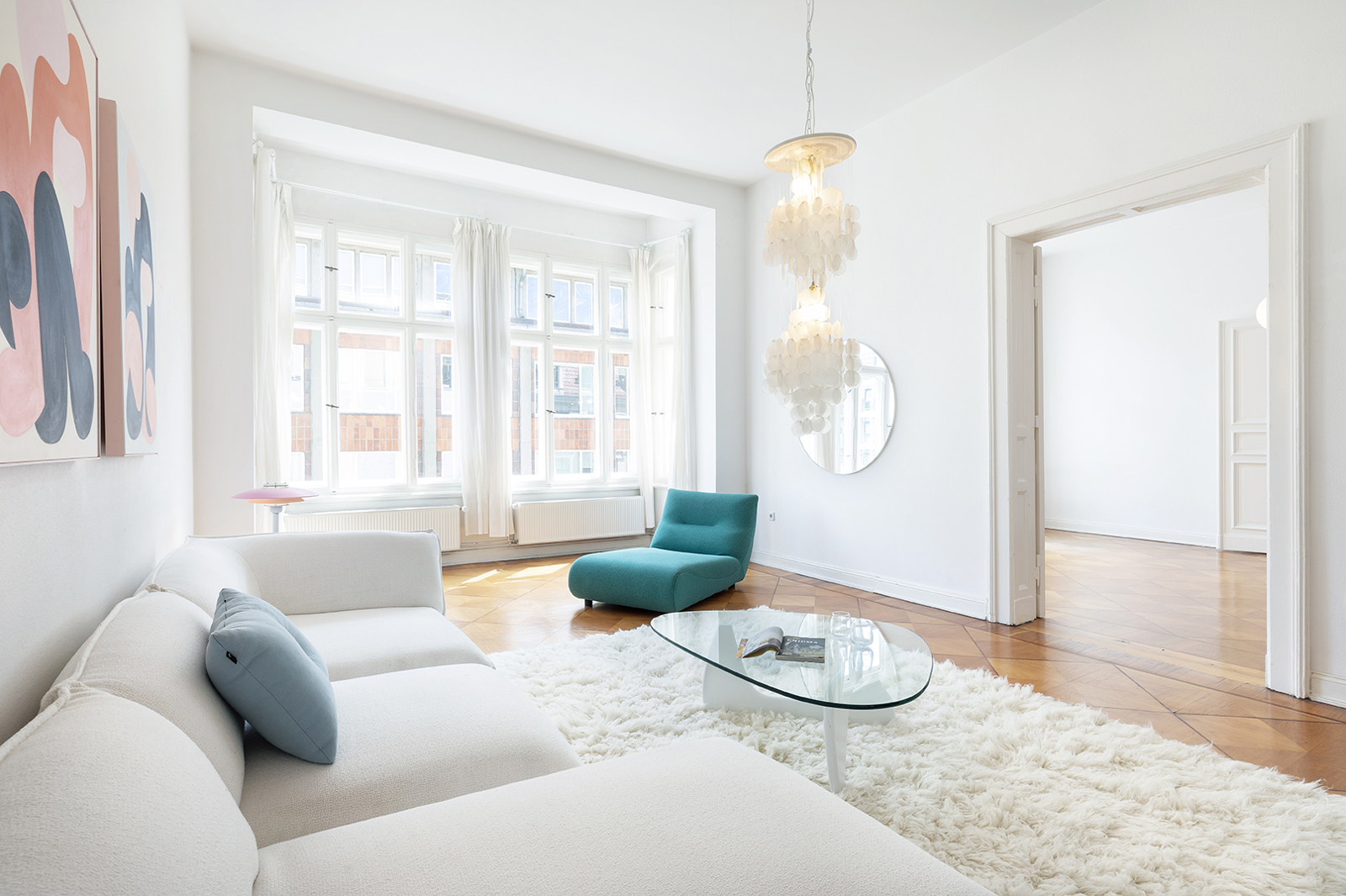 Oranienburger Straße, Berlin Mitte: Großzügige 5–6 Zimmerwohnung im sanierten Denkmal-Altbau mit charaktervollen Details An der Ecke Oranienburger Straße und Tucholskystraße erhebt sich ein traditionsreiches Wohn- und Geschäftshaus, das 1886 für den Kaufmann Philipp Wertheim erbaut wurde. Das heute denkmalgeschützte Gebäude beeindruckt bereits beim Betreten: Hinter dem schweren Holztor mit verglasten Elementen öffnet sich ein prachtvoll restauriertes Treppenhaus. Historische Stuckverzierungen, eine sorgfältig rekonstruierte Farbgestaltung, schmiedeeiserne Geländer sowie ein Sisalläufer vermitteln das unverkennbare Ambiente der Gründerzeit. Insgesamt umfasst das markante Eckhaus 14 Einheiten, die sowohl als Wohnräume als auch für gewerbliche Nutzung dienen. In unmittelbarer Umgebung liegen bekannte Bauwerke wie das Postfuhramt, die Neue Synagoge, die Heckmannhöfe sowie die Museumsinsel, was die kulturelle Bedeutung dieser Lage besonders hervorhebt. Die im dritten Obergeschoss gelegene Wohnung besticht durch ihre großzügige Raumaufteilung. Drei aufeinanderfolgende Zimmer zur Tucholskystraße, verbunden durch klassische Flügeltüren, schaffen eine elegante Wohnatmosphäre mit viel Offenheit. Durch die Ostlage fällt reichlich Morgenlicht in die Räume und belebt das Ensemble zusätzlich. Aktuell dient eines der Zimmer als Essbereich, angrenzend an das Berliner Zimmer, das sich durch eine große Falttür öffnen lässt. Diese Fläche könnte – je nach Wunsch – auch hervorragend zu einer offenen Küche umgestaltet werden. Die derzeit separate Küche liegt etwas zurückversetzt und ist über einen weiteren Flur mit dem Berliner Zimmer verbunden. Von hier aus führt der Weg in eine Vorratskammer sowie zu einem zweiten Eingang, der über das ehemalige Dienstbotentreppenhaus erschlossen ist. In einer alternativen Planung ließe sich dieser Bereich in ein komfortables Schlafzimmer mit Ankleide verwandeln. Ergänzt wird das Angebot durch ein Tageslichtbad mit Badewanne und ein separates Gäste-WC. Die Ausstattung zeichnet sich durch zahlreiche historische Elemente aus: hohe Decken, originales Tafelparkett, klassische Dielen sowie sorgfältig überarbeitete Doppelkastenfenster. In den letzten Jahren wurden Fassade, Treppenhaus und weitere Gebäudeteile umfassend und denkmalgerecht saniert. Damit verbindet sich der historische Charakter mit einem funktionalen Grundriss und schafft eine ausgesprochen seltene Gelegenheit, eine großzügige Altbauwohnung mitten in Berlin Mitte zu erwerben.