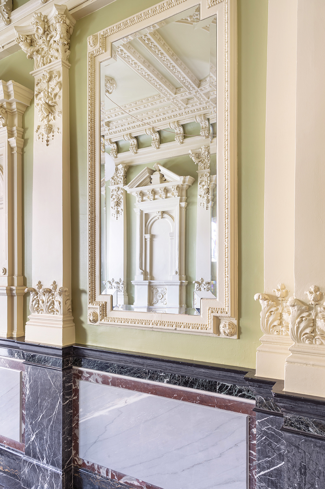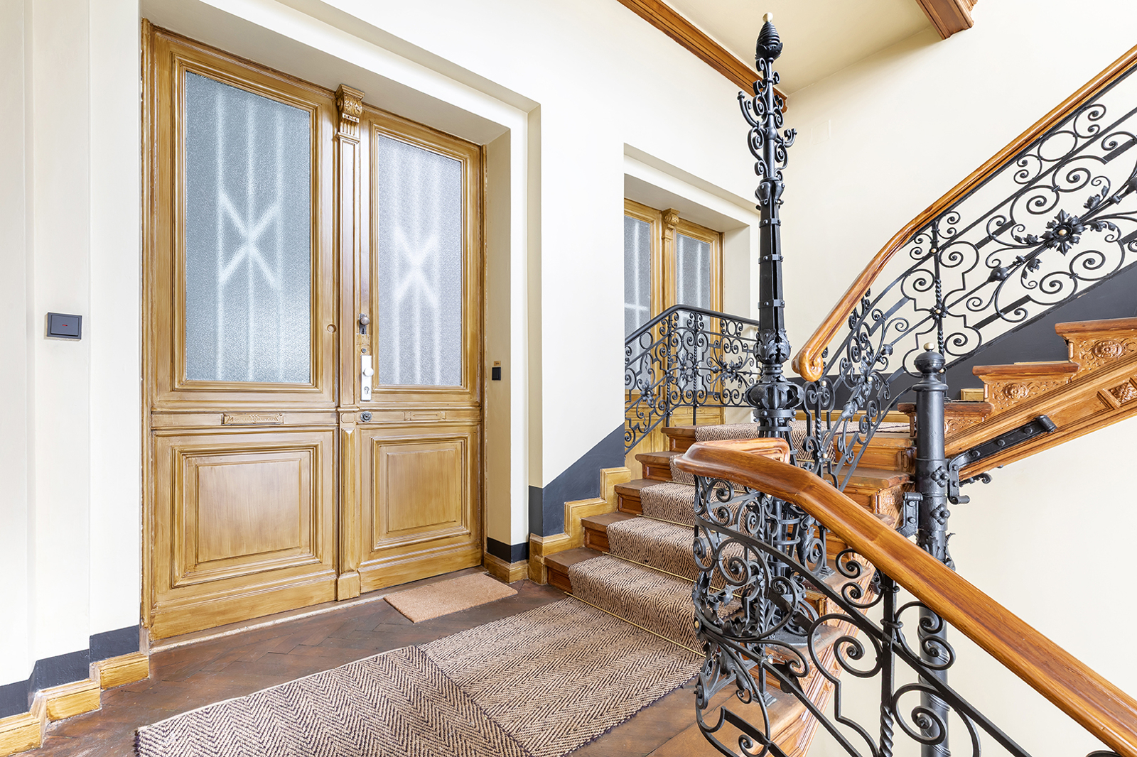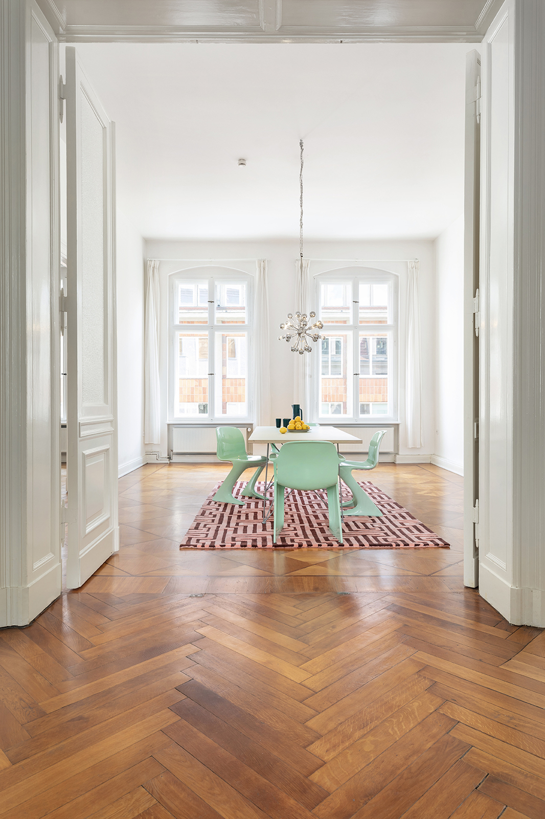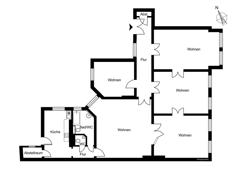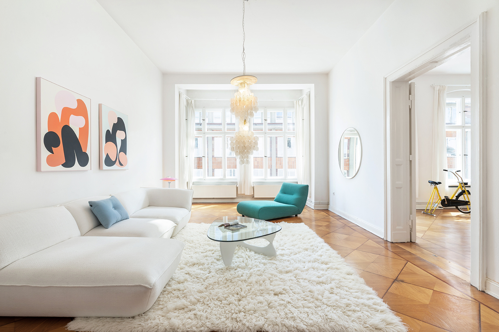 Oranienburger Straße, Berlin Mitte: Großzügige 5–6 Zimmerwohnung im sanierten Denkmal-Altbau mit charaktervollen Details An der Ecke Oranienburger Straße und Tucholskystraße erhebt sich ein traditionsreiches Wohn- und Geschäftshaus, das 1886 für den Kaufmann Philipp Wertheim erbaut wurde. Das heute denkmalgeschützte Gebäude beeindruckt bereits beim Betreten: Hinter dem schweren Holztor mit verglasten Elementen öffnet sich ein prachtvoll restauriertes Treppenhaus. Historische Stuckverzierungen, eine sorgfältig rekonstruierte Farbgestaltung, schmiedeeiserne Geländer sowie ein Sisalläufer vermitteln das unverkennbare Ambiente der Gründerzeit. Insgesamt umfasst das markante Eckhaus 14 Einheiten, die sowohl als Wohnräume als auch für gewerbliche Nutzung dienen. In unmittelbarer Umgebung liegen bekannte Bauwerke wie das Postfuhramt, die Neue Synagoge, die Heckmannhöfe sowie die Museumsinsel, was die kulturelle Bedeutung dieser Lage besonders hervorhebt. Die im dritten Obergeschoss gelegene Wohnung besticht durch ihre großzügige Raumaufteilung. Drei aufeinanderfolgende Zimmer zur Tucholskystraße, verbunden durch klassische Flügeltüren, schaffen eine elegante Wohnatmosphäre mit viel Offenheit. Durch die Ostlage fällt reichlich Morgenlicht in die Räume und belebt das Ensemble zusätzlich. Aktuell dient eines der Zimmer als Essbereich, angrenzend an das Berliner Zimmer, das sich durch eine große Falttür öffnen lässt. Diese Fläche könnte – je nach Wunsch – auch hervorragend zu einer offenen Küche umgestaltet werden. Die derzeit separate Küche liegt etwas zurückversetzt und ist über einen weiteren Flur mit dem Berliner Zimmer verbunden. Von hier aus führt der Weg in eine Vorratskammer sowie zu einem zweiten Eingang, der über das ehemalige Dienstbotentreppenhaus erschlossen ist. In einer alternativen Planung ließe sich dieser Bereich in ein komfortables Schlafzimmer mit Ankleide verwandeln. Ergänzt wird das Angebot durch ein Tageslichtbad mit Badewanne und ein separates Gäste-WC. Die Ausstattung zeichnet sich durch zahlreiche historische Elemente aus: hohe Decken, originales Tafelparkett, klassische Dielen sowie sorgfältig überarbeitete Doppelkastenfenster. In den letzten Jahren wurden Fassade, Treppenhaus und weitere Gebäudeteile umfassend und denkmalgerecht saniert. Damit verbindet sich der historische Charakter mit einem funktionalen Grundriss und schafft eine ausgesprochen seltene Gelegenheit, eine großzügige Altbauwohnung mitten in Berlin Mitte zu erwerben.