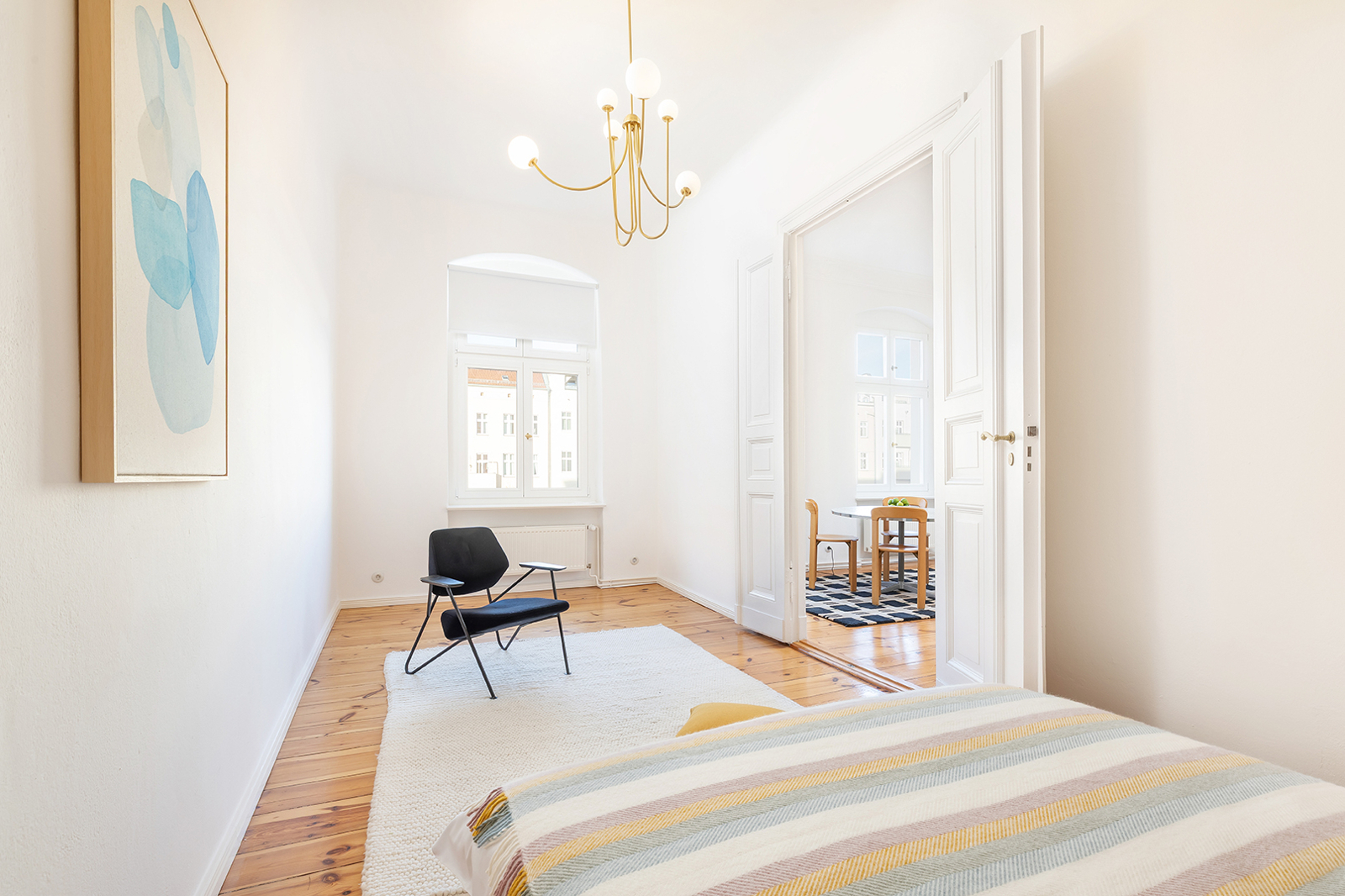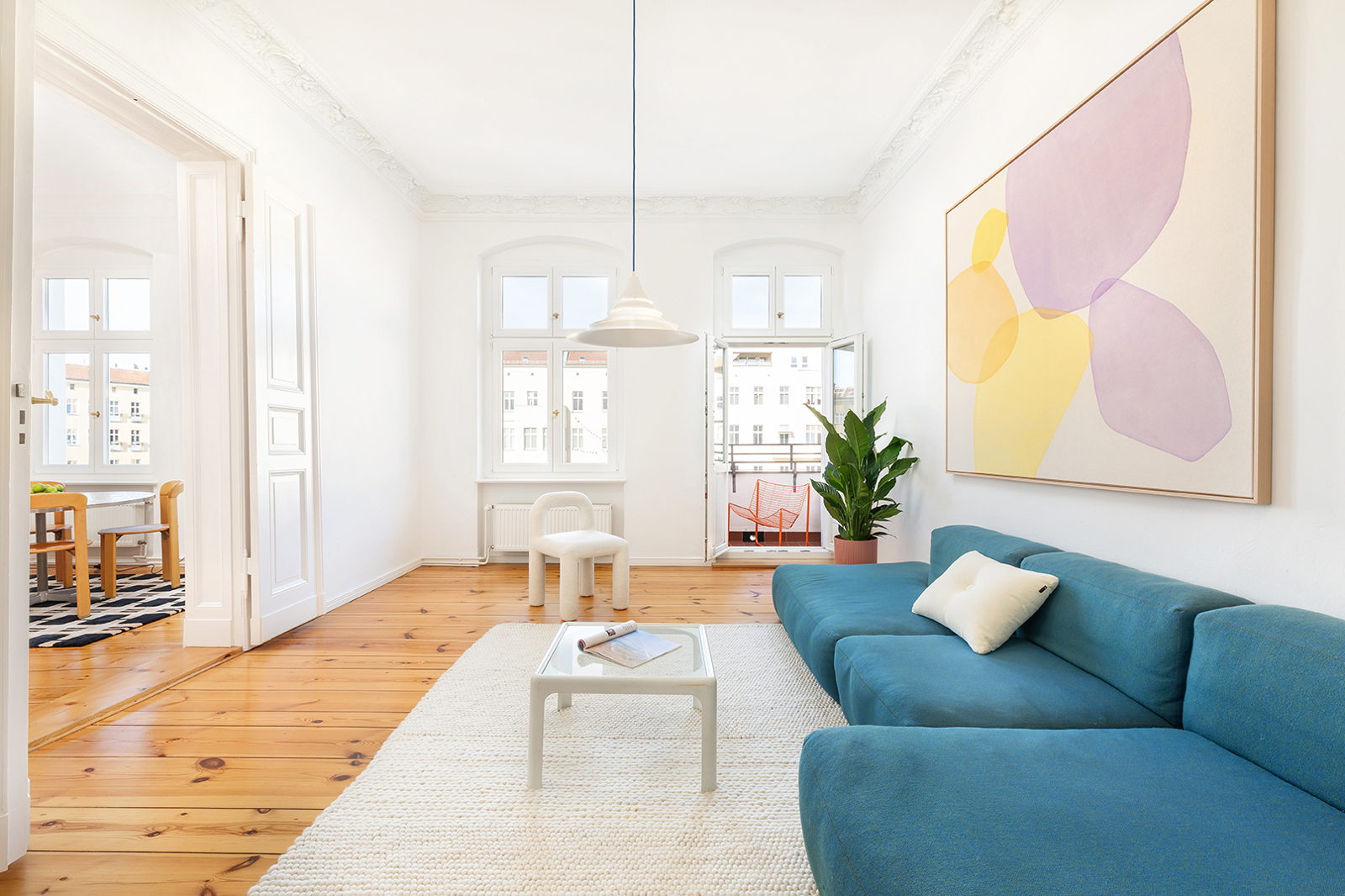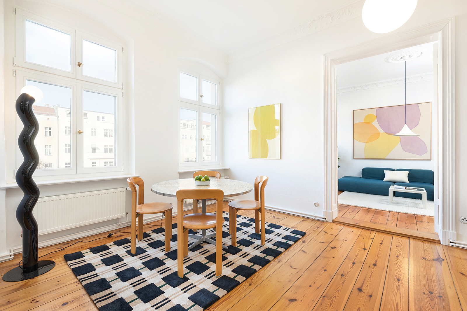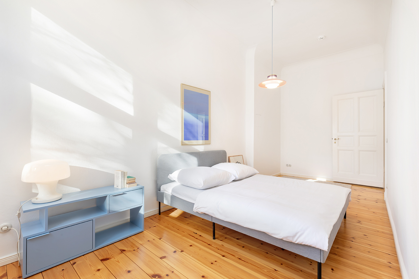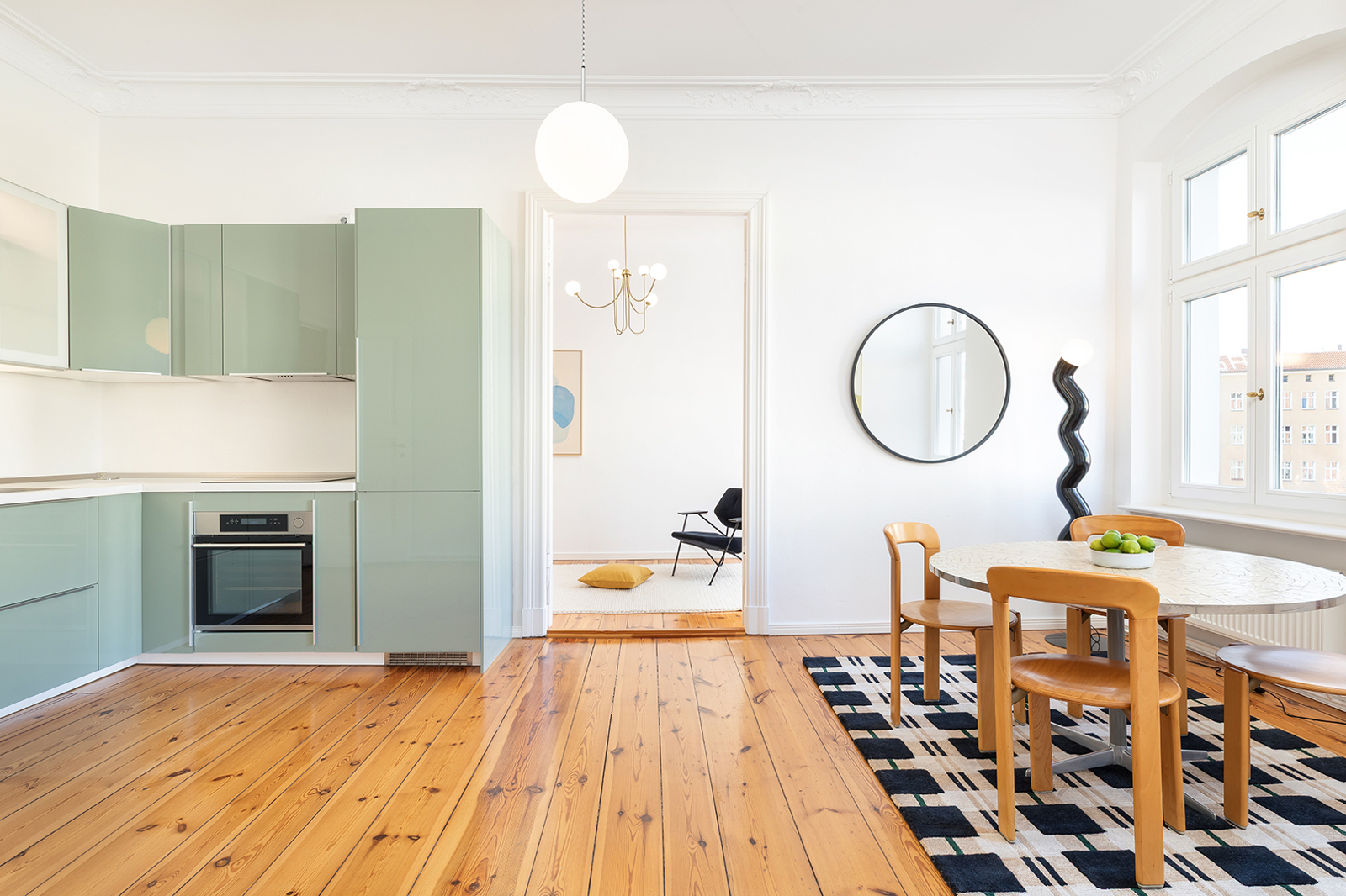 Zwischen Kollwitz- und Helmholzkiez: Zauberhafte Altbauwohnung, 3 Zimmer + Wohnküche, Kachelofen, Balkon, Lift Das um 1895 errichtete Eckhaus befindet sich an der Danziger Straße / Ecke Knaackstraße und liegt damit an der Schwelle zwischen Kollwitz- und Helmholtzkiez. Das Gemeinschaftseigentum präsentiert sich in sehr gepflegtem Zustand und wird laufend instand gehalten; das Dachgeschoss wurde zu Wohnzwecken ausgebaut. Der mit Bäumen bepflanzte Innenhof bietet ausreichend Fahrradstellplätze. Die hier angebotene Wohnung liegt im dritten Obergeschoss des Vorderhauses und ist bequem mit dem Fahrstuhl erreichbar, der auf halber Treppe hält. Auf rund 92 m² überzeugt sie durch eine durchdachte Raumaufteilung mit einer Wohnküche, drei separaten Zimmern sowie einem Tageslichtbad. Originale Altbautüren, aufgearbeitete Dielenböden und imposante Deckenhöhen mit Stuckverzierungen verleihen der Wohnung ihren unverwechselbaren Altbaucharme. Zentrum der Wohnung ist die Wohnküche mit ihrer in dezenten Grüntönen gehaltenen, gepflegten Einbauküche, die vollständig ausgestattet ist und im Kaufpreis enthalten bleibt. Rechts anschließend gelangt man über eine elegante Flügeltür in das helle Wohnzimmer mit Zugang zum Balkon, der einen weiten Blick in die Straßenschlucht eröffnet. Der funktionsfähige, weiß geflieste Kachelofen sorgt hier für eine behagliche Atmosphäre. Das links von der Wohnküche gelegene Zimmer eignet sich ideal als Schlaf-, Arbeits- oder Kinderzimmer. Freigelegtes Mauerwerk verleiht dem Raum einen besonderen Charakter. Wohnküche sowie die beiden benachbarten Zimmer sind zur Danziger Straße ausgerichtet und genießen eine herrliche Weitsicht bei außergewöhnlicher Helligkeit. In allen drei Räumen wurden 2016 hochwertige Holzfenster mit Schallschutzverglasung eingebaut, die für besonderen Wohnkomfort sorgen. Zum ruhigen Innenhof hin befindet sich das zweite Schlafzimmer, das ausreichend Platz für ein Doppelbett und einen großen Schrank bietet. Das Tageslichtbad mit Dusche, WC und Waschbecken ist in freundlichen Blautönen gefliest und fügt sich harmonisch in das Gesamtbild der Wohnung ein. Ein praktischer Abstellraum, der über den Flur erreichbar ist, bietet zusätzliche Staufläche und einen Waschmaschinenanschluss. Zur Wohnung gehört ein Keller; die Wohnung ist kurzfristig bezugsfrei.