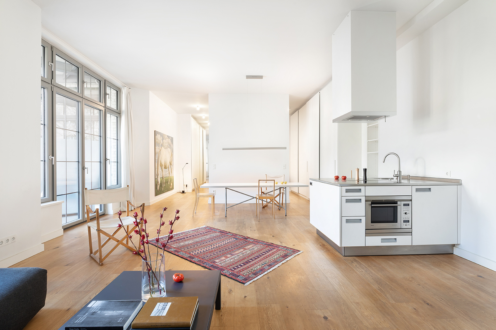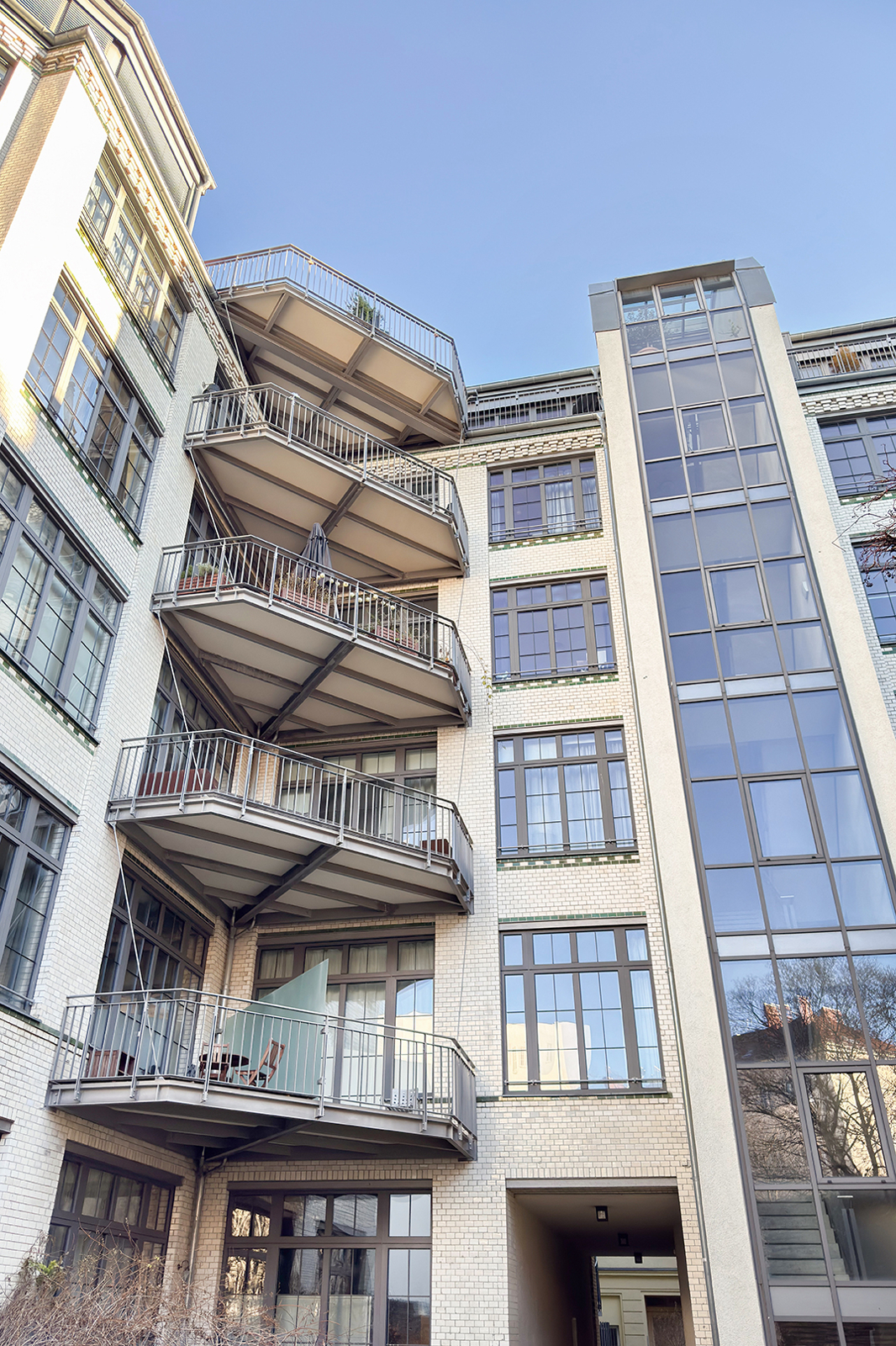 Das hier angebotene Loft in der Schwedter Straße in Berlin Prenzlauer Berg, gelegen in einem außergewöhnlichen Wohnensemble mit industrieller Vergangenheit. Das Gebäude wurde um 1900 als Schokoladenfabrik errichtet und im Zuge einer umfassenden Sanierung in den Jahren 2008/2009 behutsam in den heutigen Zustand überführt. Die markante Klinkerfassade, die klaren Linien sowie die großzügigen Fensteröffnungen erinnern bis heute an den ursprünglichen Fabrikcharakter. Das Gemeinschaftseigentum wurde seit der Sanierung laufend instandgehalten. Die Wohnung befindet sich in der 1. Etage und ist bequem über einen Aufzug erreichbar. Der offene Grundriss, die großzügigen Raumdimensionen sowie die großformatigen Fensterflächen verleihen der Wohnung ein ausgeprägtes loftartiges Wohngefühl mit viel Licht und Luft. Der zentrale Wohn- und Essbereich mit integrierter Küche bildet das Herzstück der Wohnung. Die Küche ist elegant in den Wohnraum eingebunden und fügt sich harmonisch in das Gesamtbild ein. Eine Fußbodenheizung sorgt in der gesamten Wohnung für angenehmen Wohnkomfort. Vom Wohnbereich aus gelangt man auf den Balkon, der den Wohnraum sinnvoll erweitert und einen ruhigen Rückzugsort im urbanen Umfeld bietet. Der Schlafbereich ist klar vom Wohnbereich getrennt und bietet ausreichend Platz für ein großes Bett sowie zusätzlichen Stauraum. Das modern und hochwertig ausgestattete Badezimmer überzeugt durch eine zeitlose Gestaltung und fügt sich funktional in das Gesamtkonzept der Wohnung ein. Insgesamt präsentiert sich die Ausstattung gepflegt, hochwertig und zurückhaltend modern – eine ideale Basis sowohl für den sofortigen Bezug als auch für individuelle gestalterische Akzente. Ein Stellplatz in der hauseigenen Tiefgarage wird mitverkauft und ist im Kaufpreis enthalten Wichtiger Hinweis: Bei der Einheit handelt es sich gemäß Grundbuchblatt um Teileigentum.