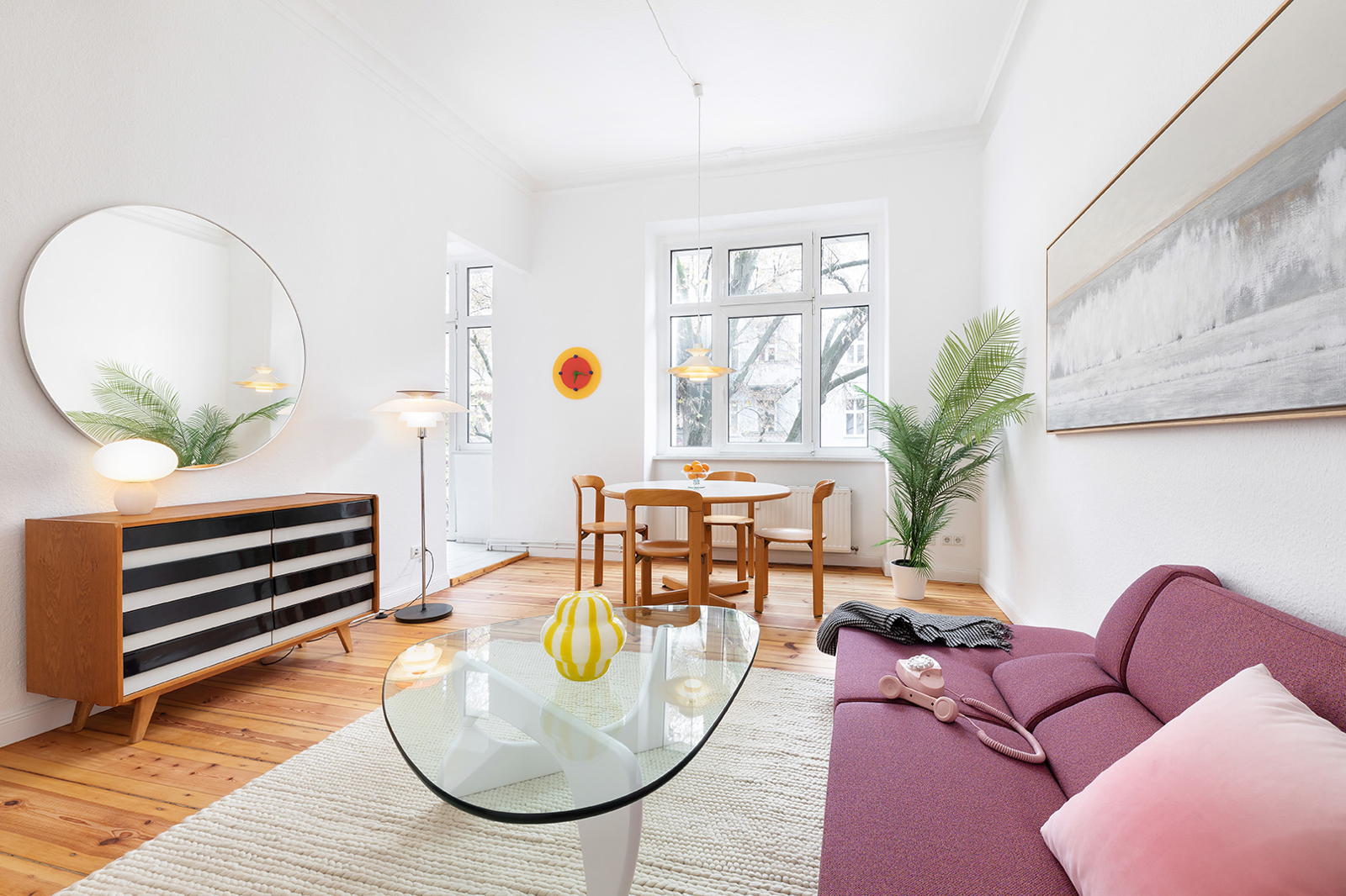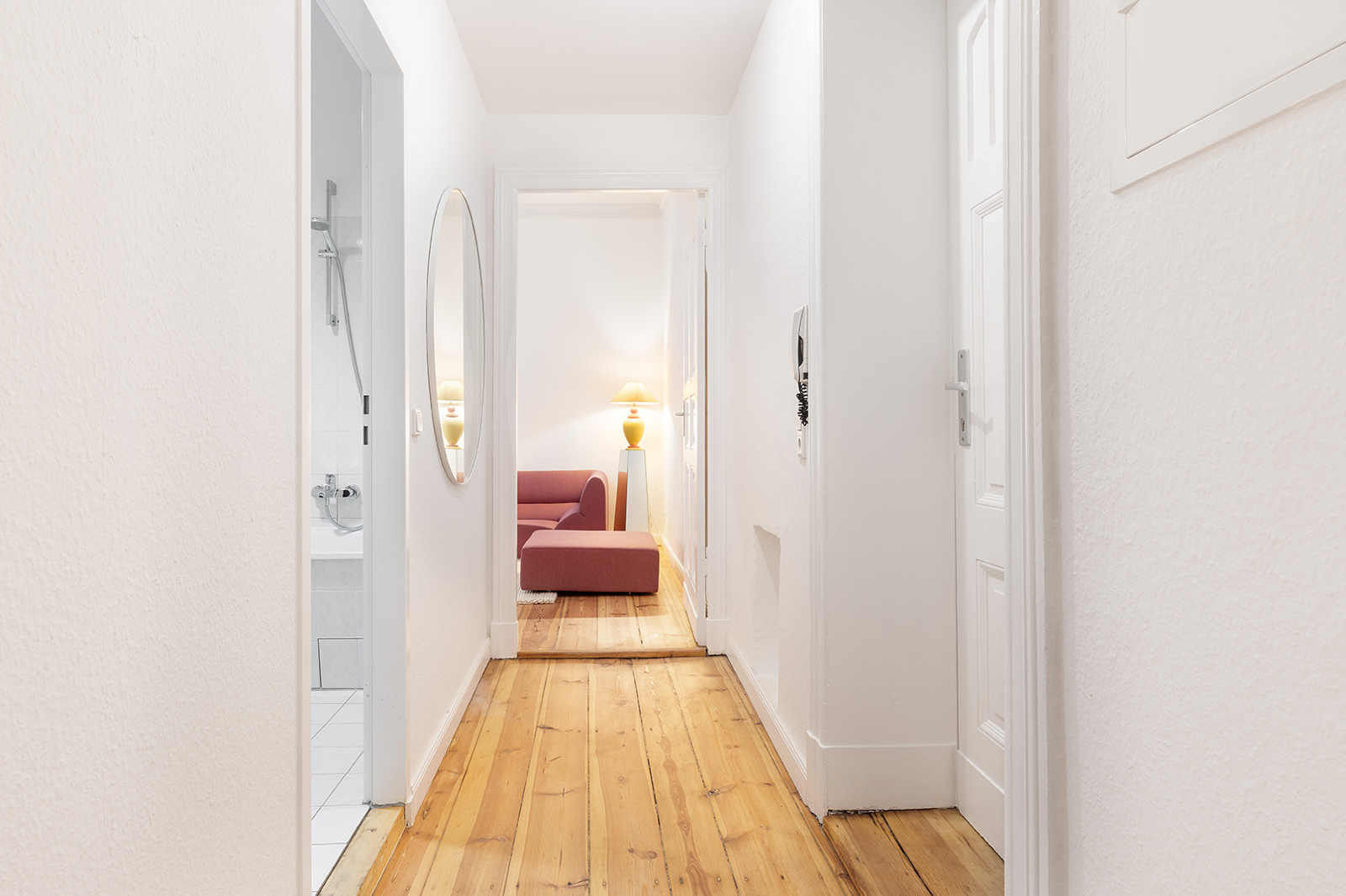 Simon Dach Kiez: Helle und renovierte 2-Zimmer Altbauwohnung, Holzdielen, Französischer Balkon, E-Effizienz B Mitten im lebendigen Friedrichshain, nur wenige Schritte vom Boxhagener Platz entfernt, liegt diese Altbauwohnung im dritten Obergeschoss des Vorderhauses eines gepflegten Mehrfamilienhauses. Das Haus präsentiert sich in gutem Zustand – das renovierte Treppenhaus mit Sisal-Belag und die jüngst installierte, moderne Wärmepumpen-Heizung verbinden klassische Architektur mit zeitgemäßer Ausstattung. Ein Aufzug hält zwischen dem 2. und 3. OG und hilft beim Umzug oder großen Einkäufen. Auf 2 großzügige Zimmer, ein Bad und eine Küche mit französischem Balkon verteilt, bietet sie alles, was das Herz von Altbau-Liebhabern höherschlagen lässt. Dank der westlichen Ausrichtung aller Fenster werden die Räume von viel natürlichem Licht durchflutet. Besonders das Wohnzimmer, an das direkt die offene Küche anschließt, beeindruckt mit seinem hellen Holz-Fußboden und der großzügigen Deckenhöhe – ein echter Wohlfühlort. Das Schlafzimmer bietet nicht nur Platz für Bett und Schränke, sondern eignet sich auch hervorragend für eine kleine Arbeitsecke. Das Badezimmer wurde gerade erst erneuert und überzeugt mit Badewanne und modernen Fliesen. Die Wohnung befindet sich in einem guten Zustand, sodass lediglich kleinere, geschmackliche Anpassungen nötig sein könnten. Altbau-Charme inklusive, der dem Zuhause das gewisse Etwas verleiht. Ein Keller gehört ebenfalls zur Wohnung.