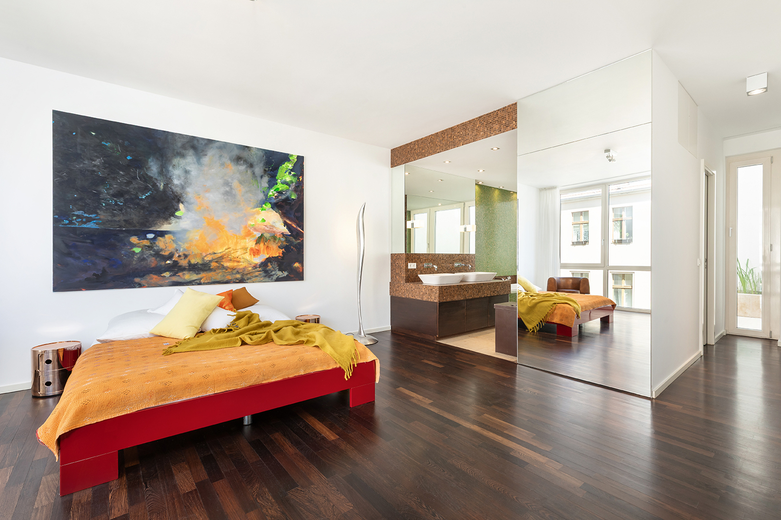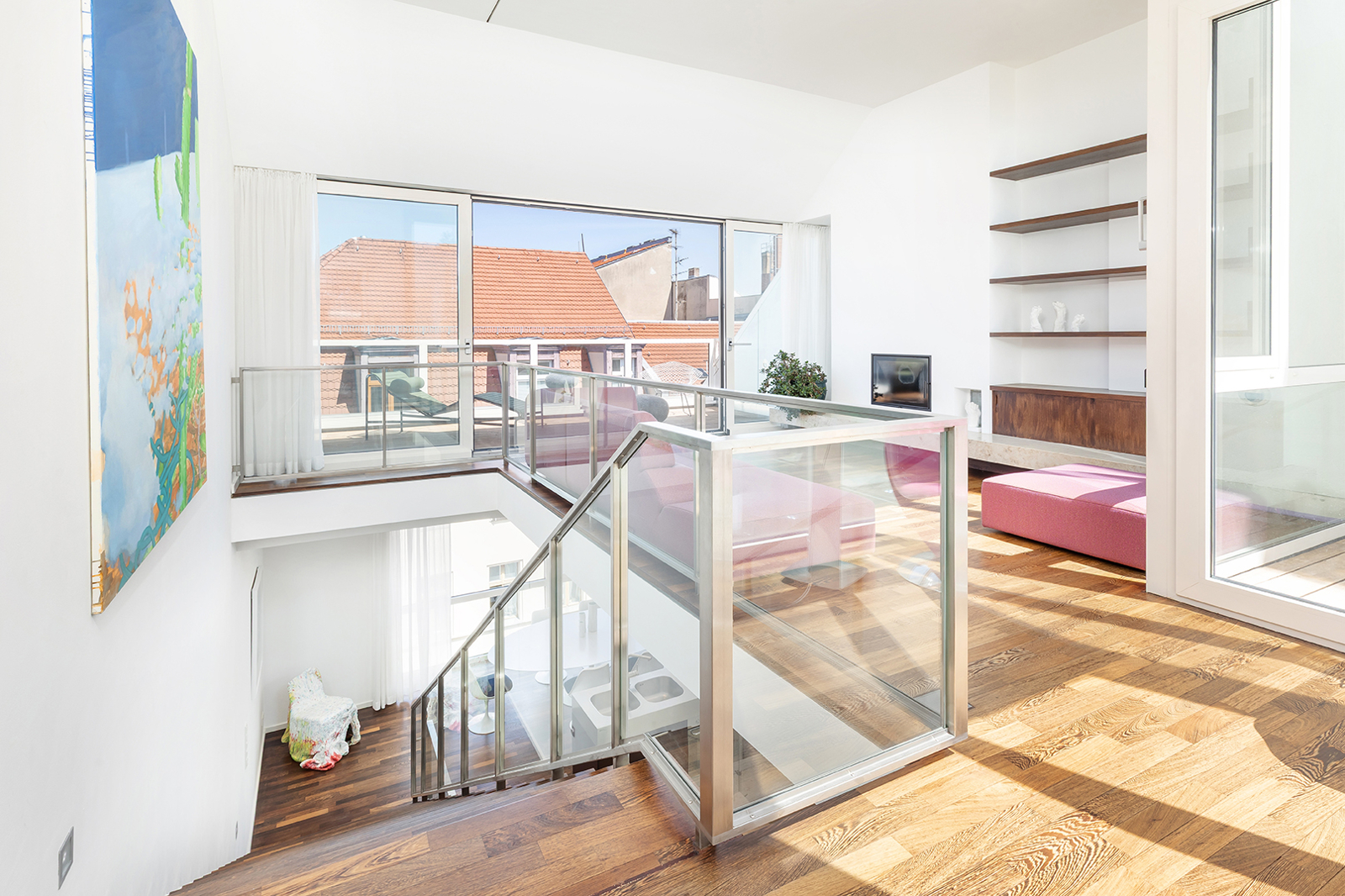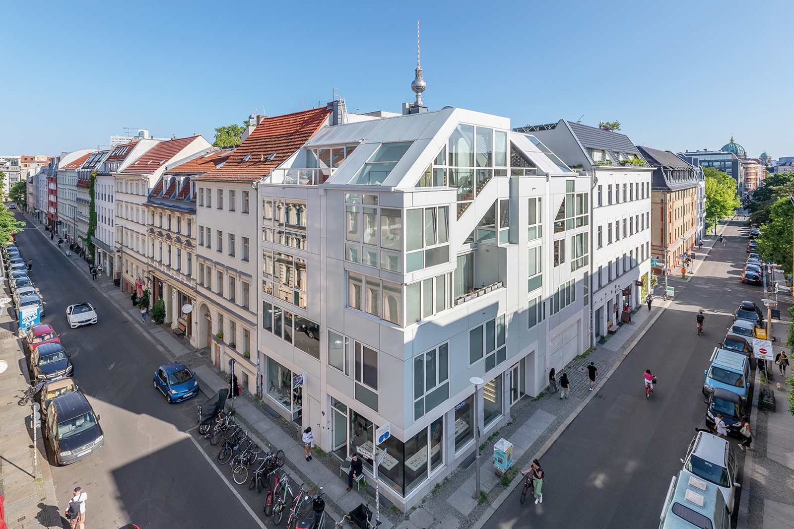 Gormannstraße, Mitte: Spektakuläres Townhouse mit Aufzug, Kamin, Terrassen, Zen-Bereich, Stellplatz „Meine Vision war es, das Townhouse in erster Linie als Familienhaus zu sehen, das sich zugleich perfekt als Ort zur Präsentation einer Kunstsammlung eignet: ein Art House mit Charakter.“ Eigentümer dieses Townhouses „Meine Vision war es, das Townhouse in erster Linie als Familienhaus zu sehen, das sich zugleich perfekt als Ort zur Präsentation einer Kunstsammlung eignet: ein Art House mit Charakter.“ Eigentümer dieses Townhouses Mitten im historischen Scheunenviertel von Berlin Mitte befindet sich dieses architektonisch anspruchsvolle Townhouse, realisiert von den vielfach ausgezeichneten HS-Architekten aus Berlin und stilvoll interpretiert durch den britischen Interior Designer Peter Harvey. Das Haus wurde 2008 in massiver Bauweise errichtet und verfügt über eine Wohn- und Nutzfläche von rund 198 m². Die markante Fassade reflektiert den Himmel und bildet einen spannenden Kontrast zur beinahe dörflichen Nachbarschaft – und das nur wenige Schritte von der Mulackstraße entfernt. In unmittelbarer Umgebung liegen die Boutiquen der Alten Schönhauser Straße sowie die renommierten Galerien und Restaurants der Auguststraße. Das Haus ist auf zwei Wegen zugänglich: Über den repräsentativen Eingang in der Gormannstraße gelangt man per Aufzug direkt auf jede Etage. Alternativ führt ein separater Zugang von der Mulackstraße über ein Treppenhaus in alle vier Ebenen. Großzügige Glasflächen, hohe Decken, fließende Übergänge zwischen Innen- und Außenbereichen sowie Balkone, Patio und Terrasse sorgen für ein lichtdurchflutetes Raumgefühl. Das Townhouse erstreckt sich über vier Etagen und bietet modernes Wohnen mit hoher Flexibilität: 1. Etage: Variabel nutzbarer, großzügiger Raum (ein oder zwei Zimmer) mit eigenem Bad sowie Hauswirtschaftsraum. 2. Etage: Master-Schlafzimmer mit offen gestaltetem En-Suite-Bad und großer Walk-in-Dusche. Edle Bisazza-Glasmosaike greifen das Licht des geschützten Zen-Patios mit Bepflanzung und Wasserbecken auf. 3. Etage: Offene Küche mit weitläufigem Essbereich. Eine Trennwand mit integriertem Aquarium separiert das Gäste-WC. Zusätzlich ein Balkon mit Blick in das Patio. 4. Etage: Das Treppenhaus öffnet sich nach oben zum Himmel. Hier befindet sich der Wohnbereich mit Kamin, der nahtlos auf die große Dachterrasse mit Blick über die Dächer Berlins führt. Ergänzt wird diese Ebene durch einen weiteren Balkon sowie das darunterliegende Patio. Ein Tiefgaragen-Duplexstellplatz mit Aufzug und barrierefreiem Zugang ist im Angebot bereits enthalten. Die in den Räumen präsentierten Kunstwerke stammen von der Künstlerin Teresa Mazuela Sequeira.