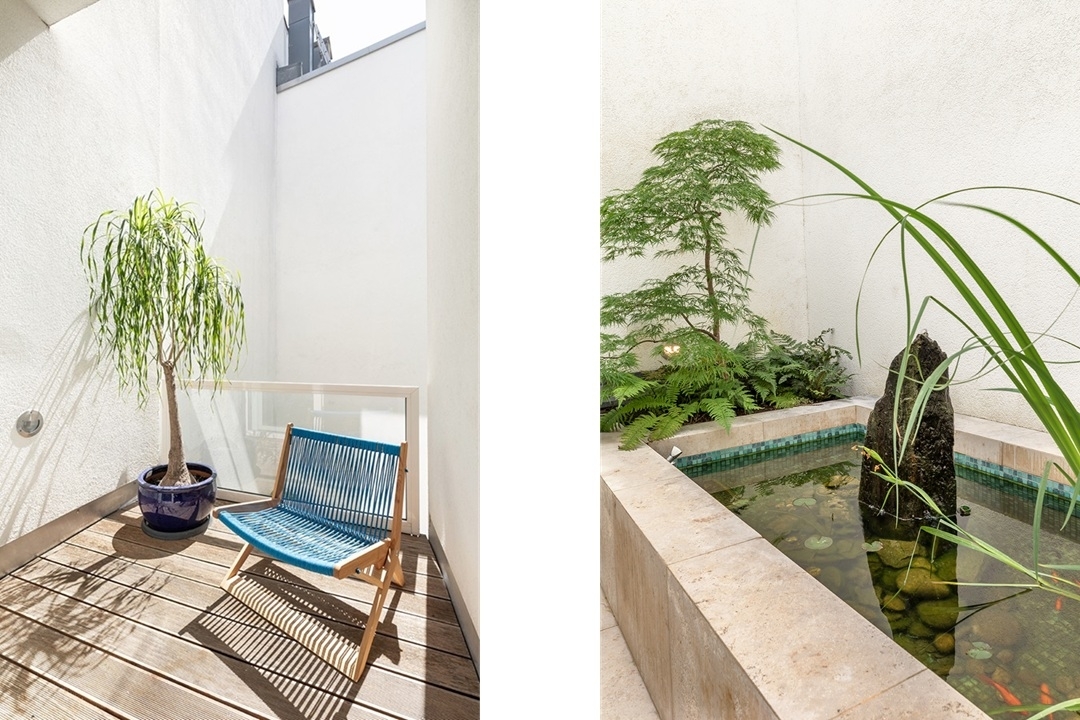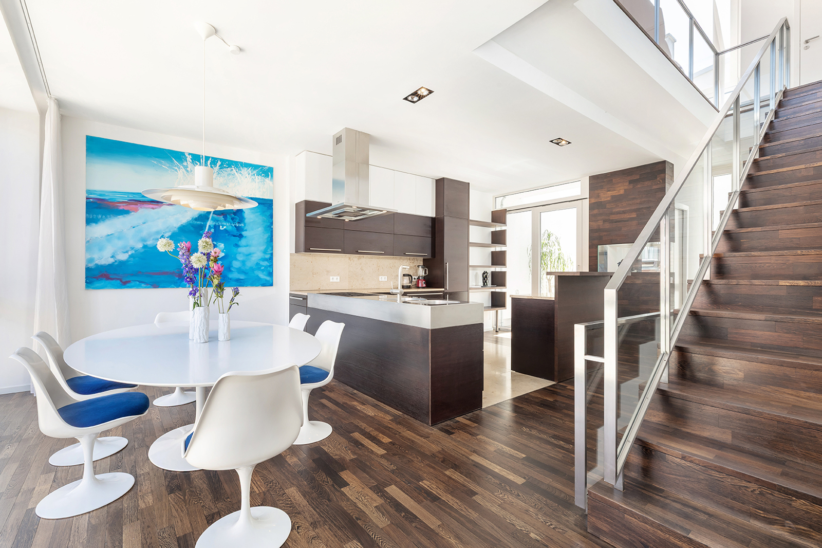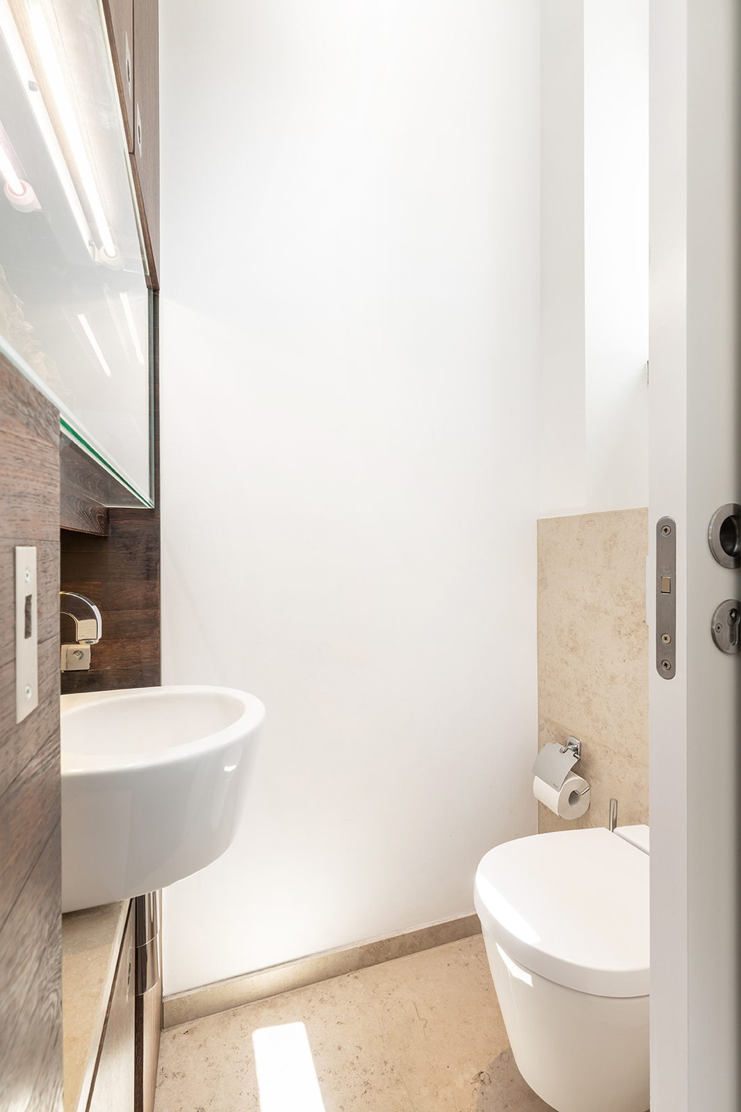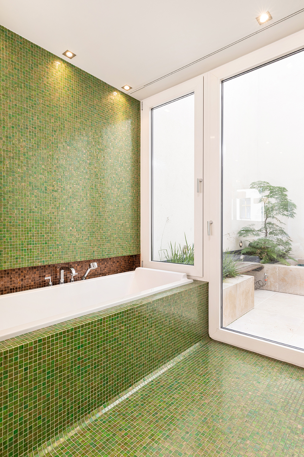 Gormannstraße, Mitte: Spektakuläres Townhouse mit Aufzug, Kamin, Terrassen, Zen-Bereich, Stellplatz „Meine Vision war es, das Townhouse in erster Linie als Familienhaus zu sehen, das sich zugleich perfekt als Ort zur Präsentation einer Kunstsammlung eignet: ein Art House mit Charakter.“ Eigentümer dieses Townhouses „Meine Vision war es, das Townhouse in erster Linie als Familienhaus zu sehen, das sich zugleich perfekt als Ort zur Präsentation einer Kunstsammlung eignet: ein Art House mit Charakter.“ Eigentümer dieses Townhouses Mitten im historischen Scheunenviertel von Berlin Mitte befindet sich dieses architektonisch anspruchsvolle Townhouse, realisiert von den vielfach ausgezeichneten HS-Architekten aus Berlin und stilvoll interpretiert durch den britischen Interior Designer Peter Harvey. Das Haus wurde 2008 in massiver Bauweise errichtet und verfügt über eine Wohn- und Nutzfläche von rund 198 m². Die markante Fassade reflektiert den Himmel und bildet einen spannenden Kontrast zur beinahe dörflichen Nachbarschaft – und das nur wenige Schritte von der Mulackstraße entfernt. In unmittelbarer Umgebung liegen die Boutiquen der Alten Schönhauser Straße sowie die renommierten Galerien und Restaurants der Auguststraße. Das Haus ist auf zwei Wegen zugänglich: Über den repräsentativen Eingang in der Gormannstraße gelangt man per Aufzug direkt auf jede Etage. Alternativ führt ein separater Zugang von der Mulackstraße über ein Treppenhaus in alle vier Ebenen. Großzügige Glasflächen, hohe Decken, fließende Übergänge zwischen Innen- und Außenbereichen sowie Balkone, Patio und Terrasse sorgen für ein lichtdurchflutetes Raumgefühl. Das Townhouse erstreckt sich über vier Etagen und bietet modernes Wohnen mit hoher Flexibilität: 1. Etage: Variabel nutzbarer, großzügiger Raum (ein oder zwei Zimmer) mit eigenem Bad sowie Hauswirtschaftsraum. 2. Etage: Master-Schlafzimmer mit offen gestaltetem En-Suite-Bad und großer Walk-in-Dusche. Edle Bisazza-Glasmosaike greifen das Licht des geschützten Zen-Patios mit Bepflanzung und Wasserbecken auf. 3. Etage: Offene Küche mit weitläufigem Essbereich. Eine Trennwand mit integriertem Aquarium separiert das Gäste-WC. Zusätzlich ein Balkon mit Blick in das Patio. 4. Etage: Das Treppenhaus öffnet sich nach oben zum Himmel. Hier befindet sich der Wohnbereich mit Kamin, der nahtlos auf die große Dachterrasse mit Blick über die Dächer Berlins führt. Ergänzt wird diese Ebene durch einen weiteren Balkon sowie das darunterliegende Patio. Ein Tiefgaragen-Duplexstellplatz mit Aufzug und barrierefreiem Zugang ist im Angebot bereits enthalten. Die in den Räumen präsentierten Kunstwerke stammen von der Künstlerin Teresa Mazuela Sequeira.