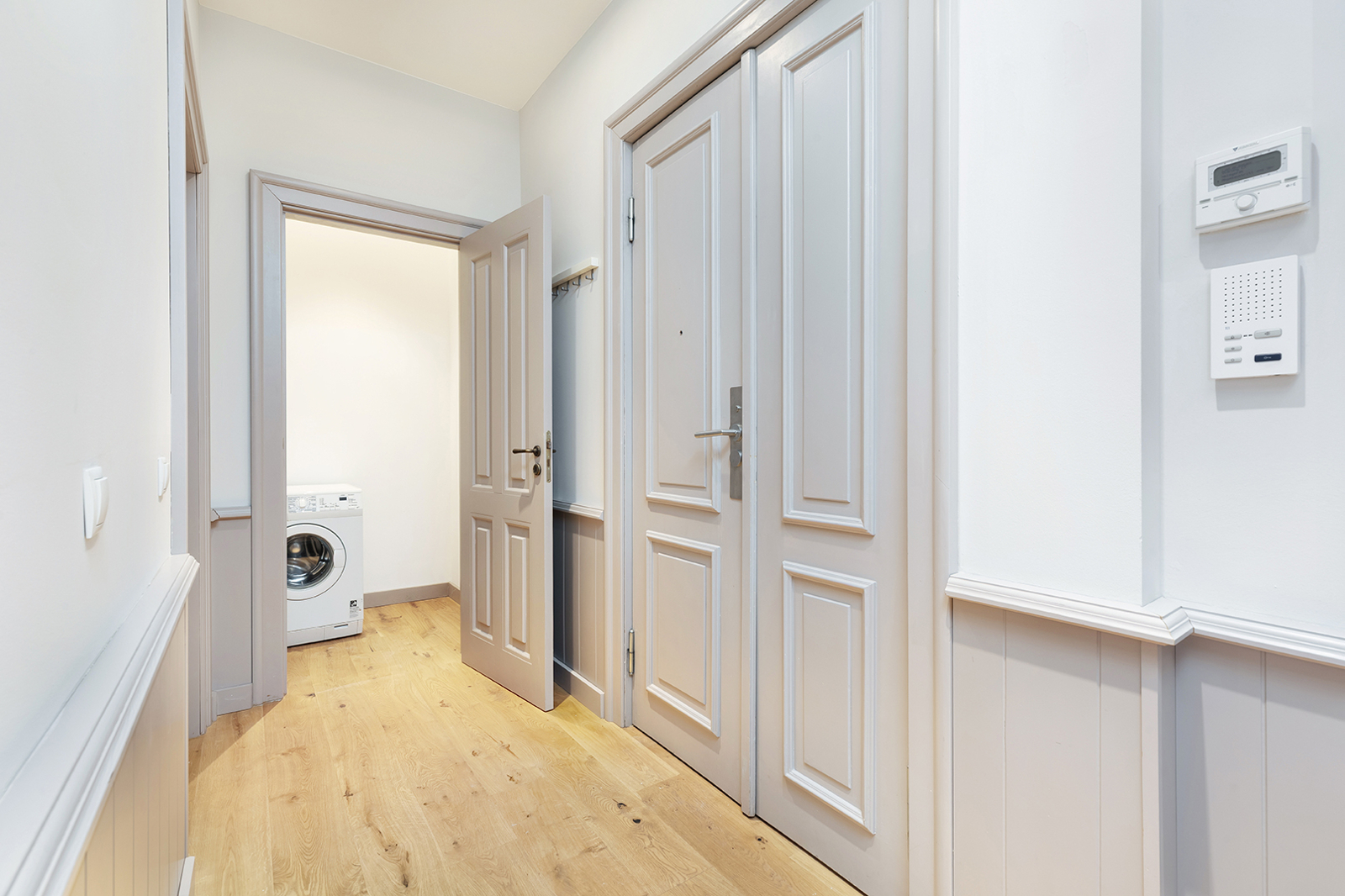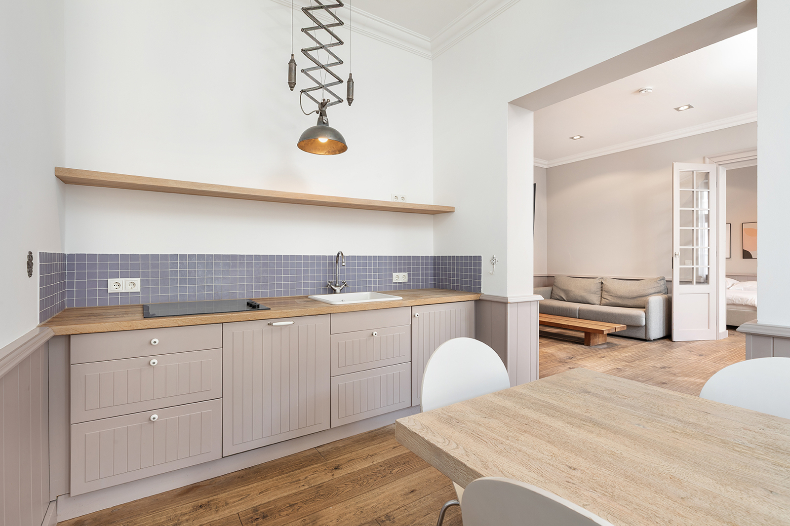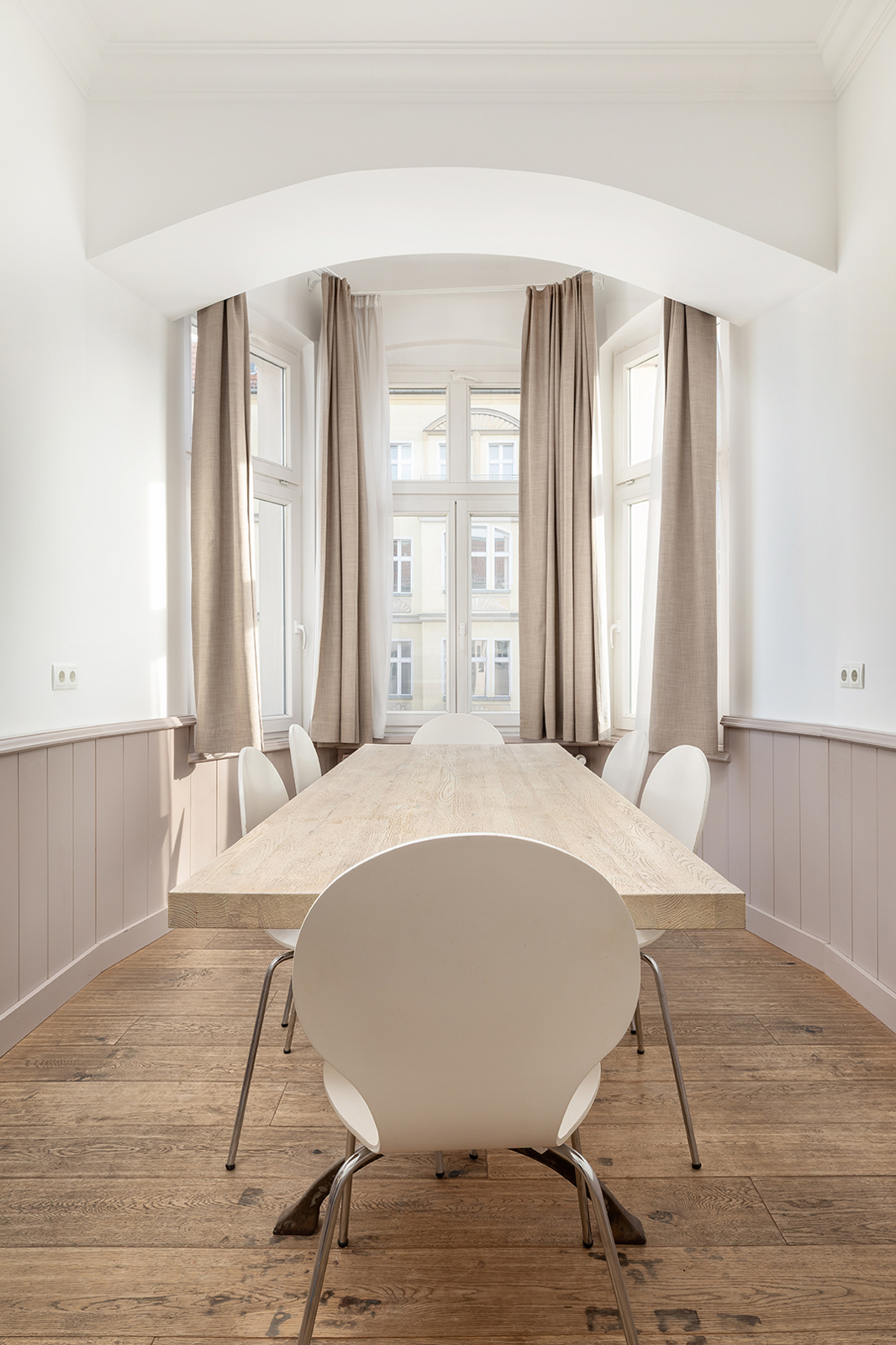 Nahe Rosa-Luxemburg-Platz: 4 Zimmer Altbau-Wohnung, 2 Bäder, elegant und aufwendig saniert Dieser 1900 erbaute und in den letzten Jahren sanierte Altbau bietet einen spannenden Mix aus Gewerbe und Wohnungen. Das Treppenhaus empfängt mit einer eleganten runden Treppe, die für Berlin sehr ungewöhnliche Blicke gewährt. Die Wohnung liegt im 2. OG des Vorderhauses. Auf rund 118 m² vereint sie den unverwechselbaren Charme klassischer Berliner Altbauten mit einer durchdachten und großzügigen Raumaufteilung – ideal für Paare oder kleine Familien. Bereits beim Betreten der Wohnung spürt man die besondere Atmosphäre: Ein großzügiger Flur begrüßt Sie und führt in die weiteren Räume. Direkt rechts liegt das Wohn- und Esszimmer mit Blick zur Schönhauser Allee. Daneben ein weiteres Zimmer, erreichbar über eine Flügeltür. Hier liegt auch die Küche, die genug Platz für eine Einbauküche und einen großzügigen Essbereich bietet. Ein echtes Highlight: Der Blick auf den Fernsehturm direkt vom Esstisch. Im hinteren Teil der Wohnung liegen 2 weitere Zimmer: Eines als Durchgangszimmer, ideal zB als Arbeitszimmer oder zweites Wohnzimmer, direkt dahinter ein weiteres Schlafzimmer. Diese 2 liegen zum ruhigen Innenhof. In allen Räumen liegt elegantes Parkett, die Wände wurden mit aufwendigen Holzverkleidungen ausgekleidet. Wände, Verkleidungen, Türen, die Küche und alle Einbauten: Alles ist hier Ton in Ton gehalten. Die Wohnung verfügt somit über einen ganz besonderen Charme: Elegant und gleichzeitig modern. Des weiteren verfügt die Wohnung über ein modernes Tageslicht-Bad mit Dusche und Badewanne sowie ein weiteres Duschbad. Eine praktische Abstellkammer mit Wasseranschluss für die Waschmaschine vervollständigt das Angebot. Die Wohnung ist kurzfristig bezugsfrei.