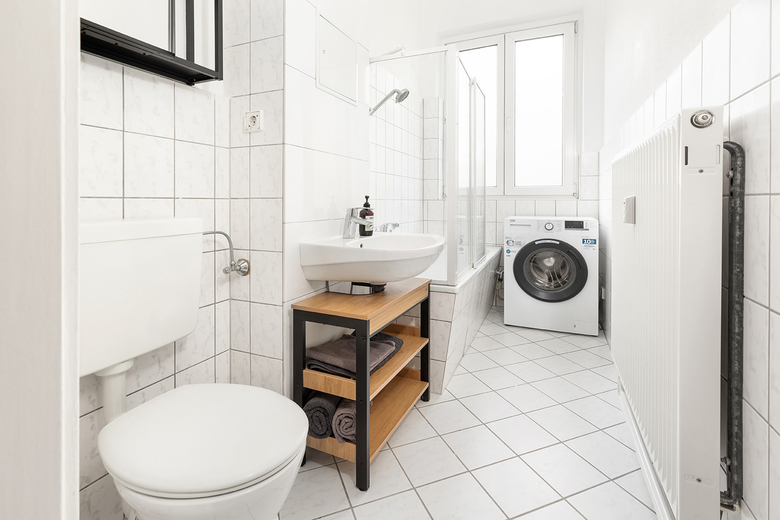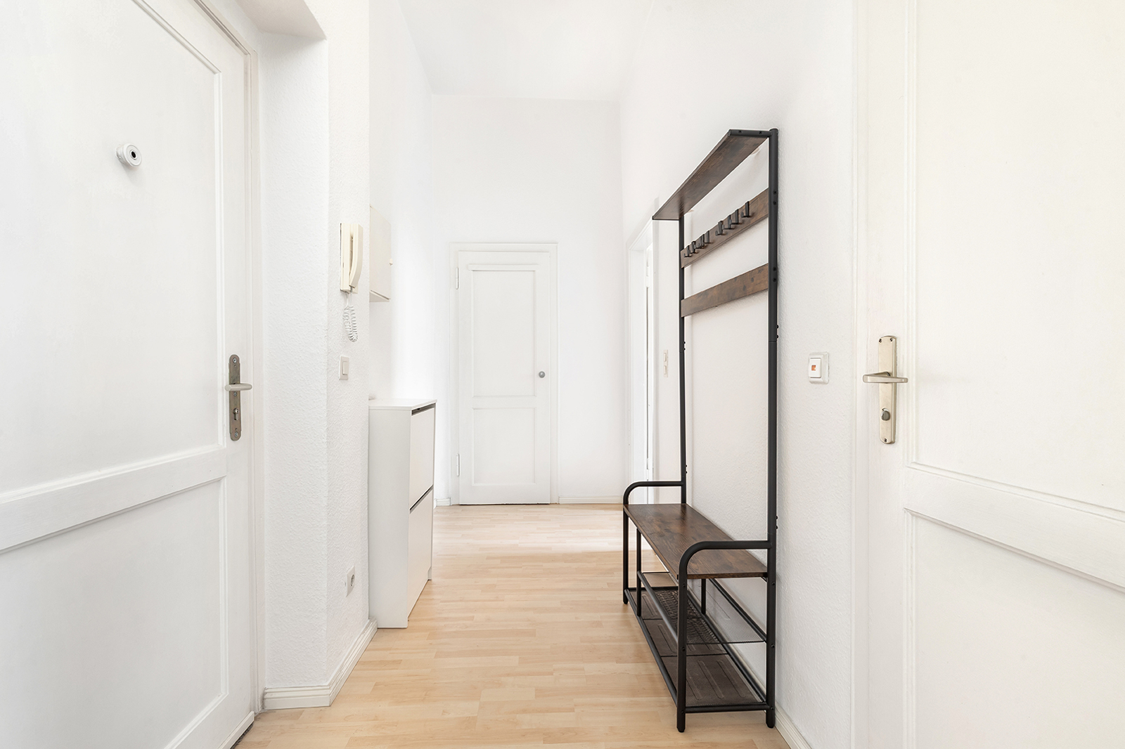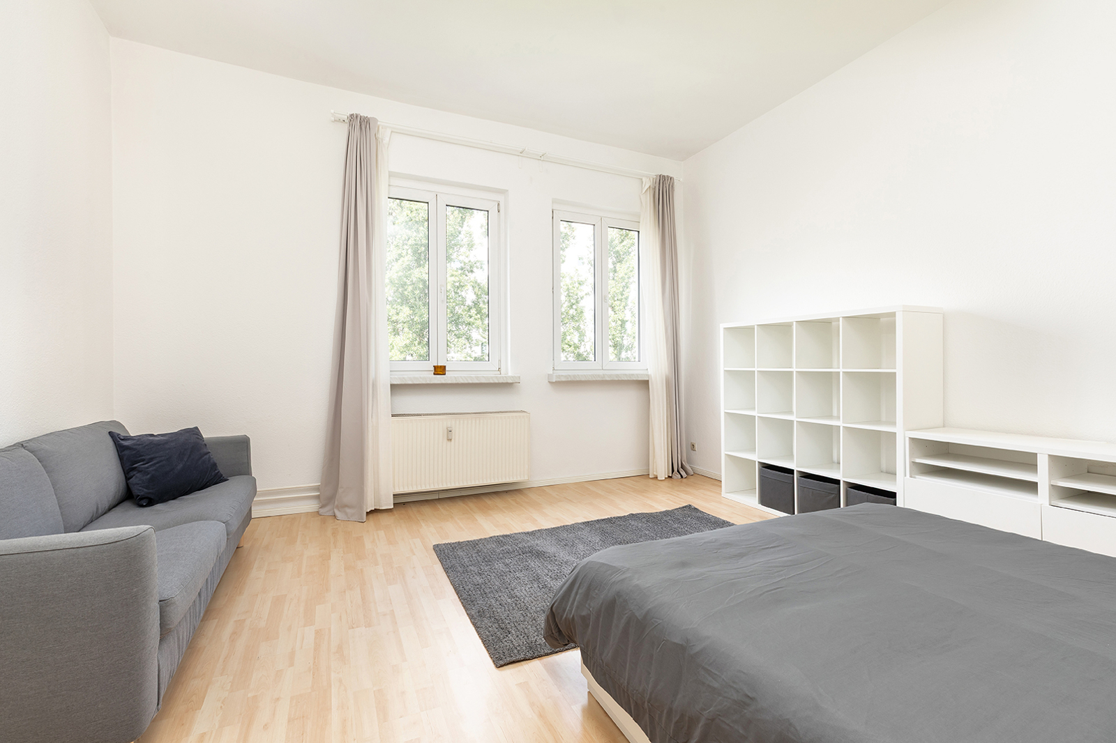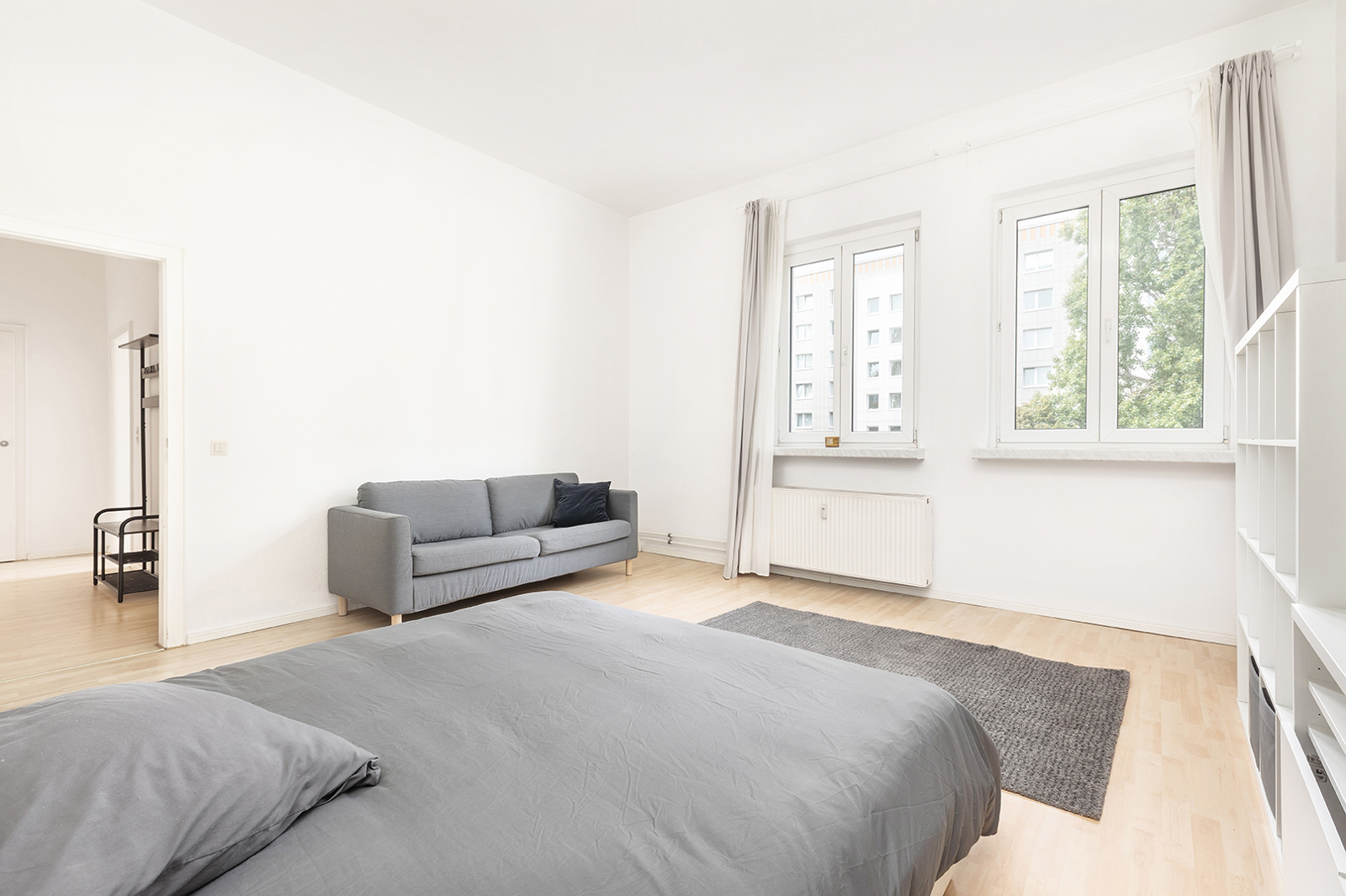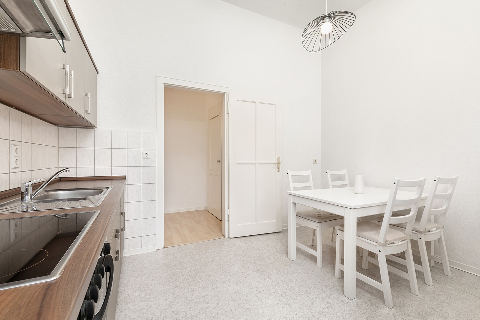 Friedrichshain, zwischen Strausberger Platz und Ostbahnhof - Sehr gut geschnittene Altbau-Wohnung in historischem Gebäude In einem der historischen Stalinbauten nahe der Karl-Marx-Allee verbindet sich die Architektur der 1950er Jahre mit ruhigem Wohnen mitten in Friedrichshain. Das Haus überzeugt mit klarer Fassadengliederung, hohen Decken, dicken Wänden und typischen Details wie Naturstein und einem gepflegten Treppenhaus – solide gebaut, mit Charakter. Die Wohnung im 4. Obergeschoss überzeugt schon beim Eintreten mit einem klaren, gut nutzbaren Schnitt: Vom Flur aus sind Küche, Bad und das großzügige Wohn- und Schlafzimmer direkt zugänglich. Letzteres bietet viel Raum zur Entfaltung – hohe Decken und zwei große Fenster sorgen für eine angenehme, ruhige Wohnatmosphäre. In der Küche ist Platz für eine Einbauküche und einen Tisch mit bis zu vier Sitzplätzen, direkt daneben liegt ein großer Hauswirtschaftsraum – praktisch und selten. Das Tageslichtbad mit Fenster und Badewanne fügt sich stimmig in den funktionalen Grundriss. Alle Räume blicken ins Grüne: durch die Baumkronen fällt weiches Licht, das die Wohnung ruhig und freundlich wirken lässt. Die Wohnung befindet sich in einem gepflegten Zustand – ist bezugsfrei nach Absprache somit steht einer schnellen Neuvermietung oder dem direkten Einzug nichts im Weg.