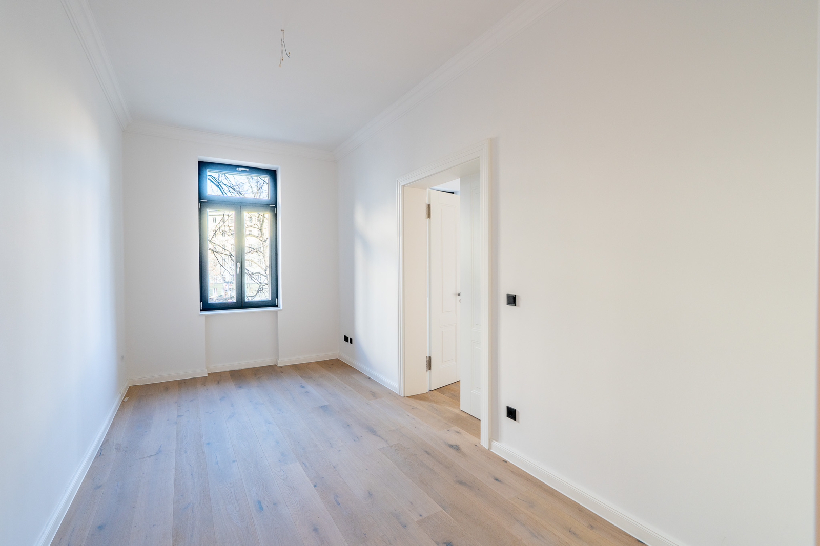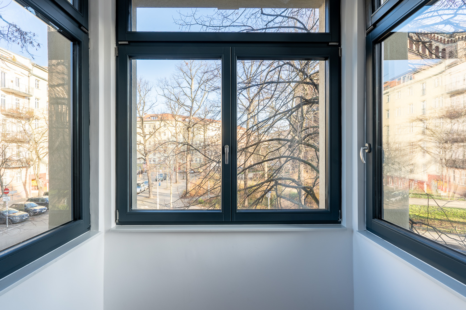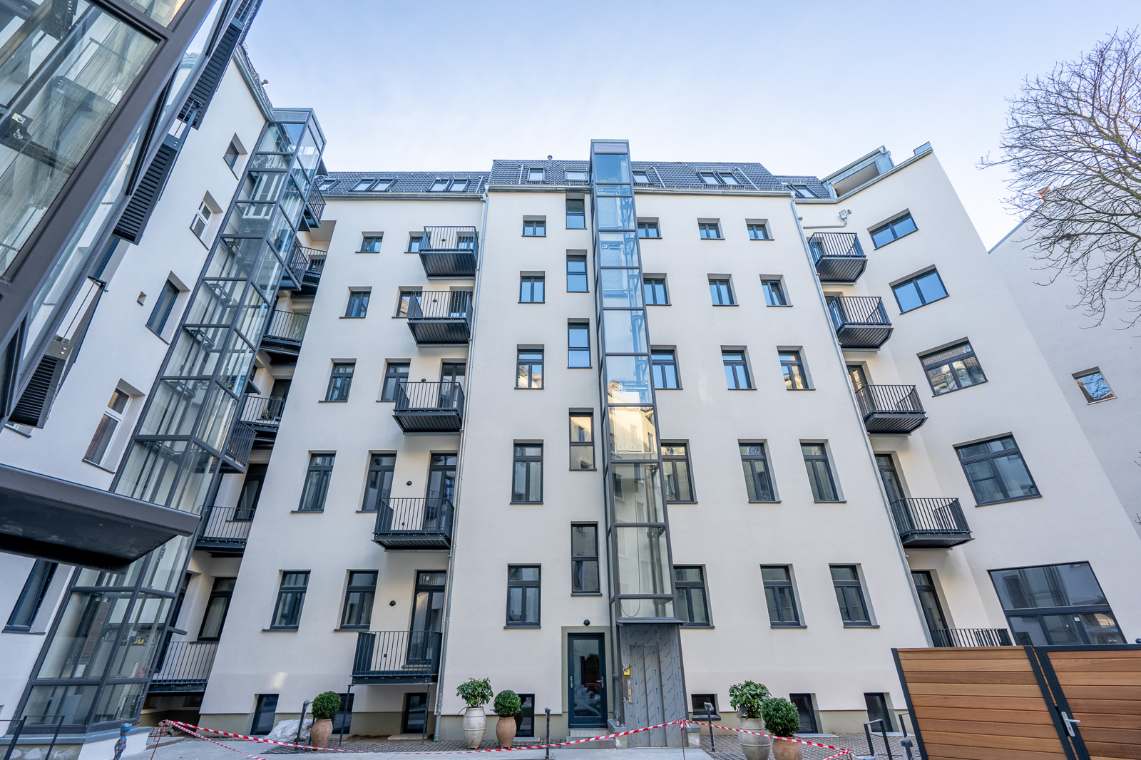 Projektvertrieb - Blick auf die Zionskirche: 4 Zimmer, Balkon, Aufzug, Erstbezug nach Sanierung Vorbemerkung: In dem Gebäude stehen weitere Einheiten mit Wohnflächen von ca. 48 m² bis 324 m² und 1 bis 6 Zimmern im gleichen Ausstattungsstandard zum Verkauf. Sprechen Sie uns hierzu gerne an. Der Jugendstil-Altbau direkt an der Zionskirche wurde in den vergangenen Jahren umfassend modernisiert und saniert. Im Zuge der Arbeiten wurden unter anderem die Fassade energetisch ertüchtigt, Fahrstuhlanlagen ergänzt, neue energieeffiziente Sprossenfenster eingebaut, die Treppenhäuser neugestaltet sowie Balkone angebaut. Darüber hinaus wurde der Innenhof neu angelegt, das Dachgeschoss zu Wohnzwecken ausgebaut und die Steigleitungen erneuert. Im Rahmen dieser Maßnahmen wurden zahlreiche Wohnungen ebenfalls umfassend saniert und auf einen hochwertigen Ausstattungsstandard gebracht. Dabei wurde durchgehend auf eine sorgfältige Materialauswahl und eine stimmige Ausführung geachtet. Einzelne Einheiten wurden bewusst im bestehenden Zustand belassen und bieten somit weiterhin Möglichkeiten zur individuellen Gestaltung. Bei der hier angebotenen Wohnung handelt es sich um eine großzügige 4-Zimmer-Wohnung im 2. OG des Vorderhauses mit ca. 131 m² Wohnfläche. Die Wohnung verbindet eine klare, zeitgemäße Gestaltung mit einem gut durchdachten Grundriss und profitiert insbesondere von ihrer offenen Ausrichtung sowie dem direkten Blick auf die Zionskirche. Der Wohnbereich bildet das Zentrum der Wohnung und wird durch einen charakteristischen Erker ergänzt, der dem Raum zusätzliche Tiefe verleiht und für eine angenehme Belichtung sorgt. Die besondere Raumstruktur schafft eine offene, zugleich wohnliche Atmosphäre und bietet vielfältige Möglichkeiten zur individuellen Möblierung. Die Wohnung verfügt über drei gut geschnittene Schlafzimmer, die sowohl familiengerechtes Wohnen als auch die Kombination aus Wohnen und Arbeiten ermöglichen. Die Räume sind sinnvoll voneinander getrennt und bieten sowohl gemeinschaftliche Bereiche als auch ausreichende Rückzugsmöglichkeiten. Die separate Küche mit Zugang zum Balkon erweitert den Wohnraum nach außen und bietet einen ruhigen Bereich für den Alltag. Der Balkon eignet sich ideal für den Morgenkaffee oder kurze Pausen und fügt sich selbstverständlich in den Gesamtgrundriss ein. Das Hauptbadezimmer ist hochwertig gestaltet und verfügt über eine freistehende Badewanne sowie eine Regendusche. Ein zusätzliches, vollwertiges Gäste-Badezimmer ergänzt den Komfort der Wohnung und unterstreicht die Alltagstauglichkeit des Grundrisses. Ein Abstellraum innerhalb der Wohnung sowie ein zugeordnetes Kellerabteil bieten zusätzlichen Stauraum.