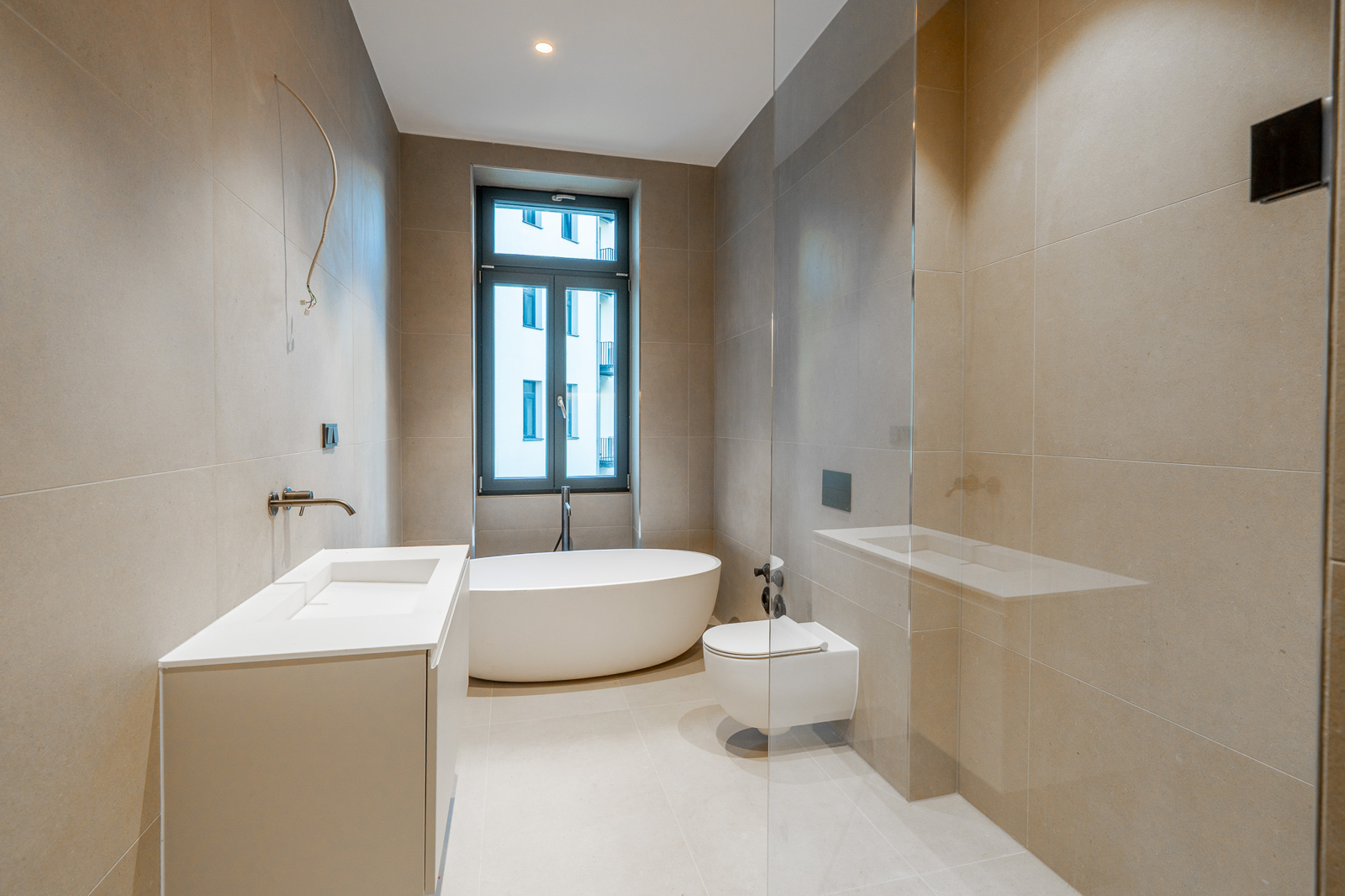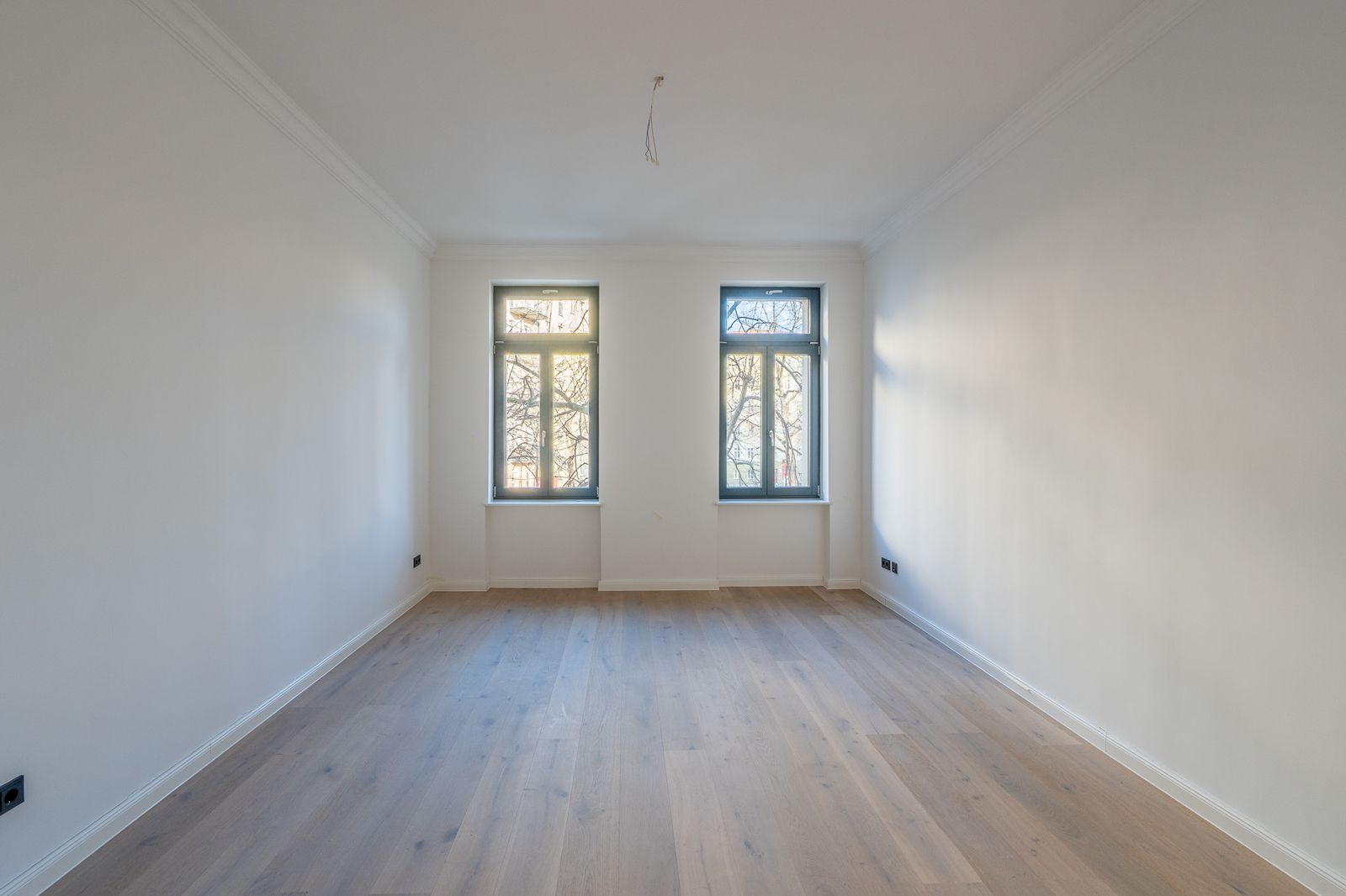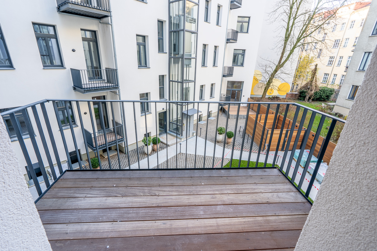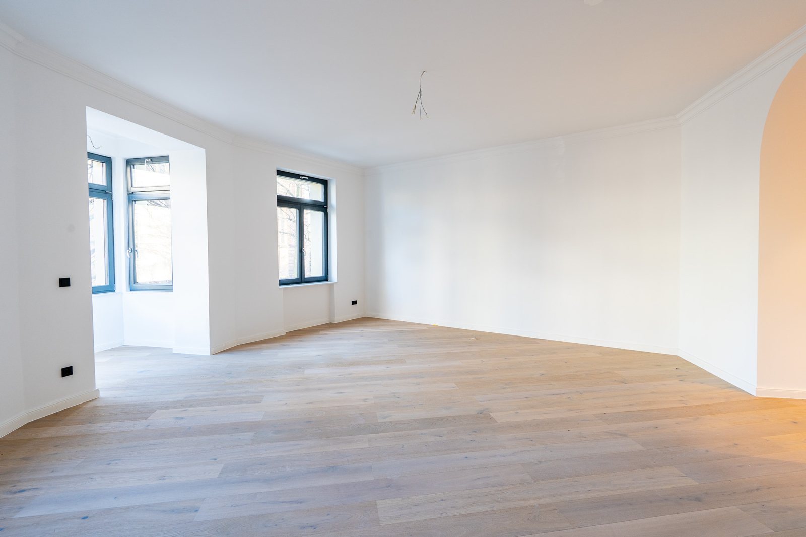 Projektvertrieb - Blick auf die Zionskirche: 4 Zimmer, Balkon, Aufzug, Erstbezug nach Sanierung Vorbemerkung: In dem Gebäude stehen weitere Einheiten mit Wohnflächen von ca. 48 m² bis 324 m² und 1 bis 6 Zimmern im gleichen Ausstattungsstandard zum Verkauf. Sprechen Sie uns hierzu gerne an. Der Jugendstil-Altbau direkt an der Zionskirche wurde in den vergangenen Jahren umfassend modernisiert und saniert. Im Zuge der Arbeiten wurden unter anderem die Fassade energetisch ertüchtigt, Fahrstuhlanlagen ergänzt, neue energieeffiziente Sprossenfenster eingebaut, die Treppenhäuser neugestaltet sowie Balkone angebaut. Darüber hinaus wurde der Innenhof neu angelegt, das Dachgeschoss zu Wohnzwecken ausgebaut und die Steigleitungen erneuert. Im Rahmen dieser Maßnahmen wurden zahlreiche Wohnungen ebenfalls umfassend saniert und auf einen hochwertigen Ausstattungsstandard gebracht. Dabei wurde durchgehend auf eine sorgfältige Materialauswahl und eine stimmige Ausführung geachtet. Einzelne Einheiten wurden bewusst im bestehenden Zustand belassen und bieten somit weiterhin Möglichkeiten zur individuellen Gestaltung. Bei der hier angebotenen Wohnung handelt es sich um eine großzügige 4-Zimmer-Wohnung im 2. OG des Vorderhauses mit ca. 131 m² Wohnfläche. Die Wohnung verbindet eine klare, zeitgemäße Gestaltung mit einem gut durchdachten Grundriss und profitiert insbesondere von ihrer offenen Ausrichtung sowie dem direkten Blick auf die Zionskirche. Der Wohnbereich bildet das Zentrum der Wohnung und wird durch einen charakteristischen Erker ergänzt, der dem Raum zusätzliche Tiefe verleiht und für eine angenehme Belichtung sorgt. Die besondere Raumstruktur schafft eine offene, zugleich wohnliche Atmosphäre und bietet vielfältige Möglichkeiten zur individuellen Möblierung. Die Wohnung verfügt über drei gut geschnittene Schlafzimmer, die sowohl familiengerechtes Wohnen als auch die Kombination aus Wohnen und Arbeiten ermöglichen. Die Räume sind sinnvoll voneinander getrennt und bieten sowohl gemeinschaftliche Bereiche als auch ausreichende Rückzugsmöglichkeiten. Die separate Küche mit Zugang zum Balkon erweitert den Wohnraum nach außen und bietet einen ruhigen Bereich für den Alltag. Der Balkon eignet sich ideal für den Morgenkaffee oder kurze Pausen und fügt sich selbstverständlich in den Gesamtgrundriss ein. Das Hauptbadezimmer ist hochwertig gestaltet und verfügt über eine freistehende Badewanne sowie eine Regendusche. Ein zusätzliches, vollwertiges Gäste-Badezimmer ergänzt den Komfort der Wohnung und unterstreicht die Alltagstauglichkeit des Grundrisses. Ein Abstellraum innerhalb der Wohnung sowie ein zugeordnetes Kellerabteil bieten zusätzlichen Stauraum.