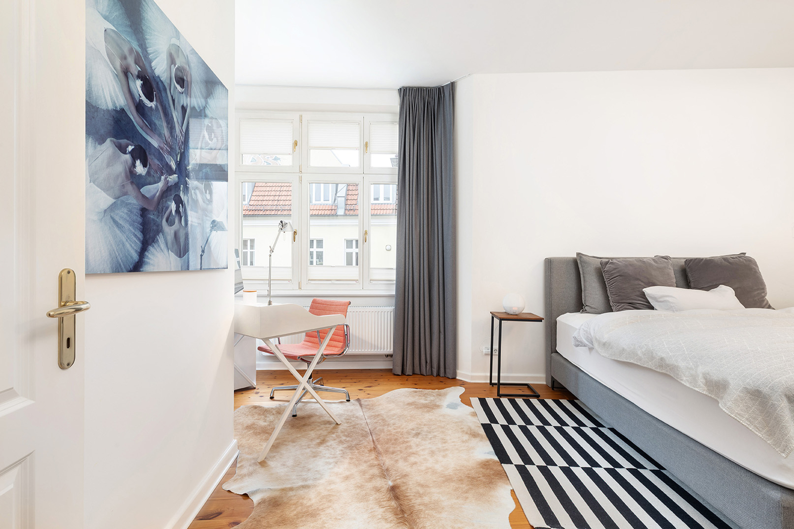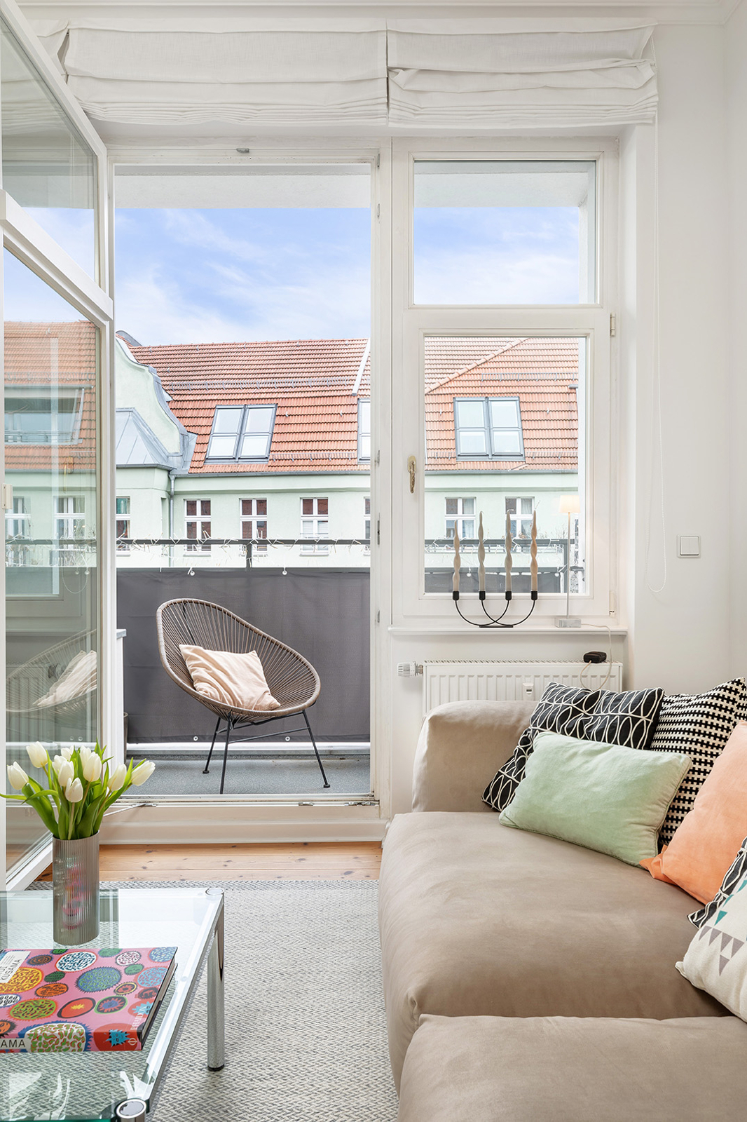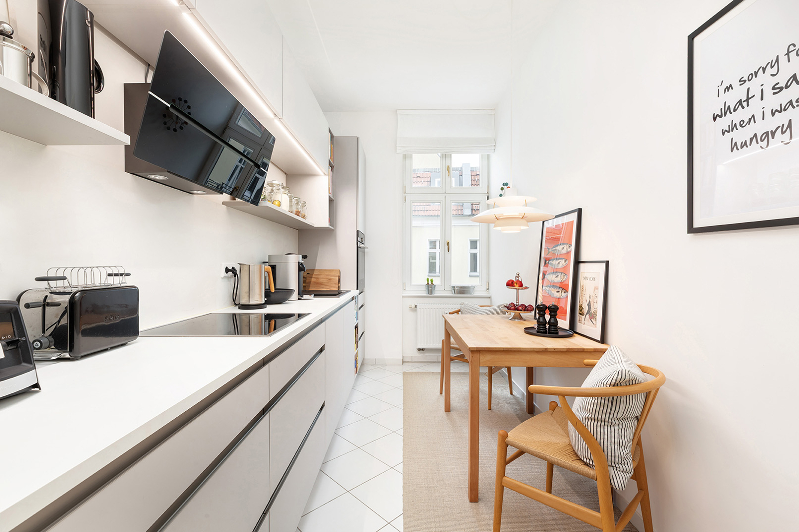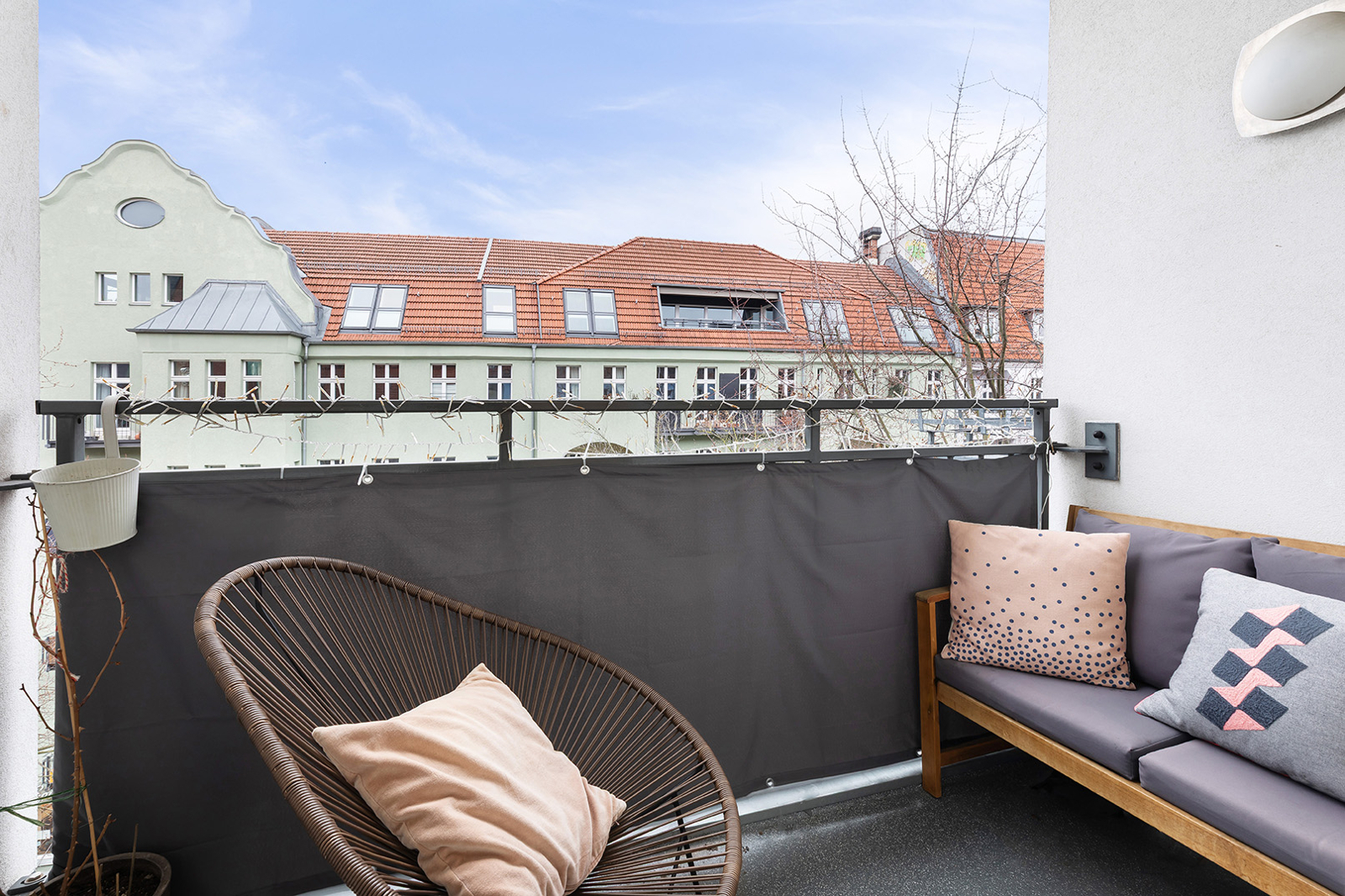 Helmholtzkiez: 2-Zimmer-Altbau im 4. OG, Aufzug, West-Balkon, hochwertige Einbauküche, Tageslichtbad Der Altbau setzt mit seiner hellblauen Fassade einen herrlichen Farbakzent in die mit Bäumen besäumte Senefelder Straße. Das Gebäude wurde um 2003 weitreichend saniert. So wurden u.a. die Steigleitungen und Hauselektrik erneuert, Holzisolierglasfenster verbaut und das Dach zu Wohnzwecken ausgebaut. Insgesamt 31 Wohneinheiten und eine Gewerbeeinheit verteilen sich auf Vorder- und Hinterhaus sowie zwei Seitenflügeln. Das Haus ist voll unterkellert. Die hier Wohnung befindet sich im nach Westen ausgerichteten Vorderhaus und ist über einen Personenaufzug und ein gepflegtes Treppenhaus erschlossen. Auf ca. 75 qm befinden sich zwei geräumige Zimmer, eine separate Küche, ein geräumiges Tageslichtbad sowie der nach Westen ausgerichtete Loggia-Balkon. Vom Eingangsbereich geht links direkt die Küche mit Platz für einen kleinen Esstisch ab. Die vor ca. 4 Jahren eingebaute Nolte-Küche mit hochwertigen Geräten verbleibt in der Wohnung und ist im Kaufpreis inbegriffen. Neben der Küche befindet sich das geräumige Tageslichtbad mit Badewanne, Dusche, Toilette, Waschtisch und Waschmaschinenanschluss. Hier findet auch eine Wäschekommode oder Regal für Wäsche und Handtücher Platz. Die zeitlosen weißen Fliesen und die schwarzen Armaturen geben dem Bad einen eleganten Look. Vom zentralen Flur links abgehend und zum ruhigen Innenhof ausgerichtet befindet sich das große Schlafzimmer. Hier kommen sowohl Home Office als auch ein großer Kleiderschrank unter. Am Ende des Flurs öffnet sich das nach Westen ausgerichtete Wohnzimmer. Der Loggia-Balkon öffnet sind zur verkehrsberuhigten Senefelder Straße nach Westen. Durch die Überdachung des Balkons kann man hier auch schon im Frühling und bis in den späten Herbst gemütlich in der Sonne lesen oder einen Kaffee mit Freunden genießen. In allen Wohnräumen sind Weichholz-Dielen verlegt. Die Wände sind verspachtelt und gestrichen. Die Gas-Zentralheizung wurde erst 2024 ausgetauscht und generell wird das Haus laufend Instand gehalten und präsentiert sich in einem sehr gutem Zustand. Zusätzlich gibt es einen abgeschlossenen Müllraum im Erdgeschoss, sowie Abstellmöglichkeiten für Fahrräder. Der Wohnung ist ein trockenes Kellerabteil zugeteilt. Die Wohnung ist kurzfristig nach Absprache frei.