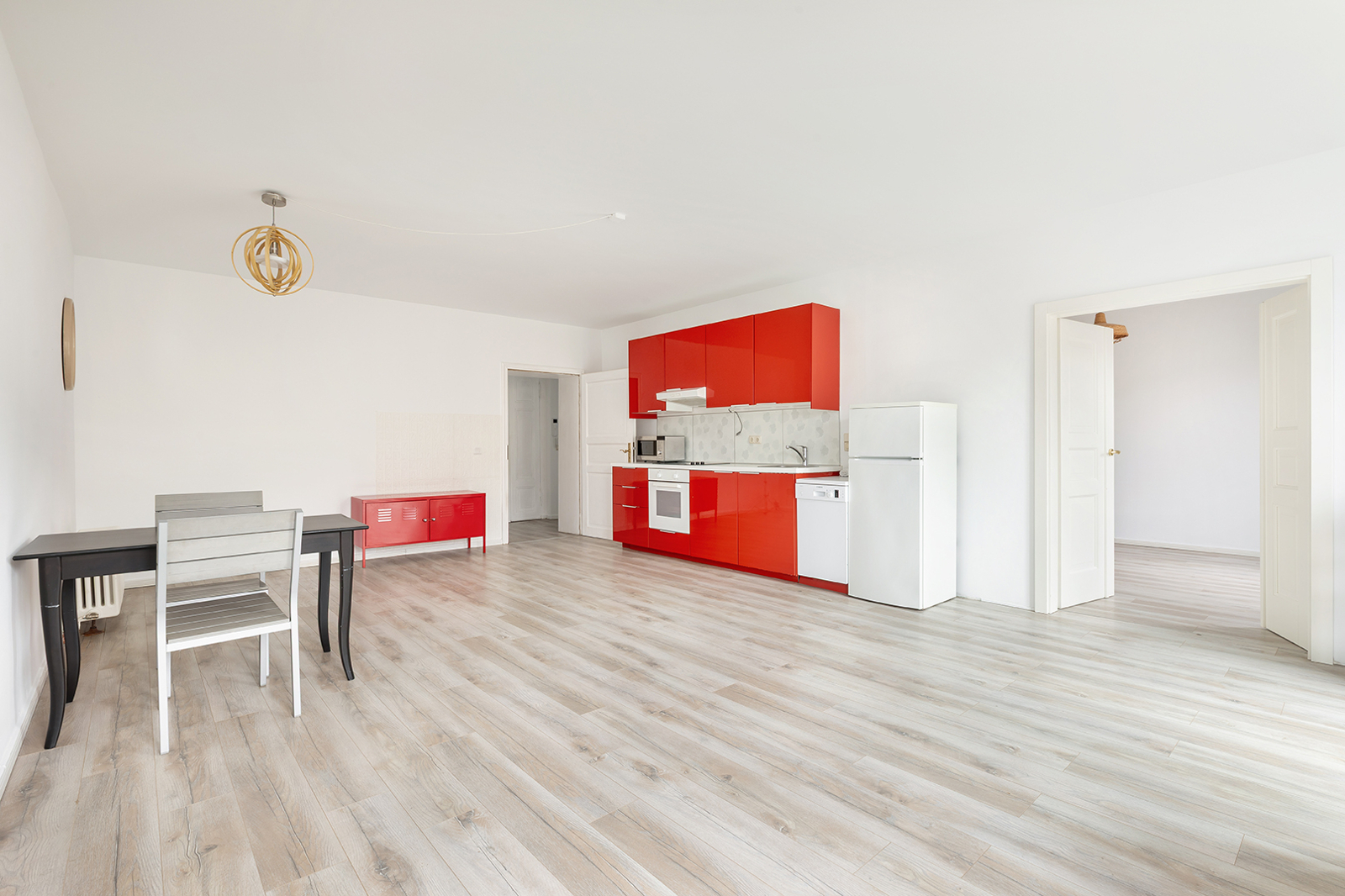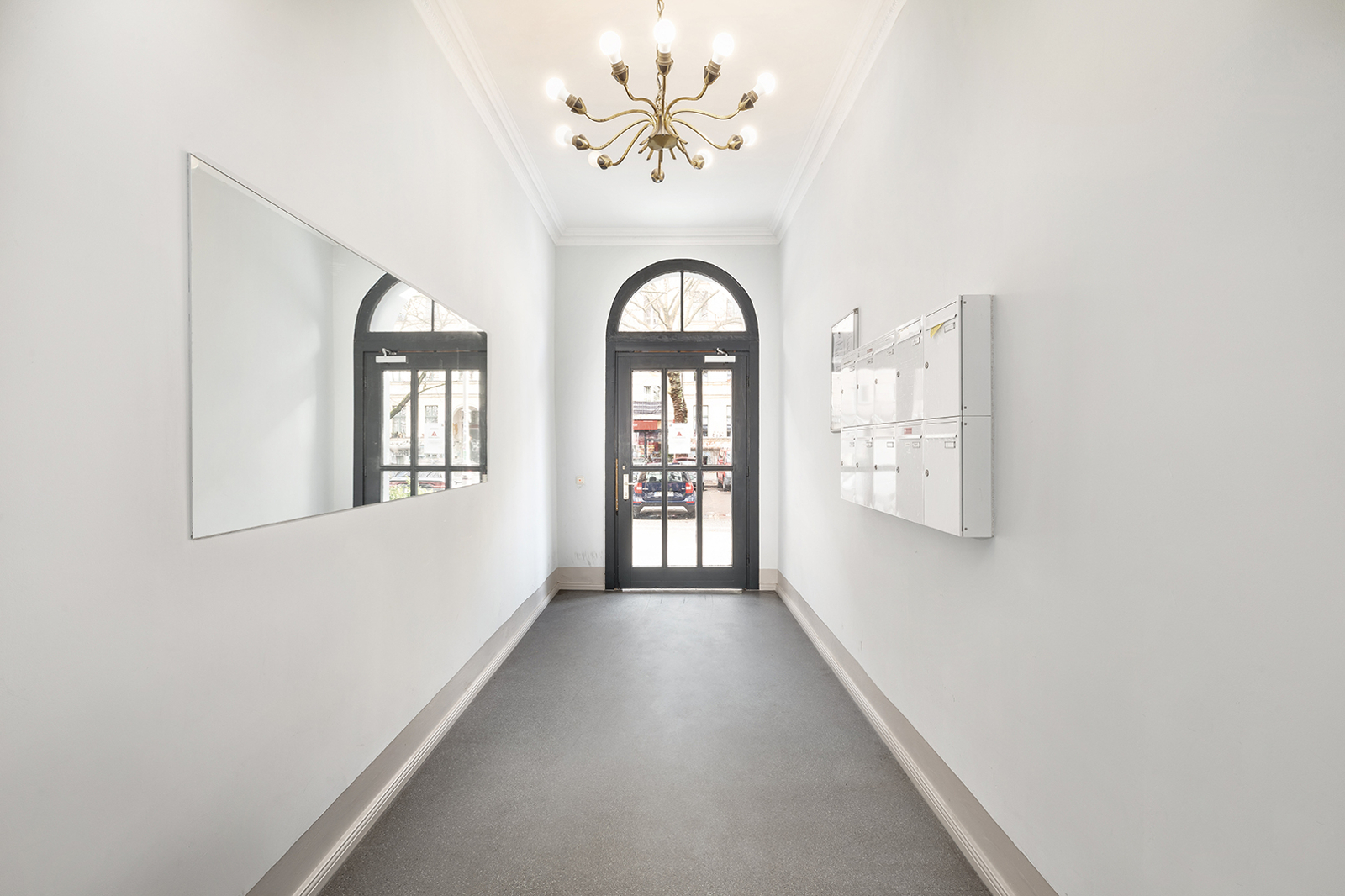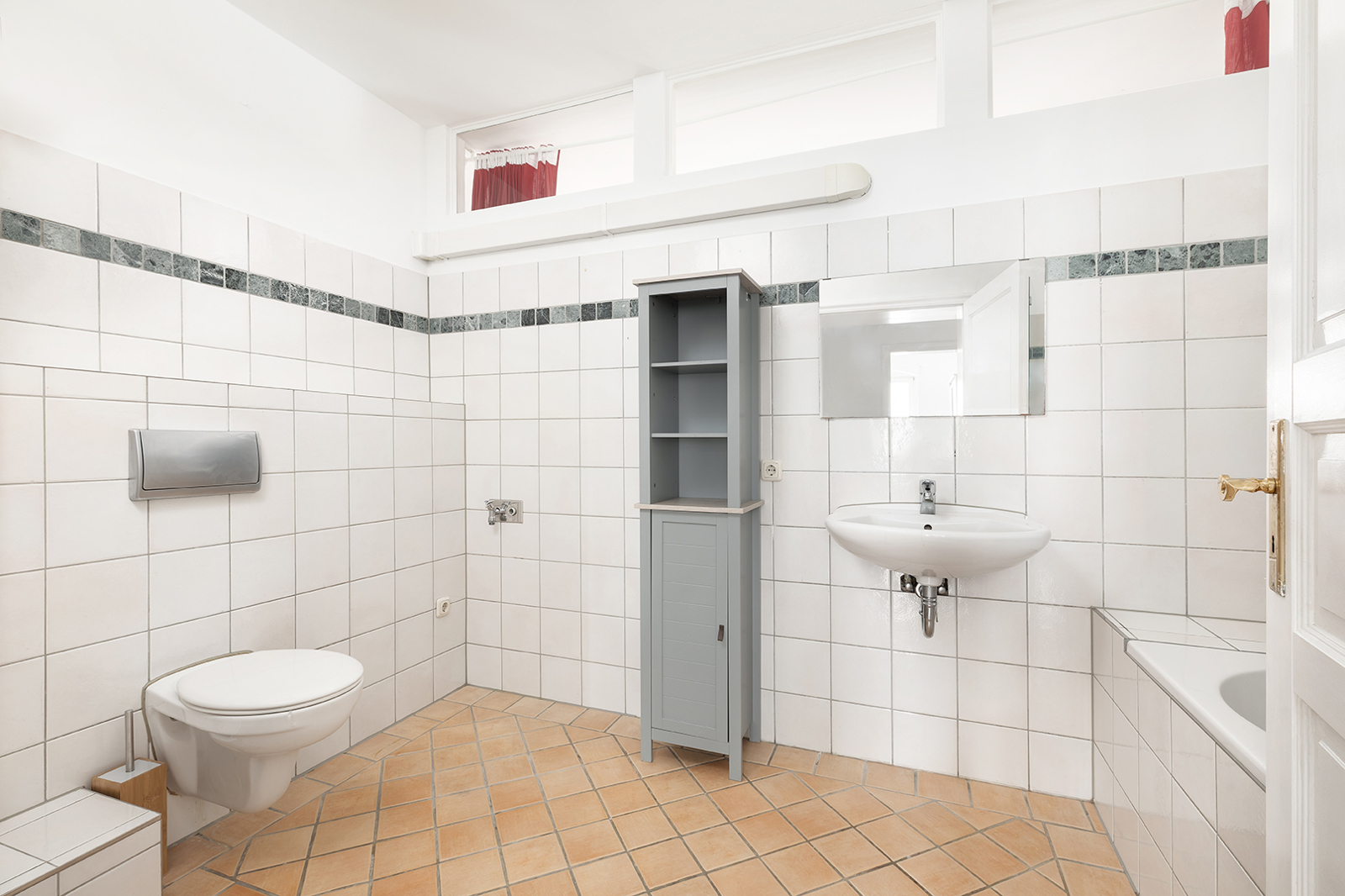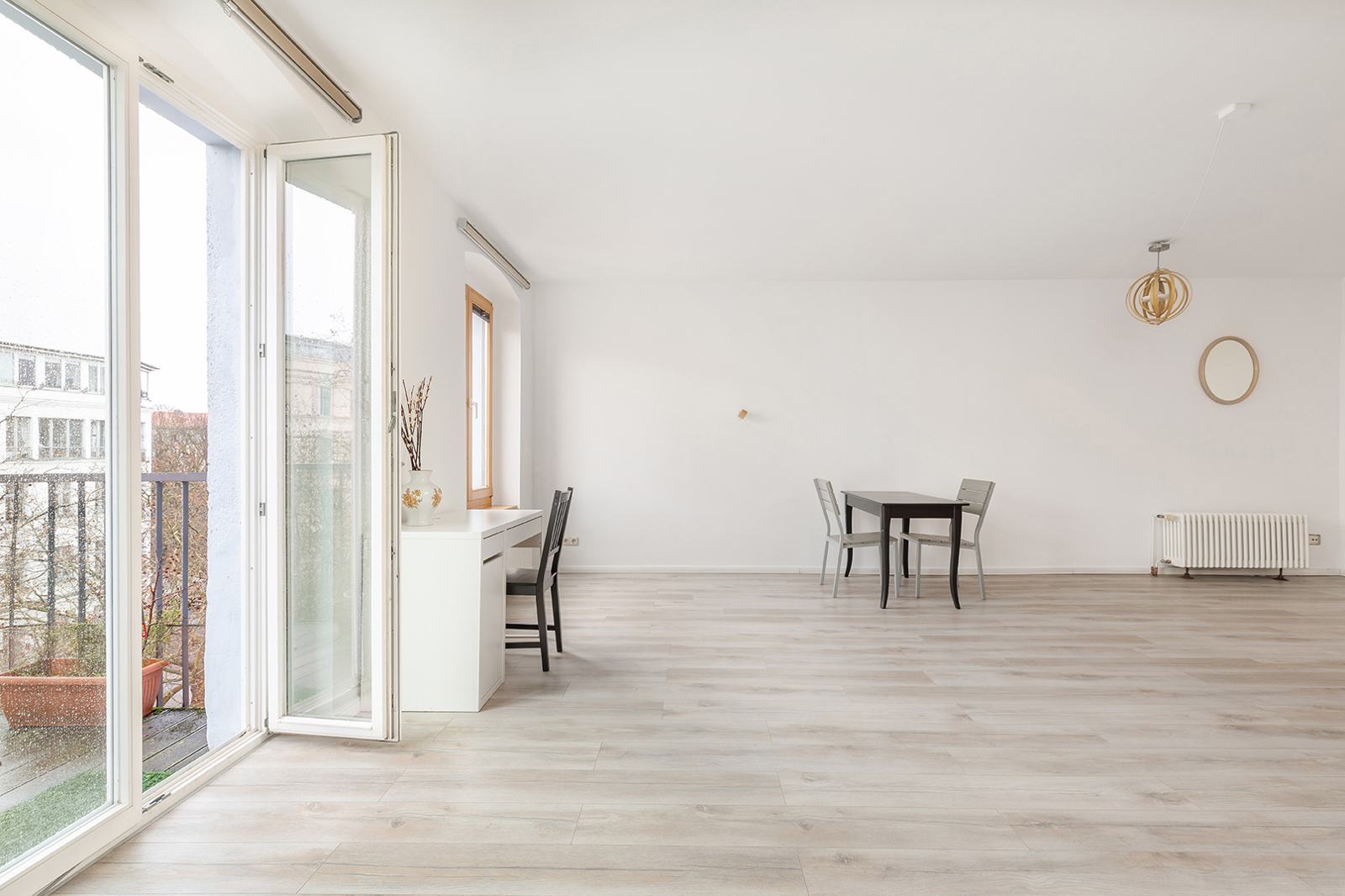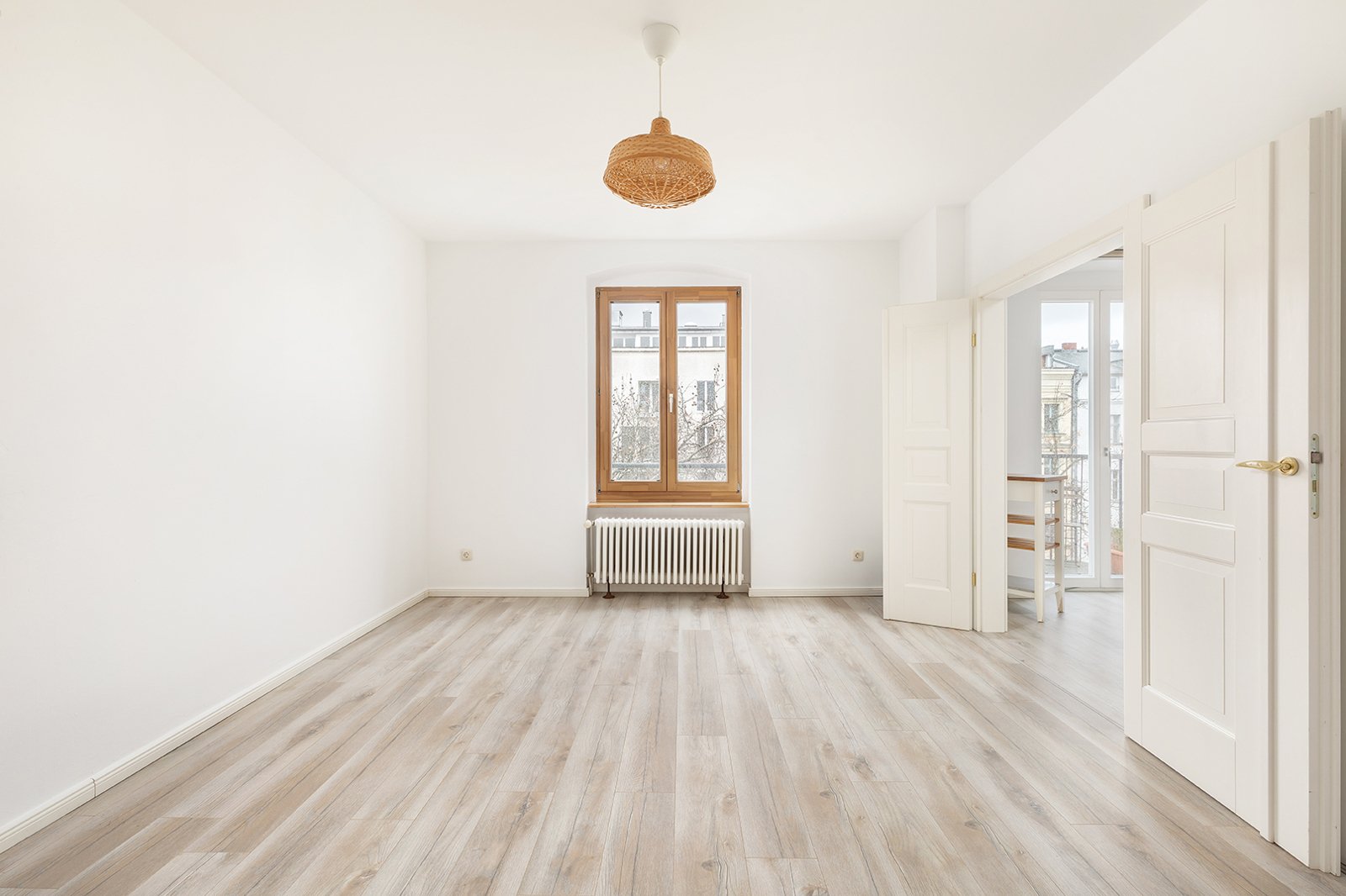 Kollwitzstraße / Knaackstraße: 3-Zimmer Altbauwohnung mit West-Balkon und fantastischem Ausblick Diese charmante 3-Zimmer-Altbauwohnung befindet sich in absoluter Toplage von Prenzlauer Berg – direkt an der Ecke Kollwitzstraße / Knaackstraße, nur wenige Schritte vom Kollwitzplatz entfernt. Bei dem schönen Jugendstil-Eckgebäude wurde um 2014 Balkone angebaut sowie das Dachgeschoss zu Wohnzwecken ausgebaut. Über das gepflegte Treppenhaus gelangen Sie in das 4. Obergeschoss zu der hier angebotenen Wohnung. Herzstück der Wohnung ist die großzügige, ca. 35 m² große Wohnküche mit direktem Zugang zum West-Balkon. Vom Balkon aus eröffnet sich ein fantastischer Blick in die Straßenschlucht von Knaackstraße und Kollwitzstraße sowie in Richtung Kollwitzplatz. Der Balkon bietet ausreichend Platz für zwei Stühle und einen kleinen Tisch – ideal für einen Kaffee in der Nachmittagssonne. Die offene Wohnküche bietet ausreichend Platz für einen großen Esstisch sowie einen komfortablen Wohnbereich. Die funktionale Einbauküche ist bereits im Kaufpreis enthalten. Vom Wohnzimmer aus gelangen Sie in das erste der beiden Schlafzimmer. Mit ca. 17 m² überzeugt es durch Großzügigkeit und bietet komfortabel Platz für Bett, Kleiderschrank sowie optional einen Schreibtisch. Das zweite Schlafzimmer befindet sich am Eingangsbereich der Wohnung mit Blick in den ruhigen Innenhof. Mit ca. 16 m² ist auch dieser Raum sehr gut geschnitten und flexibel nutzbar – ob als weiteres Schlafzimmer, Kinderzimmer oder Homeoffice. Das geflieste Badezimmer ist funktional ausgestattet mit Duschwanne, WC und Waschbecken. Abgerundet wird das Raumangebot durch eine praktische Abstellkammer am Ende des Flures. In den Wohn- und Schlafräumen ist Laminat verlegt. Zur Wohnung gehört ein Keller.