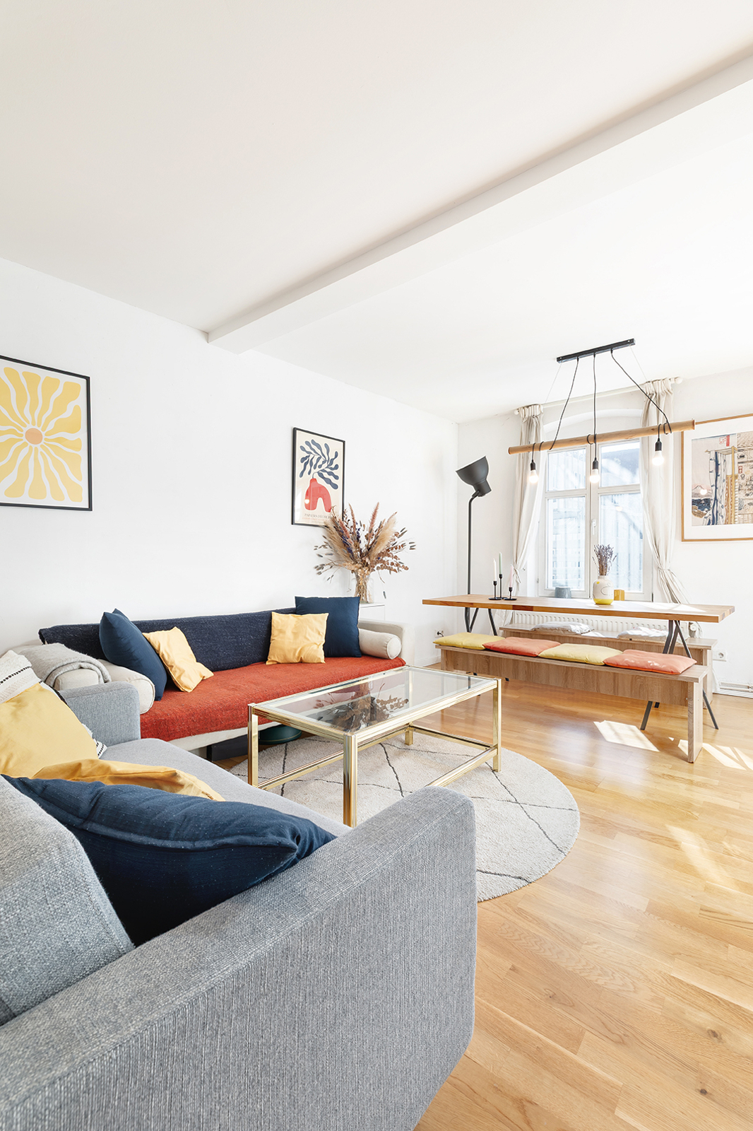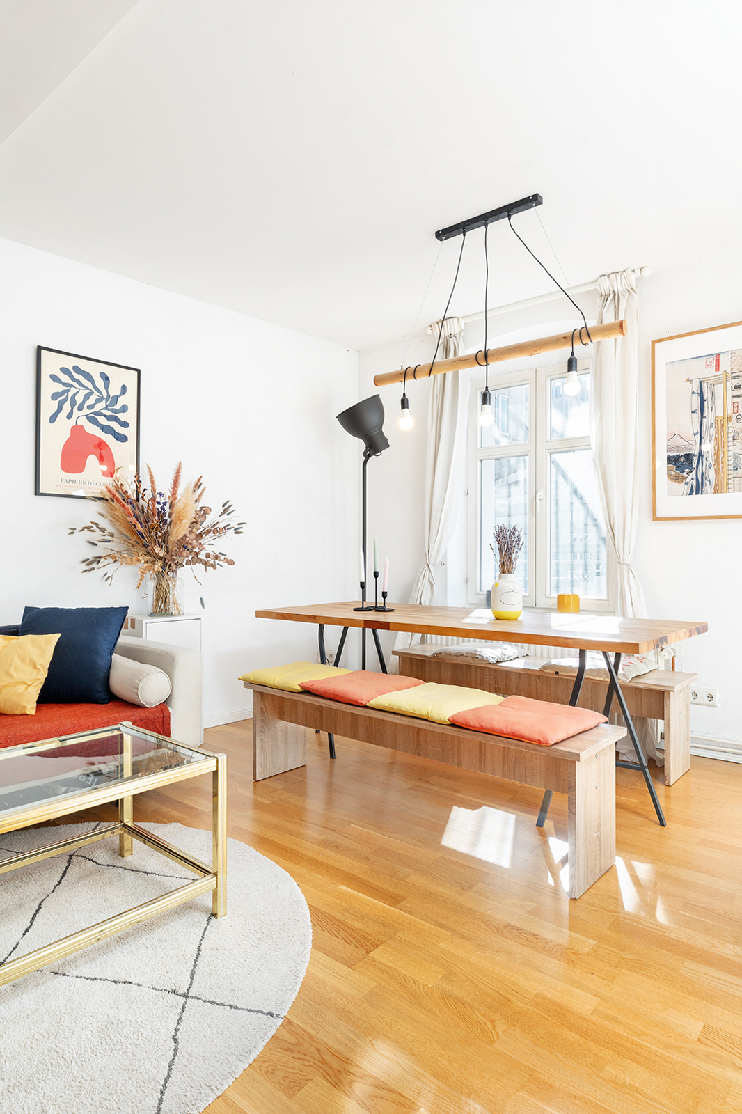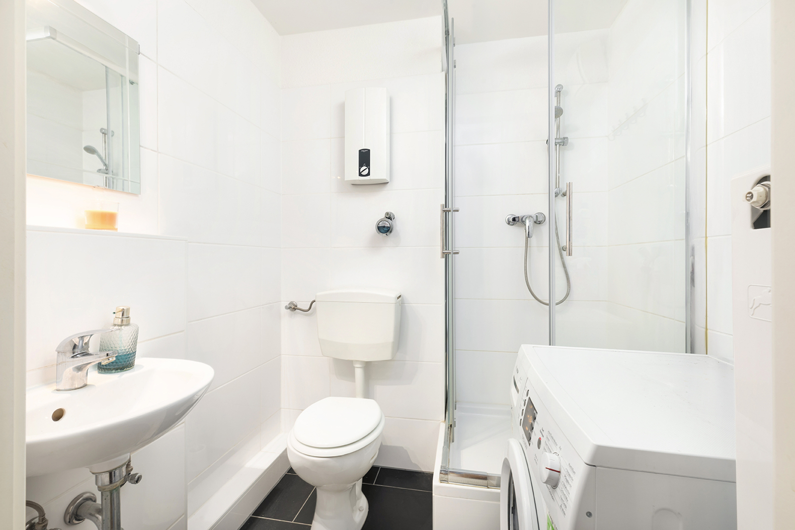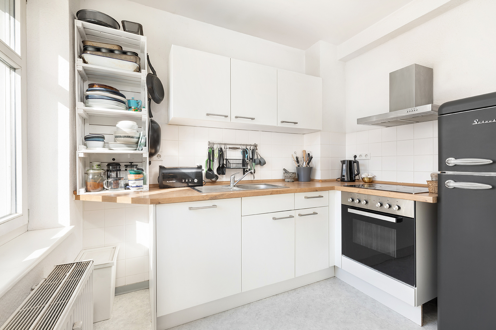 Torstraße, Mitte: Lichtdurchflutete 3 Zimmer DG-Maisonette im Gartenhaus, Süd-Terrasse, Effizienz B Das Gebäudeensemble wurde um die Jahrtausendwende umfassend saniert und präsentiert sich heute in einem gepflegten Zustand. Vor wenigen Jahren wurden zudem die Treppenhäuser renoviert, die Fassaden neu gestrichen und die Innenhöfe neu gestaltet. Insgesamt verfügt die Anlage über zwei begrünte Innenhöfe, die eine ruhige und angenehme Wohnatmosphäre mitten in Berlin schaffen. Ein zusätzlicher Pluspunkt ist die Energieeffizienzklasse B, die für ein Gebäude dieser Bauzeit einen sehr guten energetischen Standard darstellt. Die hier angebotene 3-Zimmer-Maisonette-Wohnung erstreckt sich über das 4. OG und Dachgeschoss des Gartenhauses. Auf rund 72 m² Wohnfläche überzeugt die Wohnung mit einer attraktiven und gut nutzbaren Raumaufteilung. Herzstück der unteren Ebene ist das großzügige Wohnzimmer mit offener Treppe zur oberen Ebene. Große Fensterflächen und die Südausrichtung sorgen für viel Tageslicht und eine helle, freundliche Wohnatmosphäre. Vom Wohnbereich aus gelangt man auf den sonnigen Südbalkon mit Blick in den ruhigen Innenhof – von hier lässt sich sogar die Spitze des Berliner Fernsehturms erkennen. Ebenfalls auf dieser Ebene befinden sich die separate, voll ausgestattete Küche sowie ein vollwertiges Badezimmer mit Dusche. Die Einbauküche ist im Kaufpreis enthalten. Über eine elegante Wendeltreppe erreicht man das Dachgeschoss der Maisonette. Hier befinden sich zwei gut geschnittene Schlafzimmer sowie ein weiteres Badezimmer mit Badewanne. Große Fensterflächen sorgen auch auf dieser Ebene für eine helle und angenehme Wohnatmosphäre. In der gesamten Wohnung ist Echtholzparkett verlegt. Zur Wohnung gehört kein Keller.