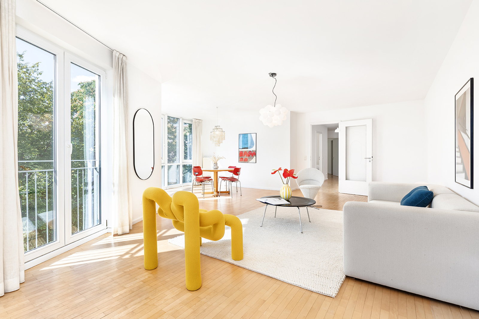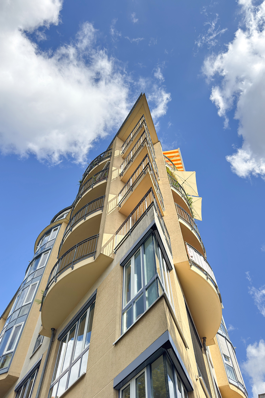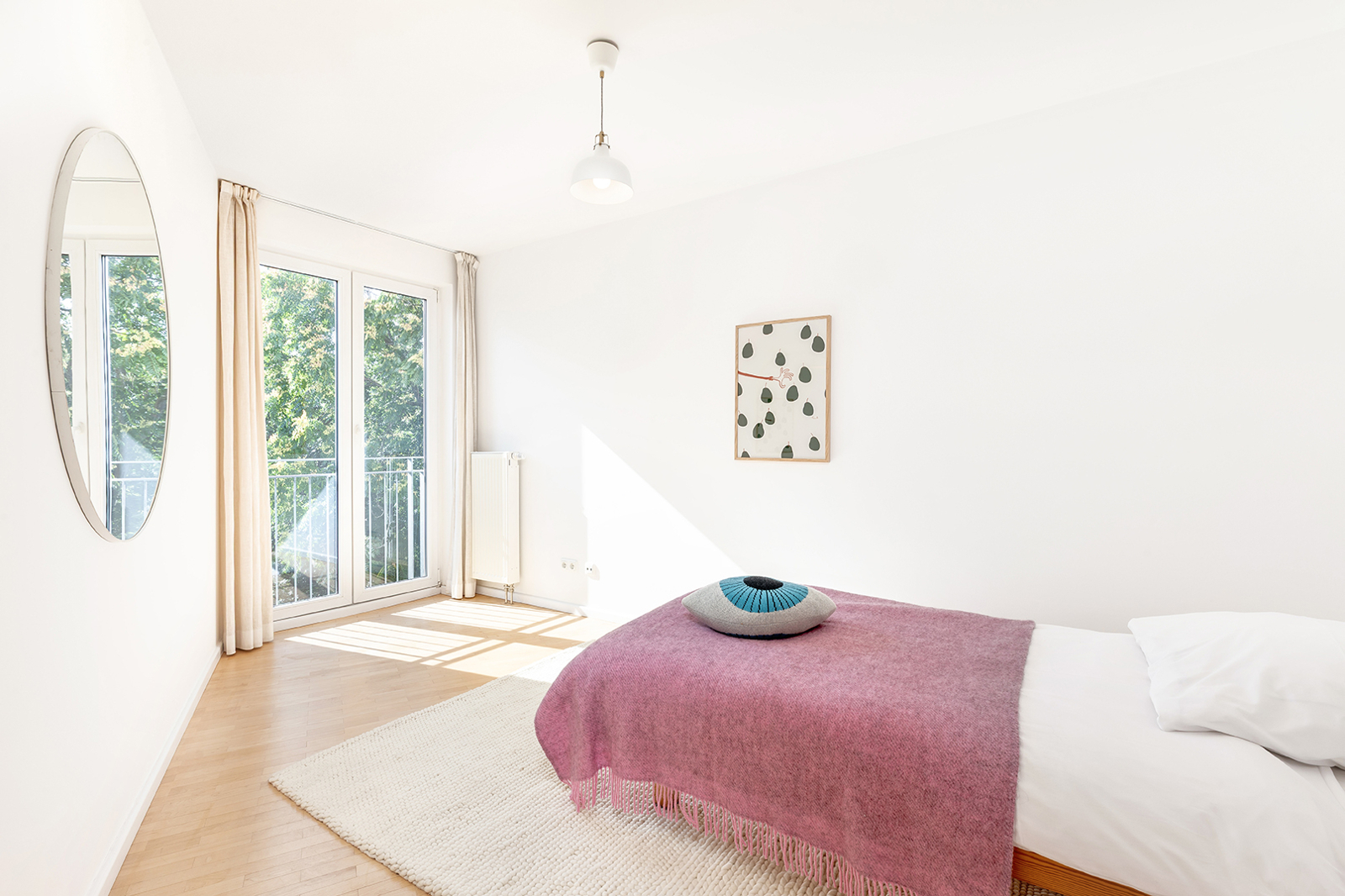 Veteranenstraße mit Blick auf den Weinbergspark: 3-4 Zimmerneubauwohnung mit Süd-West Loggia, Fahrstuhl, TG-Stellplatz, 2 Bäder Diese stilvolle, großzügig geschnittene Wohnung liegt im 2. Obergeschoss eines gepflegten Wohnensembles aus dem Jahr 1997 – ruhig gelegen im Seitenflügel und mit freiem, unverbaubarem Blick über den grünen Weinbergspark. Das Gebäude befindet sich am südwestlichen Ende des Parks und thront in erhöhter Position über der Umgebung. Dank dieser einzigartigen Lage genießen Sie nicht nur viel Ruhe, sondern auch ein außergewöhnliches Panorama – inklusive Seerosenteich. Die Wohnung erstreckt sich über ca. 103 m² Wohnfläche und überzeugt durch einen durchdachten Grundriss sowie helle, freundliche Räume. Mittelpunkt ist das großzügige Wohn- und Esszimmer mit weitläufigen, bodentiefen Fensterflächen, die für ideale Lichtverhältnisse sorgen. Der Raum öffnet sich zur sonnigen Loggia mit West/Südwest-Ausrichtung – ein perfekter Ort, um den Tag bei einem Abendessen und einem Glas Wein mit Blick ins Grüne ausklingen zu lassen. Die separate Küche ist mit einer Einbauküche ausgestattet und bietet Gestaltungsspielraum für individuelle Anpassungen. Zwei gut geschnittene Schlafzimmer befinden sich im vorderen Teil der Wohnung – das größere davon verfügt über ein eigenes, innenliegendes En-Suite-Bad mit Badewanne. Ein weiteres Duschbad mit Waschmaschinenanschluss sowie ein praktischer Flur mit Platz für eine Garderobe ergänzen das Raumangebot. In allen Wohnräumen wurde helles Echtholzparkett verlegt, das der Wohnung eine warme und hochwertige Atmosphäre verleiht. Ein Personenaufzug bringt Sie bequem und stufenlos in die Etage. Zum Gemeinschaftseigentum gehört ein großzügiger, gepflegter Innenhof mit überdachten Fahrradstellplätzen – ein Pluspunkt für alle, die urban und dennoch entspannt wohnen möchten. Es besteht die Möglichkeit, die Küche ins Wohnzimmer zu legen und aus der jetzigen Küche ein zusätzliches Schlaf/Arbeits/Gästezimmer zu machen. Ein geräumiger Kellerraum ist der Wohnung zugeordnet. Zusätzlich kann ein Tiefgaragen-Stellplatz für 50.000 € erworben werden (Hausgeld: 15 €/Monat). Die Wohnung ist kurzfristig verfügbar und bietet eine seltene Gelegenheit, in einer der begehrtesten Lagen Berlins zu wohnen – ruhig, grün und dennoch mitten im pulsierenden Herzen von Mitte.