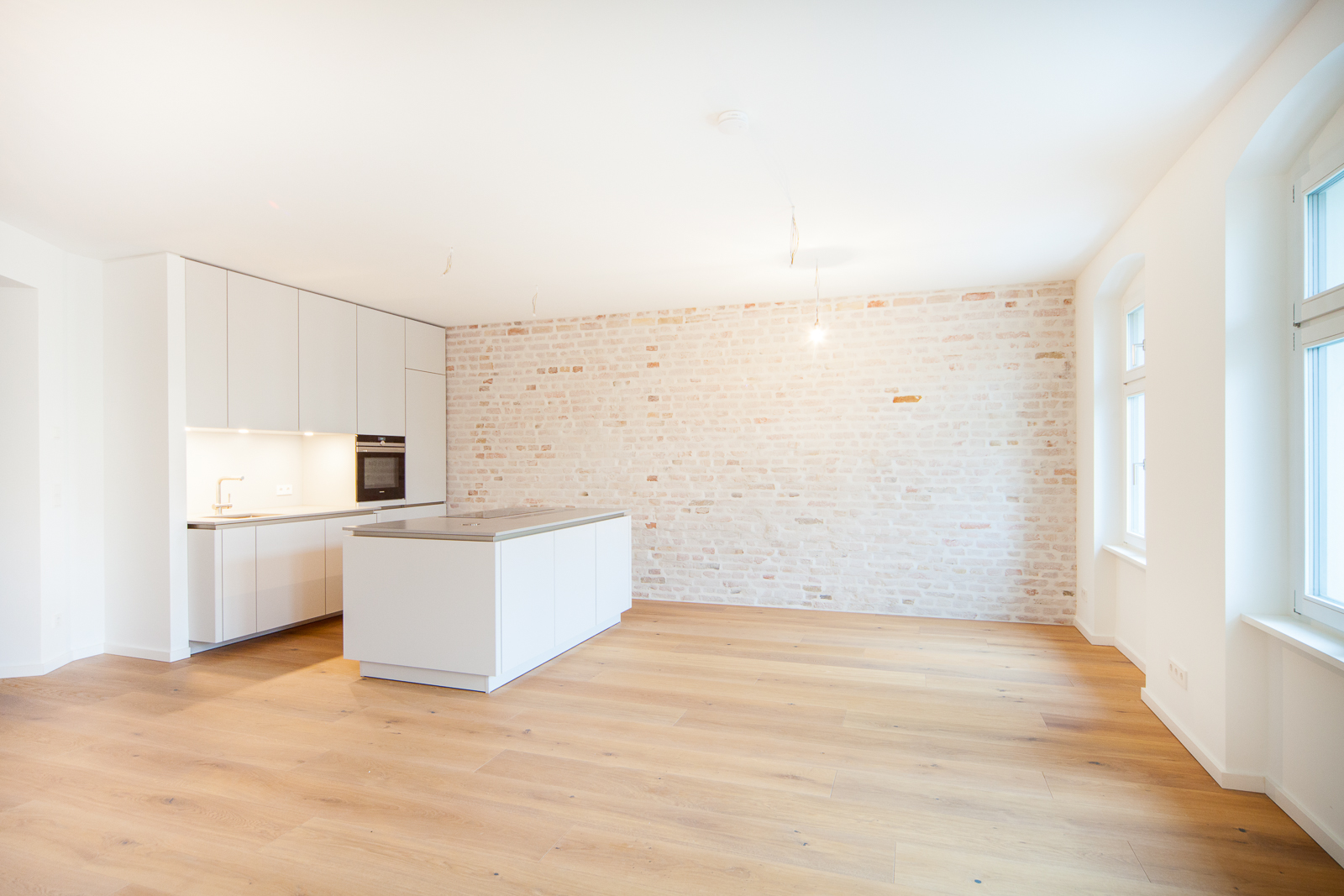 •In Handarbeit freigelegte und sanierte Backsteinsubstanz