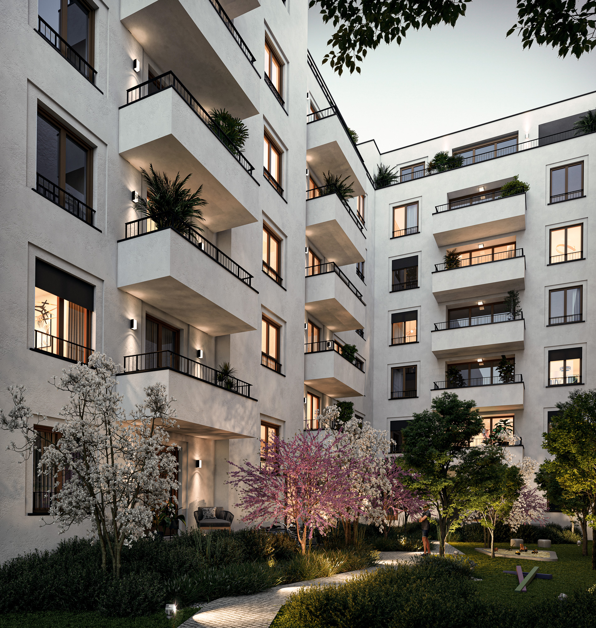 Der Entwurf dieses noblen Neubauprojektes durch die renommierten Architekten Brenner / Krohm ist inspiriert vom gründerzeitlich geprägten, städtischen Umfeld des Quartiers rund um den Savignyplatz. Zugleich wird mit WIELAND & PESTALOZZI die traditionsreiche Wohnkultur rund um den Kurfürstendamm fortgesetzt. Die Architektur dieses Stadthauses mit nur 33 Wohneinheiten wird hohen Ansprüchen gerecht, nimmt sich zugleich aber auch bewusst zurück. Entstanden ist ein Entwurf, der innen wie außen zeitlose Eleganz ausstrahlt. Dadurch fügt sich das Stadthaus in der Pestalozzistraße 97 sehr harmonisch in die historisch gewachsene Stadt- und Häuserstruktur des beliebten urbanen Viertels ein.