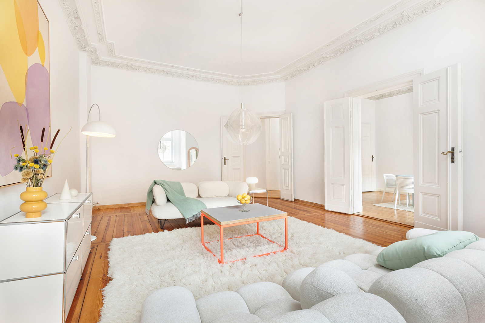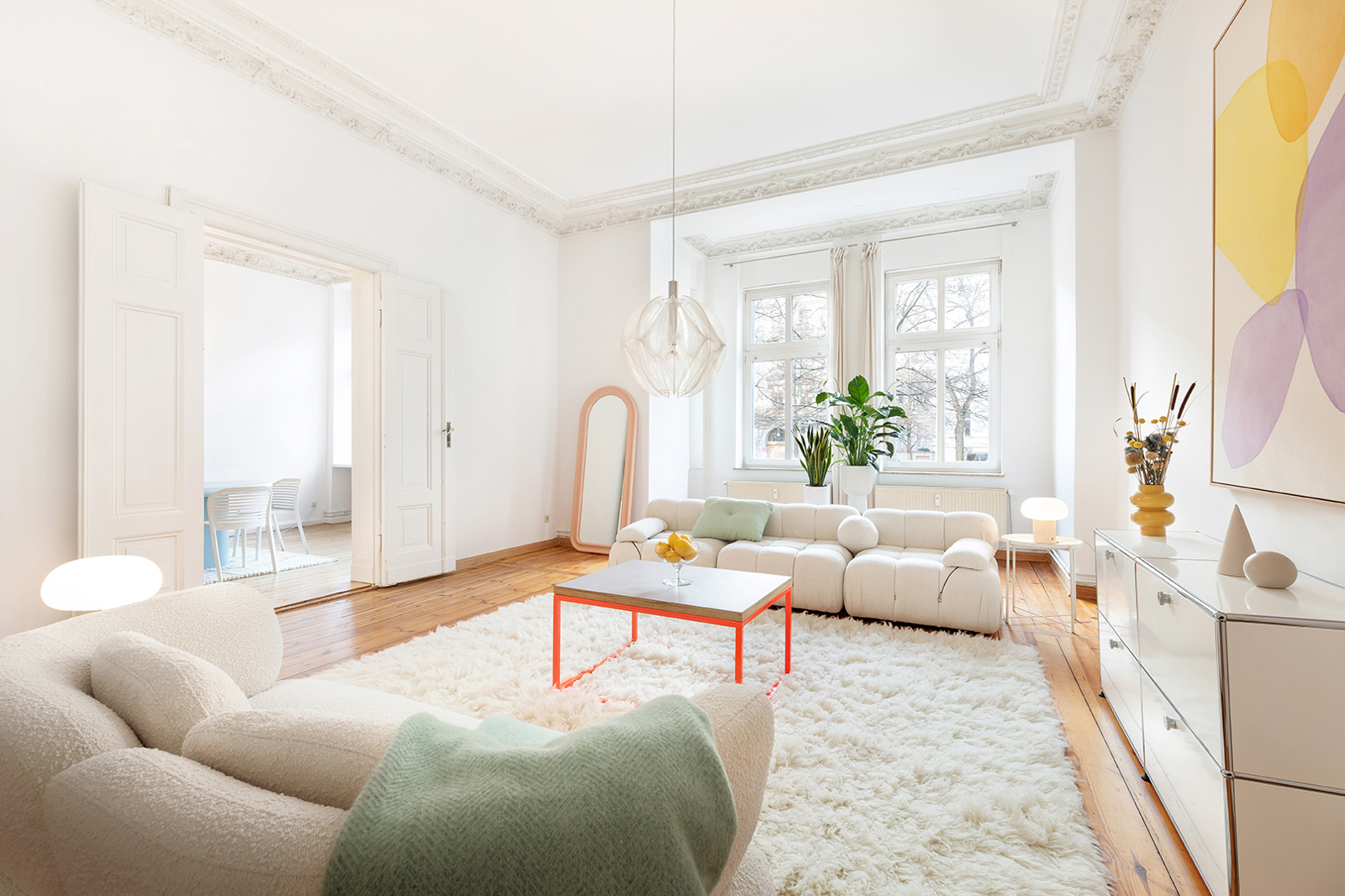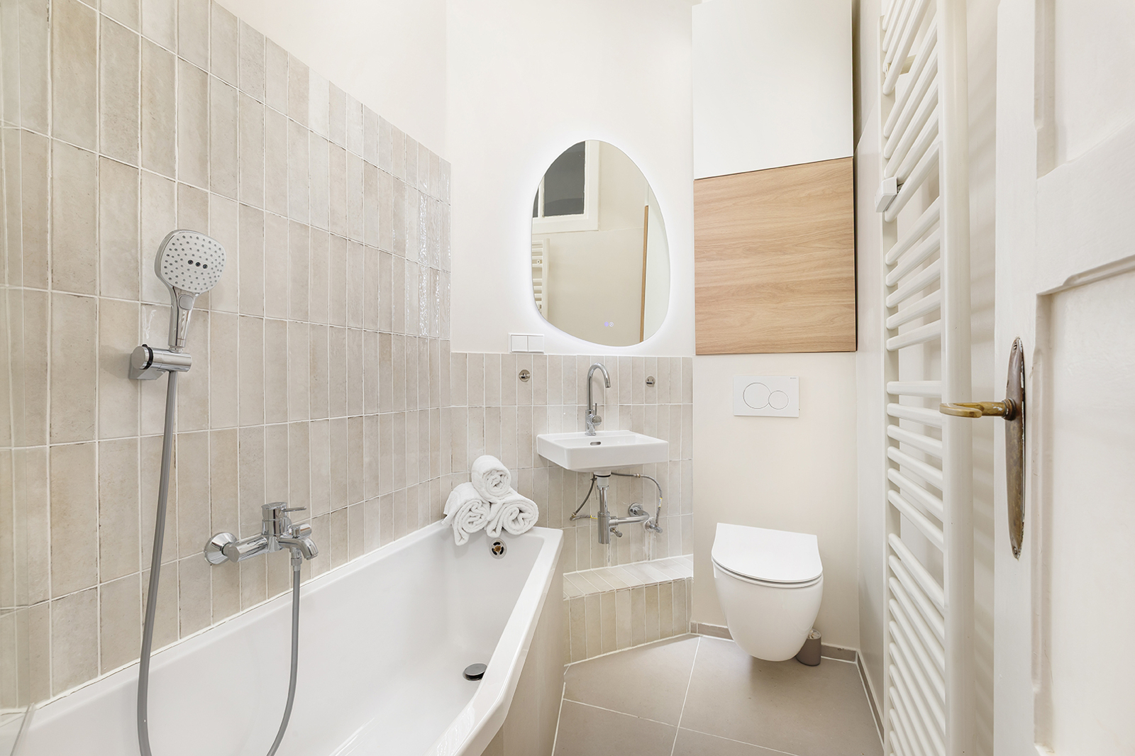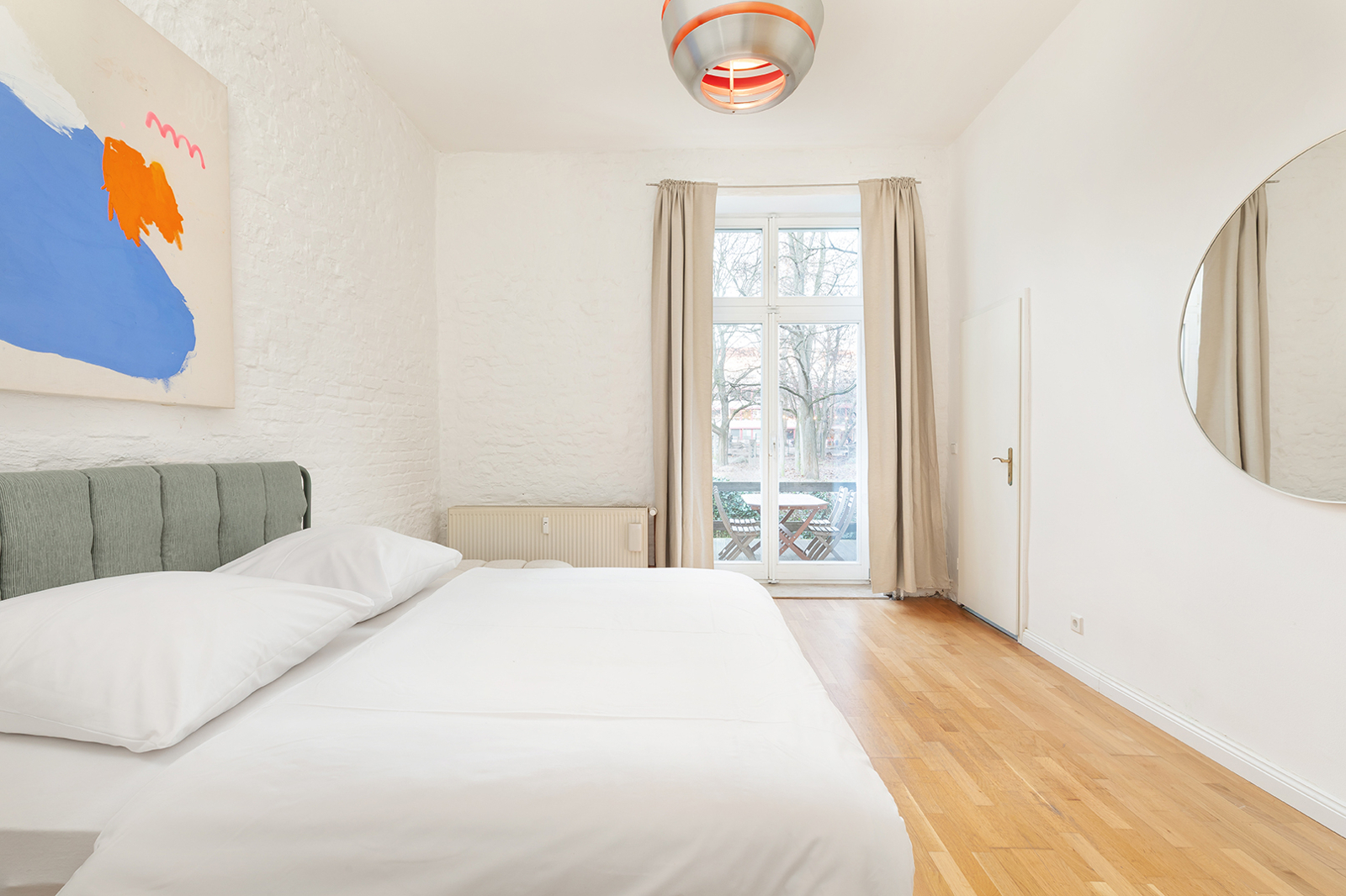 Metzer Straße, Kollwitzkiez: 4-room period apartment, garden terrace, bay window, 2 renovated bathrooms, Nolte fitted kitchen, elevated ground floor This prestigious period building blends harmoniously into the magnificent architecture of the picturesque Metzerstraße and consists of just one front building. Together with the neighboring buildings, it encloses a spacious, park-like inner courtyard. The manageable community comprises 11 apartments across the elevated ground floor and five upper stories. The shared property is in very good condition. After a complete renovation in 2003/2004, the building and its systems have been continuously maintained. For example, the central gas heating system was replaced in 2024. The apartment on offer, approx. 128 sqm, is located on a very elevated ground floor, providing a high level of privacy. Facing the rear, toward the park-like courtyard, are the newly installed Nolte kitchen (from two years ago) with high-quality appliances, the internal bathroom with bathtub, as well as a spacious bedroom or living room with en-suite bathroom and direct access to the terrace. The large terrace is perfect for cozy BBQ evenings in summer. Access to the communal garden is a highlight of this family-friendly apartment. The garden is primarily used by this apartment and is directly accessible both from the apartment and through the courtyard entrance. It is regularly mowed by the caretaker but also offers space for your own gardening. Facing the street are three interconnected rooms. Two of the three can also be accessed directly from the hallway, making them suitable for separate use. Currently, the middle room is used as the master bedroom. The smaller room on the left serves as a home office but could just as well be used as a child’s room or bedroom. The living room with bay window is to the right of the large bedroom and is also accessible from the hallway. Thanks to the bay windows, the room is flooded with beautiful natural light. Even in winter, the rooms are bright due to the wide street and central median of Metzerstraße, allowing sunlight to enter year-round. The three front rooms are south-facing, and two feature stunning original stucco details. The apartment also includes a second internal bathroom with a bathtub, and a storage room with hookups for a washer and dryer. Both bathrooms were fully renovated just last year and impress with carefully selected tiles and high-quality fixtures and ceramics. The insulated wood-framed windows were installed during the 2003/2004 renovation. The windows facing the street are equipped with manually operated external shutters, while the rear-facing windows have recently been fitted with security features. The high ceilings and original wooden floorboards, together with the stucco elements, create the classic charm of a Berlin Altbau. Bike racks and a clean waste disposal area are located in the courtyard. The dry basement provides a dedicated storage unit for each apartment, including this one. The apartment is available for immediate occupancy.