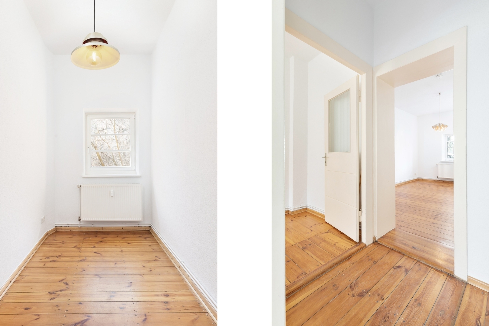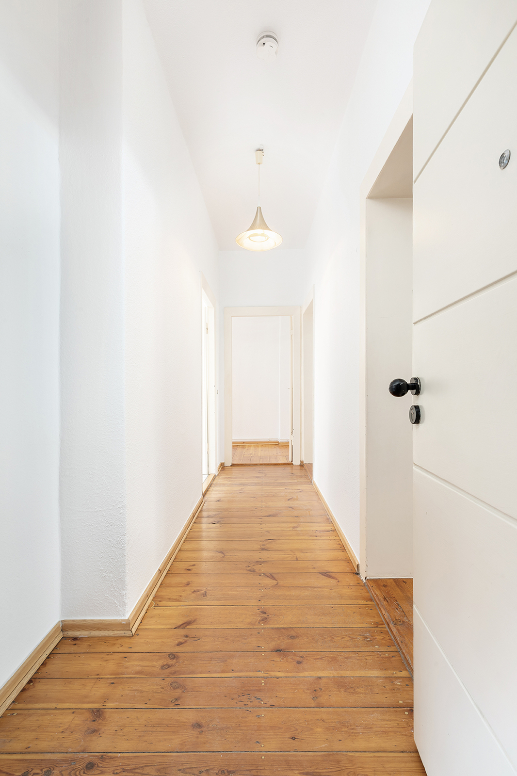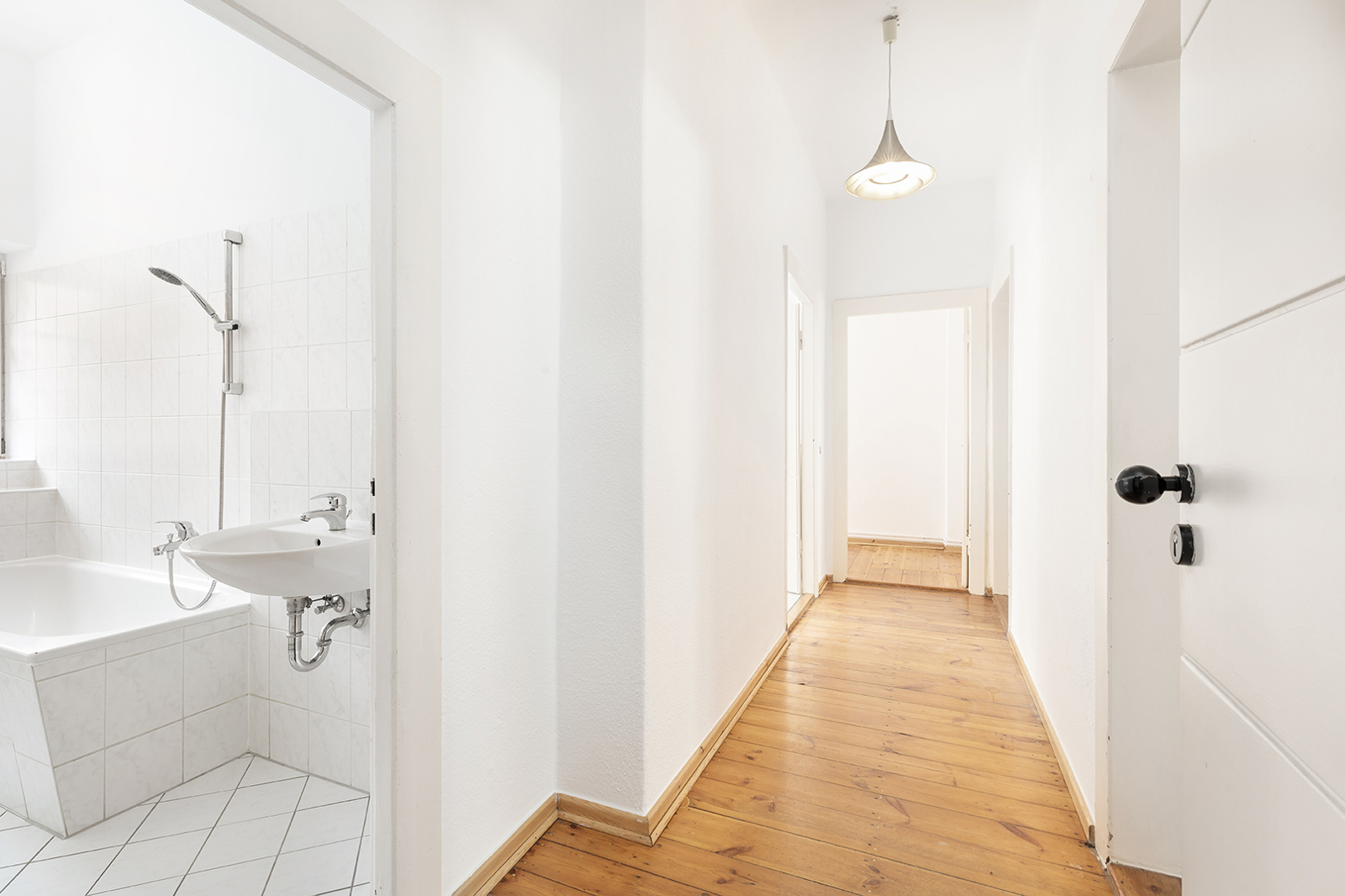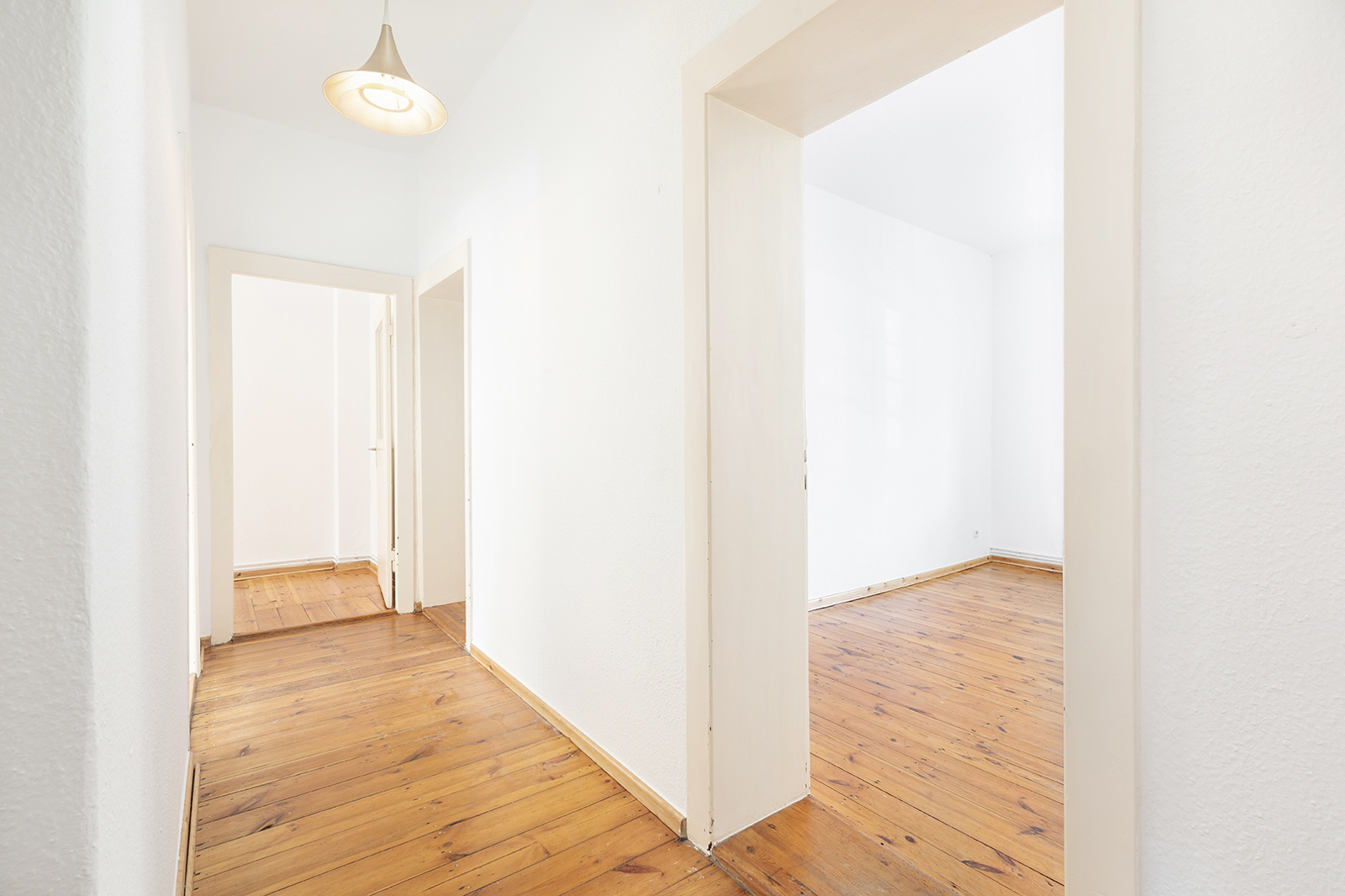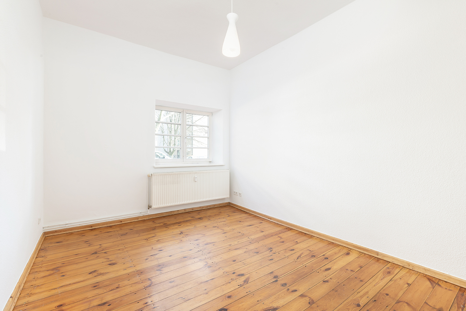 Talstraße, near Prenzlauer Berg: 2.5-room apartment in a listed historic building, communal garden, district heating The apartment on offer is located in an architecturally distinctive residential complex on Talstraße, constructed between 1925 and 1926 based on designs by the renowned architect Erwin Anton Gutkind. This listed ensemble is a prime example of the high-quality residential architecture of the Weimar Republic, characterized by its open layout, spacious inner courtyards, and an exceptionally green and მშვიდ living environment. A particular highlight is the expansive communal garden, offering plenty of greenery, light, and space, and available to all residents – significantly enhancing the overall quality of living. Despite its ground-floor position, the apartment enjoys a high level of privacy: a small front garden area with hedges provides natural screening and creates a comfortable distance from the sidewalk. Talstraße itself is a quiet residential street and has recently been converted into a one-way street, further reducing traffic. The apartment has been freshly painted and is presented in a very well-maintained condition. Typical period features such as ceiling heights of approximately 3 meters, well-preserved original wooden floorboards, and historic windows emphasize its distinctive character. The well-balanced layout spans approximately three well-proportioned rooms: two rooms of around 15 sqm each facing the street offer flexible usage options, while an additional room facing the garden provides a शांत retreat – ideal as a study, guest room, or children's room. The spacious kitchen offers ample room for the installation of a new fitted kitchen as well as a dining area. The previous kitchen has already been removed, allowing for full customization. From here, you also enjoy a pleasant view of the green communal garden. The apartment is completed by a daylight bathroom. A private cellar compartment is included.