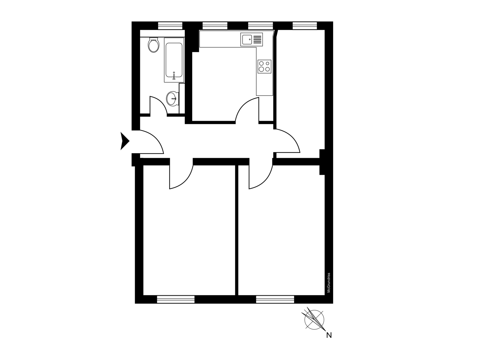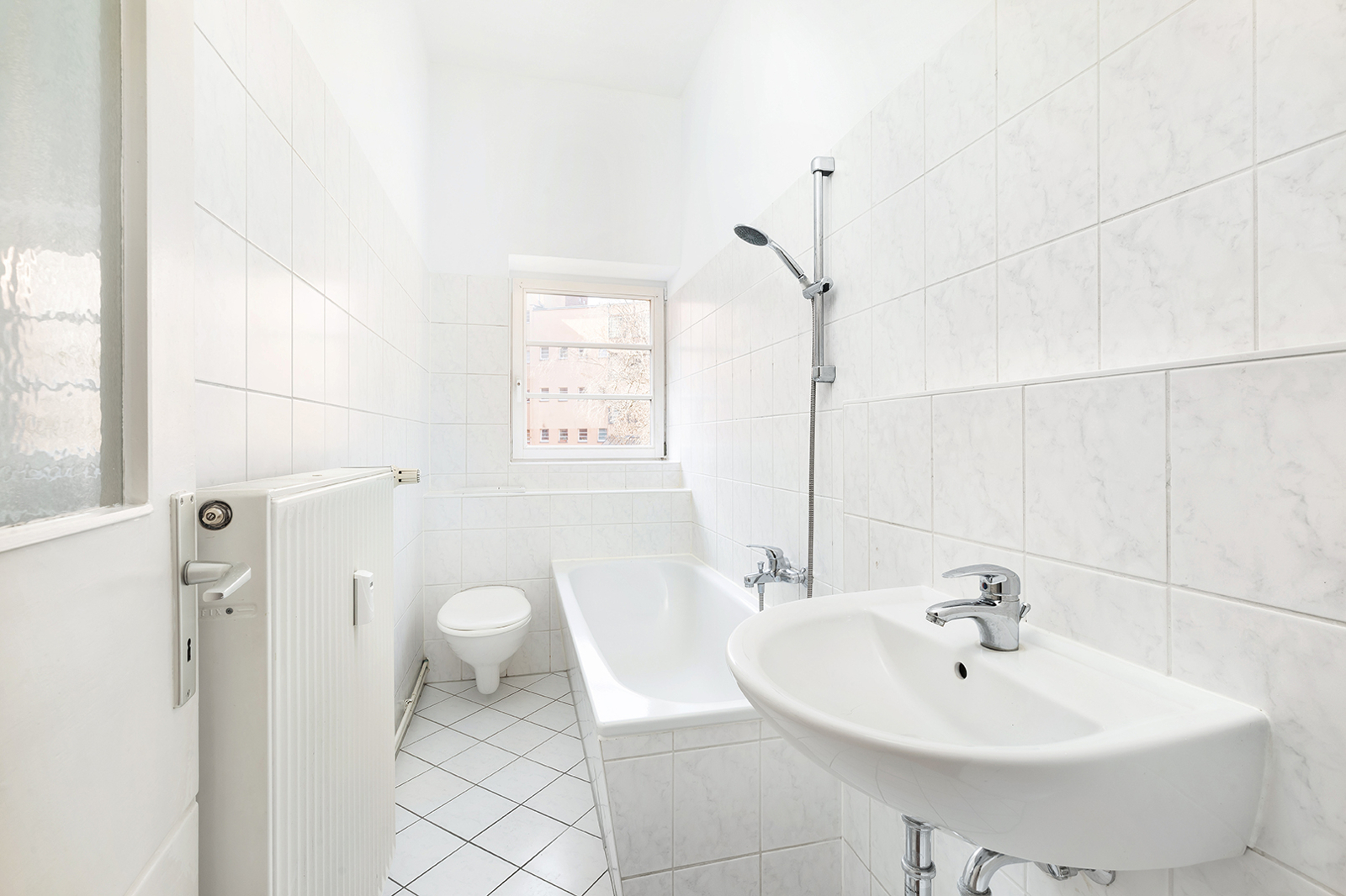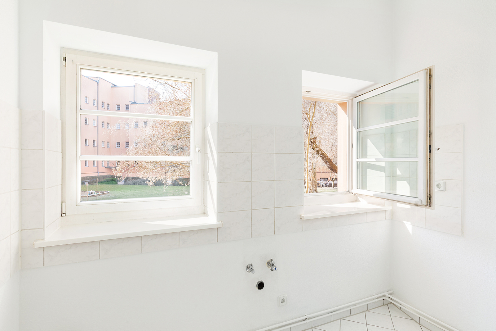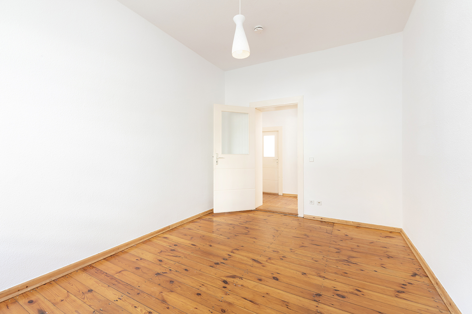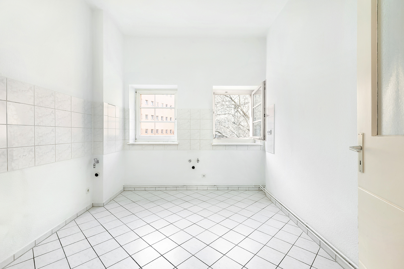 Talstraße, near Prenzlauer Berg: 2.5-room apartment in a listed historic building, communal garden, district heating The apartment on offer is located in an architecturally distinctive residential complex on Talstraße, constructed between 1925 and 1926 based on designs by the renowned architect Erwin Anton Gutkind. This listed ensemble is a prime example of the high-quality residential architecture of the Weimar Republic, characterized by its open layout, spacious inner courtyards, and an exceptionally green and მშვიდ living environment. A particular highlight is the expansive communal garden, offering plenty of greenery, light, and space, and available to all residents – significantly enhancing the overall quality of living. Despite its ground-floor position, the apartment enjoys a high level of privacy: a small front garden area with hedges provides natural screening and creates a comfortable distance from the sidewalk. Talstraße itself is a quiet residential street and has recently been converted into a one-way street, further reducing traffic. The apartment has been freshly painted and is presented in a very well-maintained condition. Typical period features such as ceiling heights of approximately 3 meters, well-preserved original wooden floorboards, and historic windows emphasize its distinctive character. The well-balanced layout spans approximately three well-proportioned rooms: two rooms of around 15 sqm each facing the street offer flexible usage options, while an additional room facing the garden provides a शांत retreat – ideal as a study, guest room, or children's room. The spacious kitchen offers ample room for the installation of a new fitted kitchen as well as a dining area. The previous kitchen has already been removed, allowing for full customization. From here, you also enjoy a pleasant view of the green communal garden. The apartment is completed by a daylight bathroom. A private cellar compartment is included.